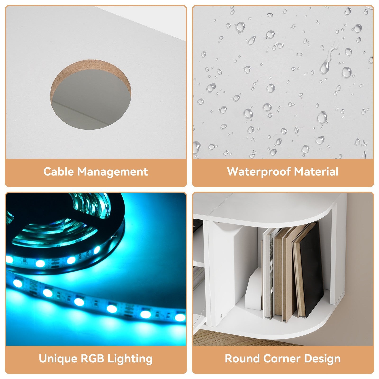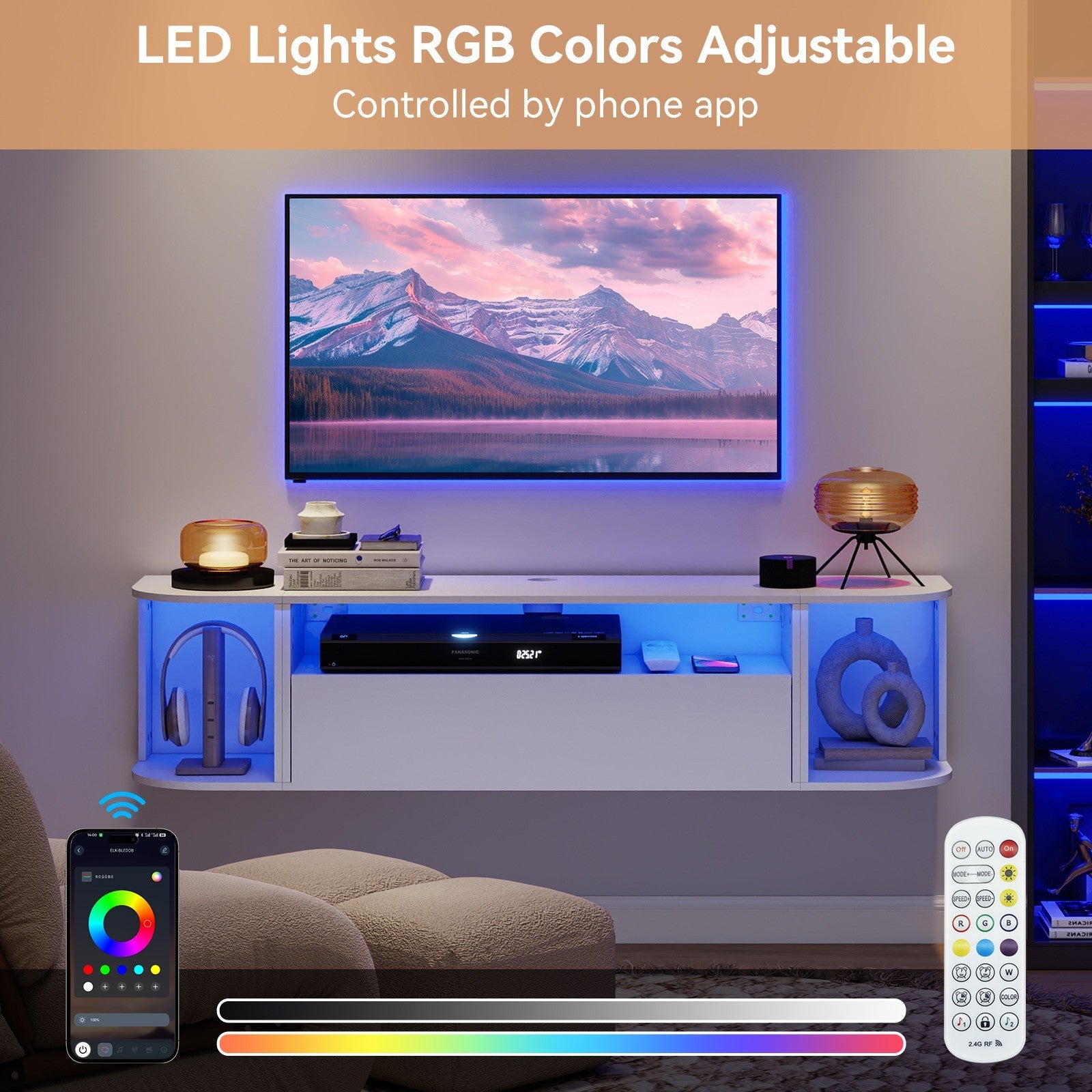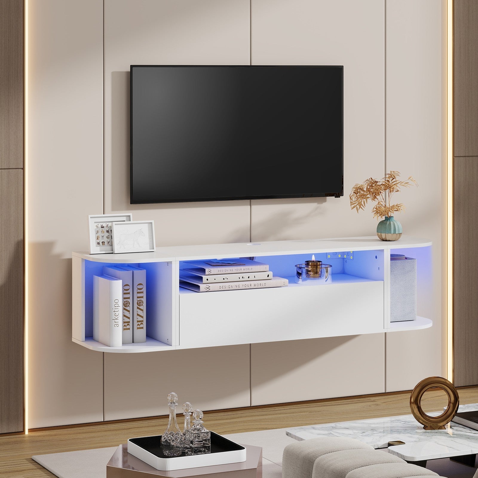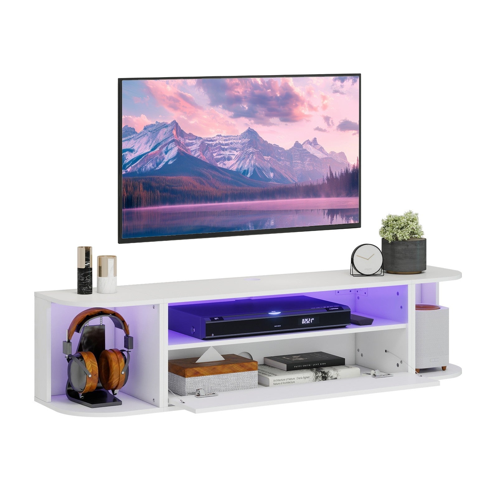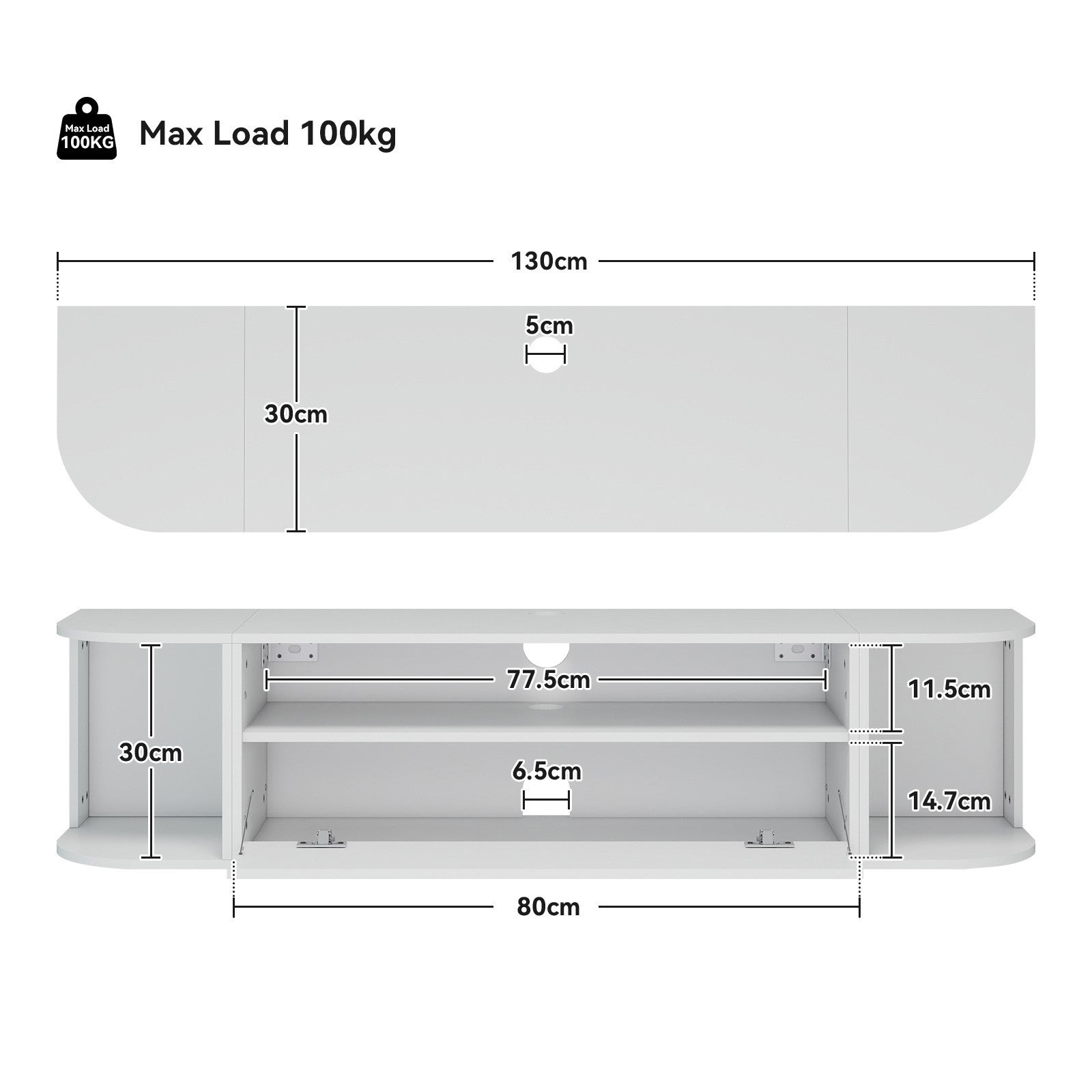130cm Floating TV Stand Unit RGB LED Lighted Wall Mounted Cabinet Storage Door