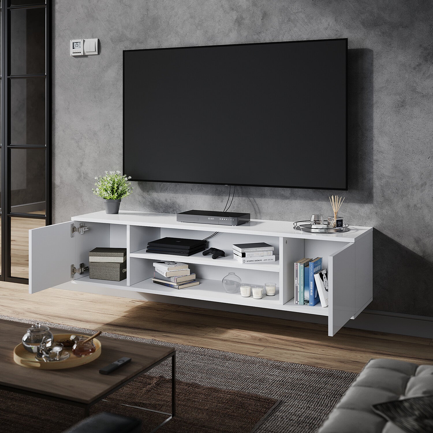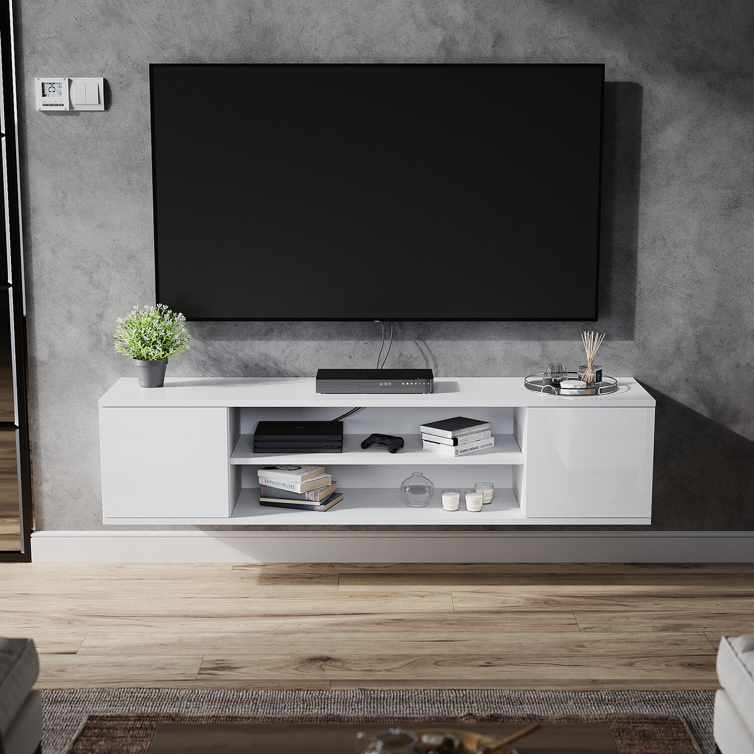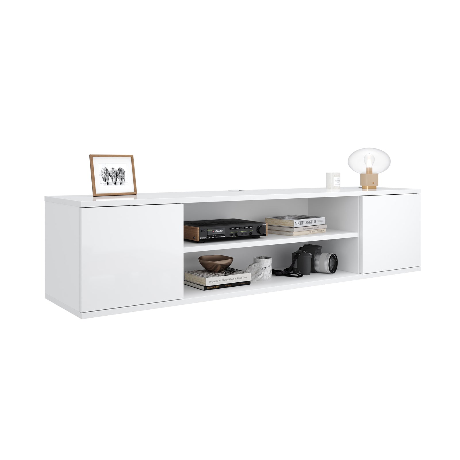 130cm High Gloss White Floating TV Stand Cabinet Unit 2 Door Storage Sideboard