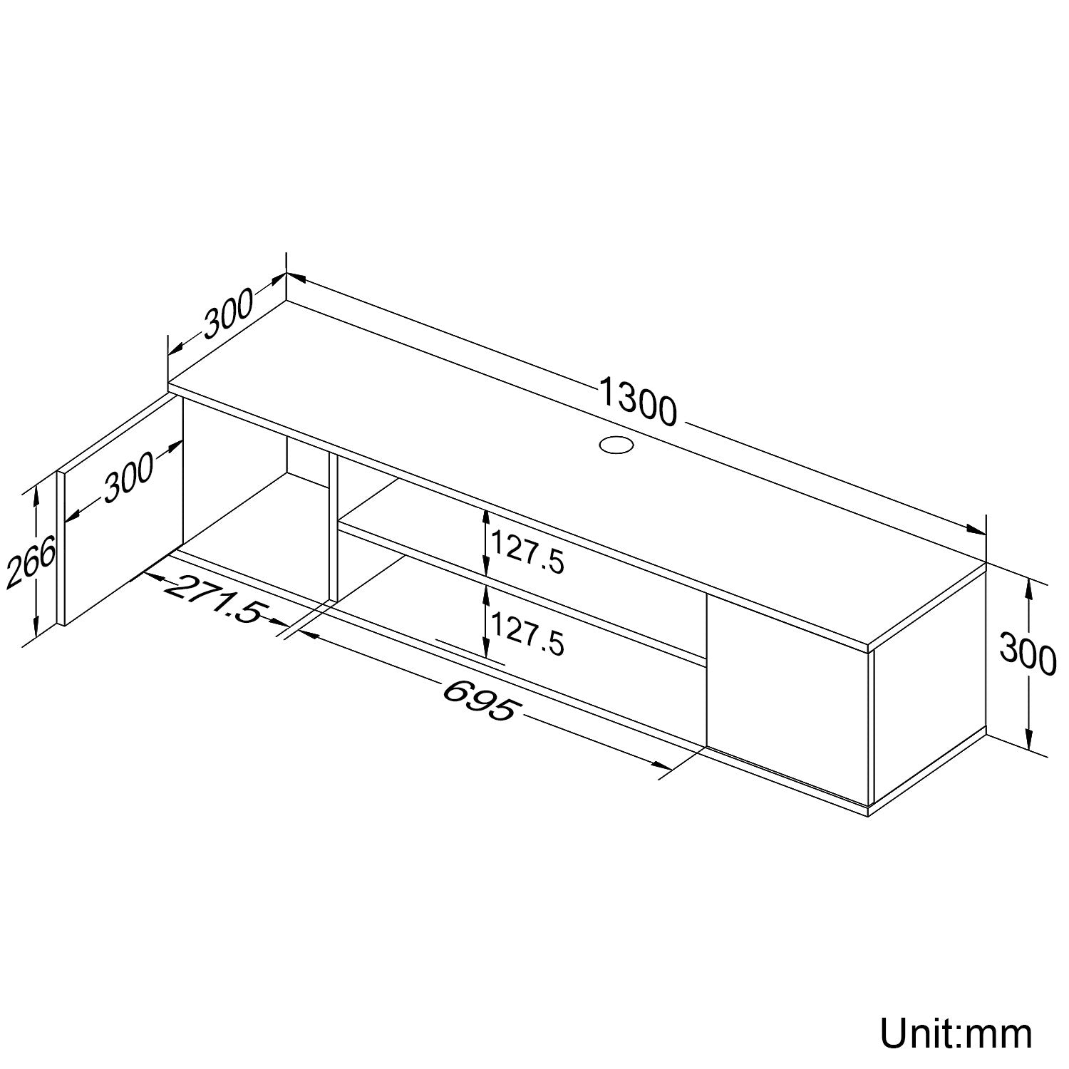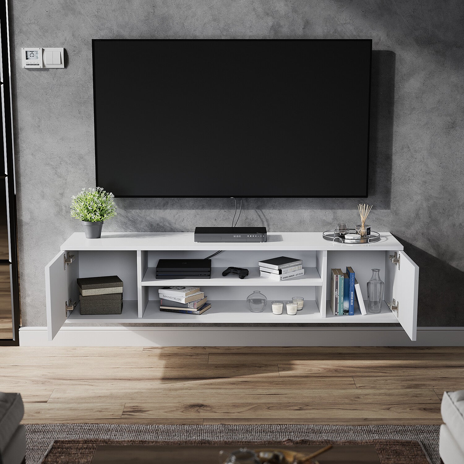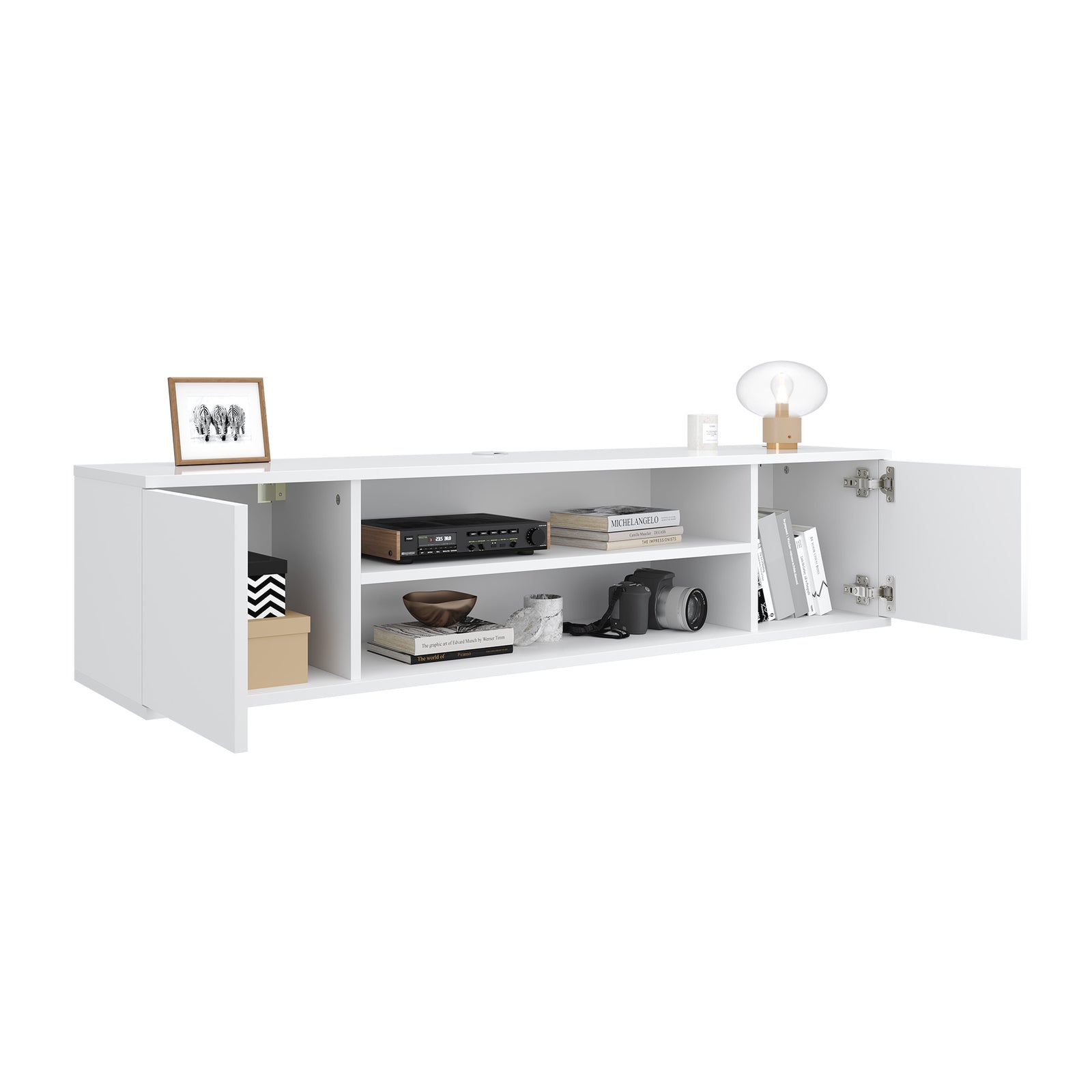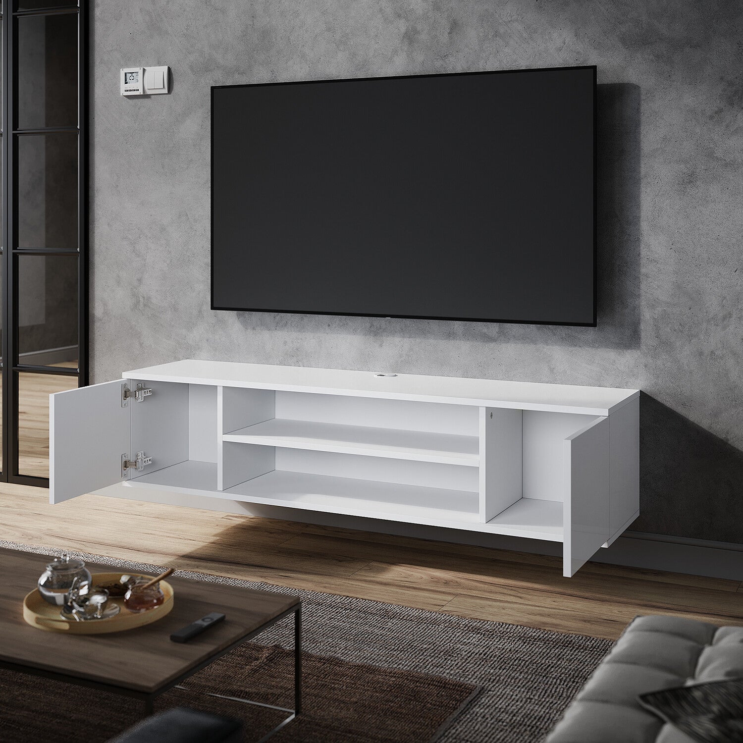 130cm High Gloss White Floating TV Stand Cabinet Unit 2 Door Storage Sideboard