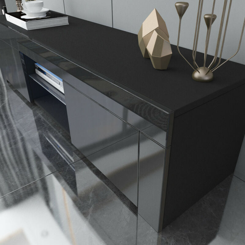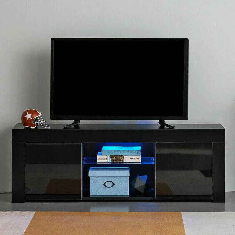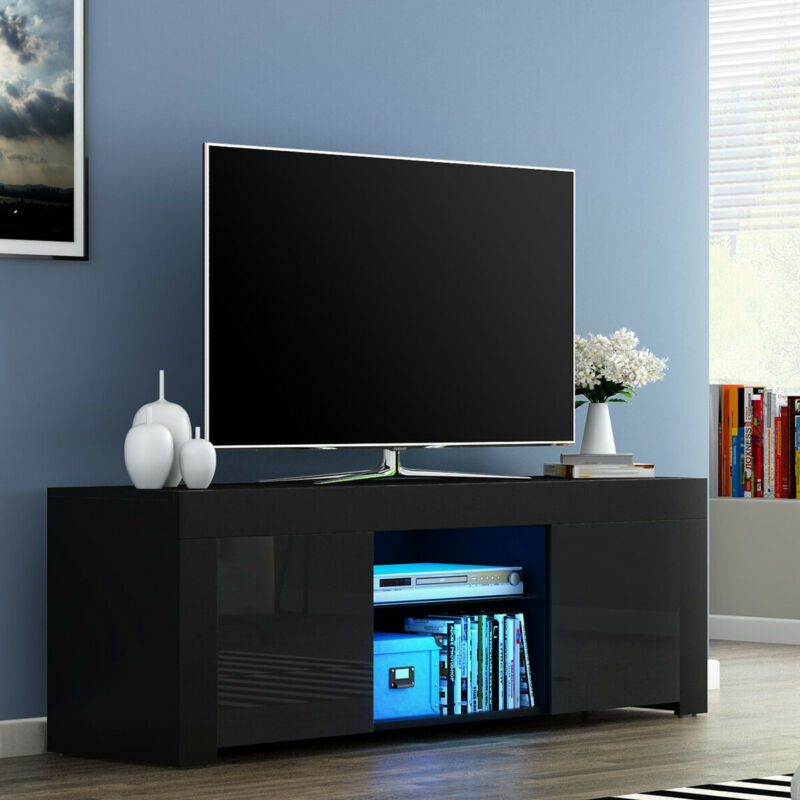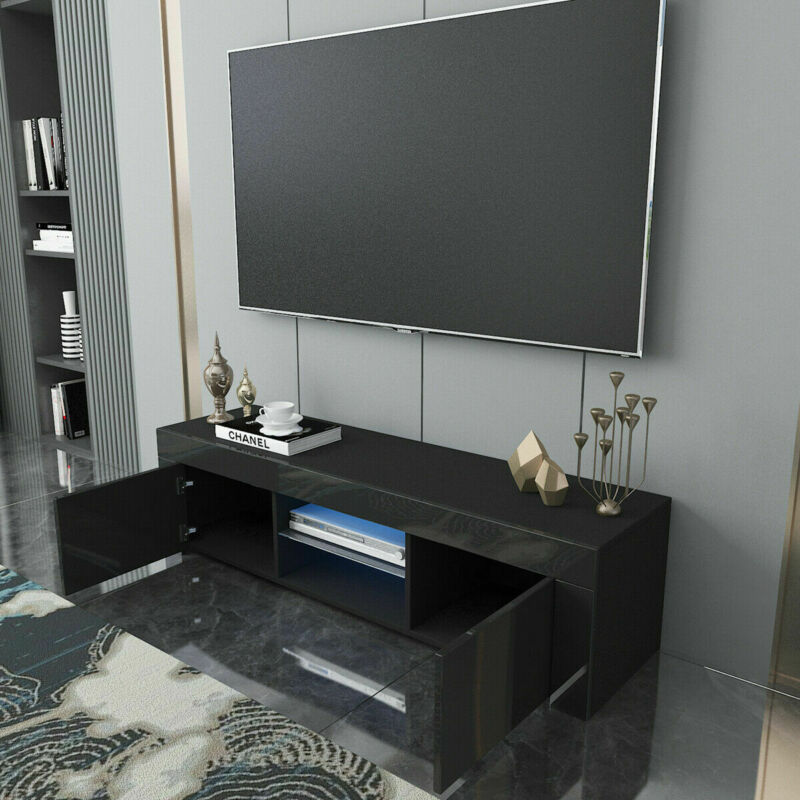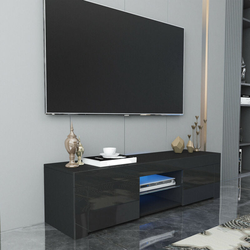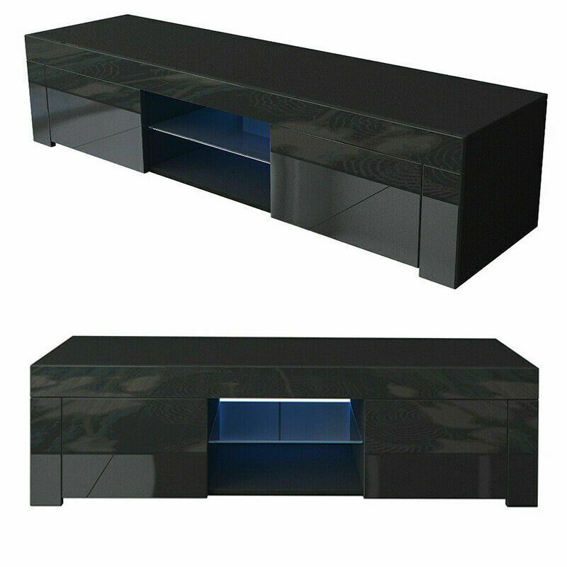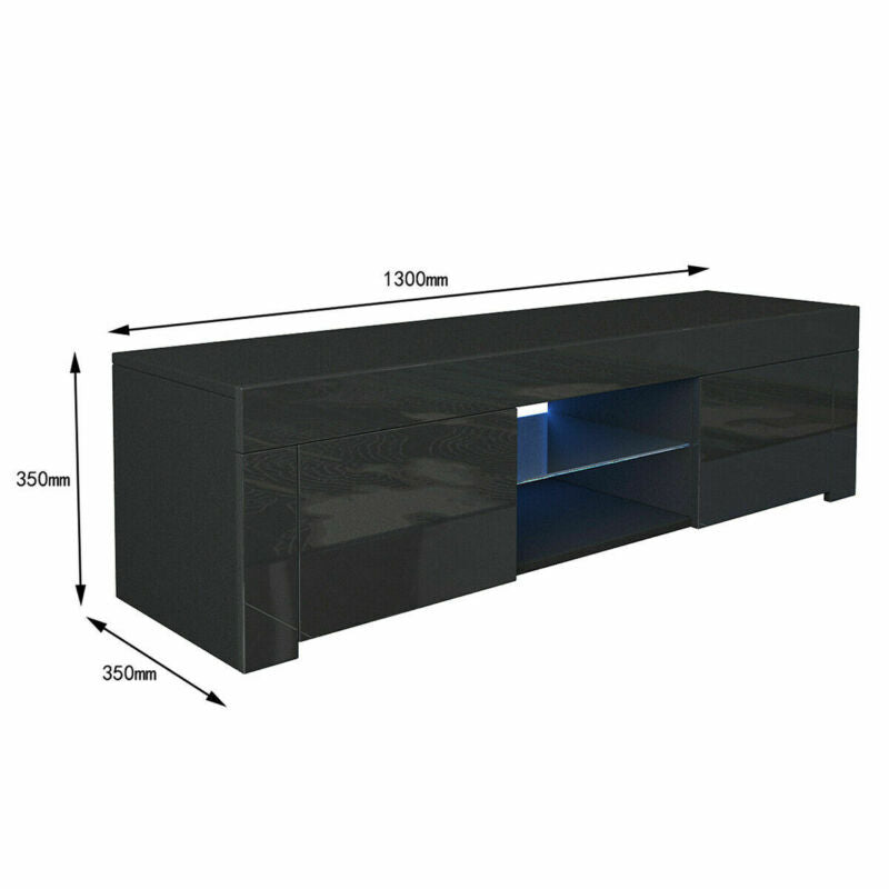 130cm Modern TV Unit Stand Cabinet Black High Gloss Door Matt Body Sideboard LED