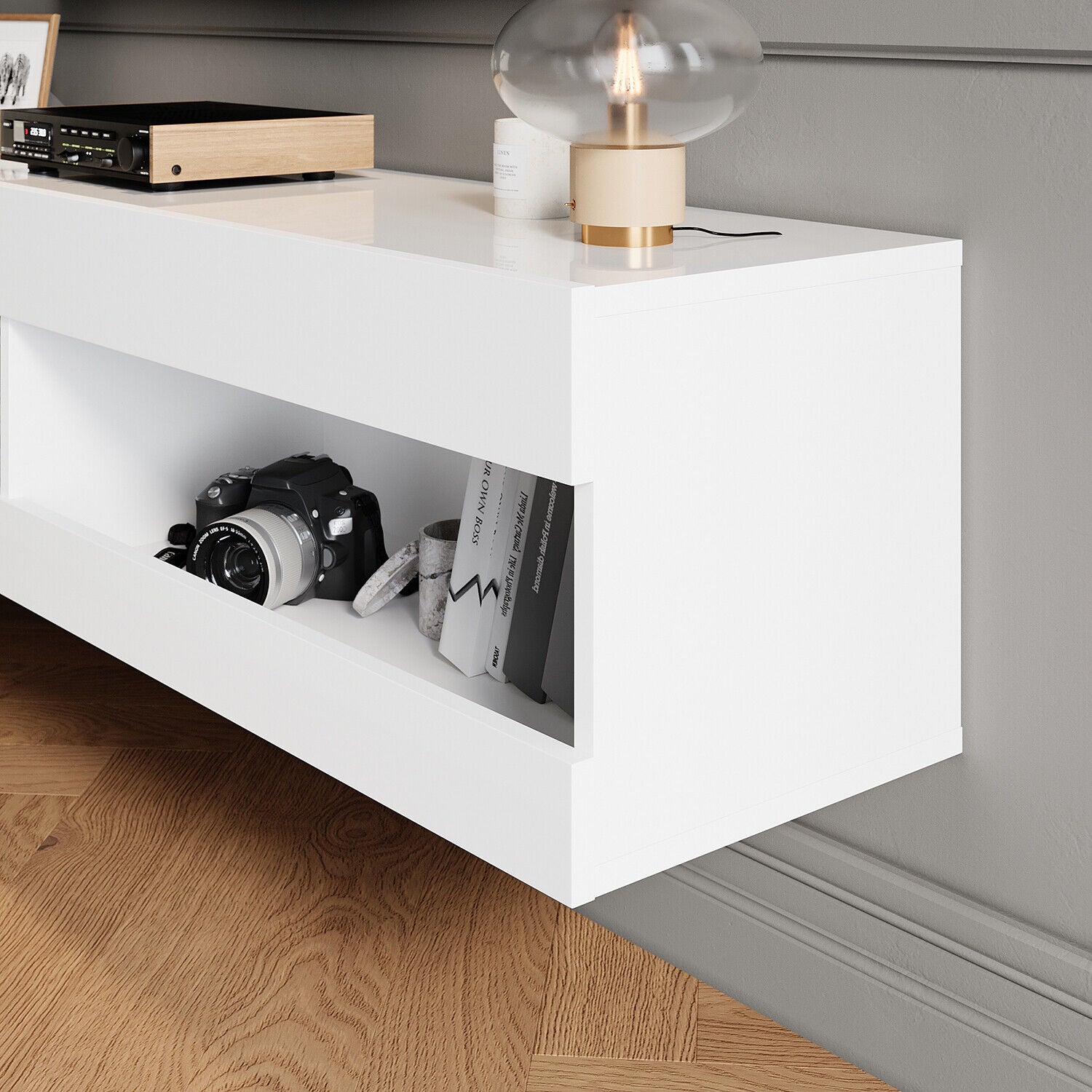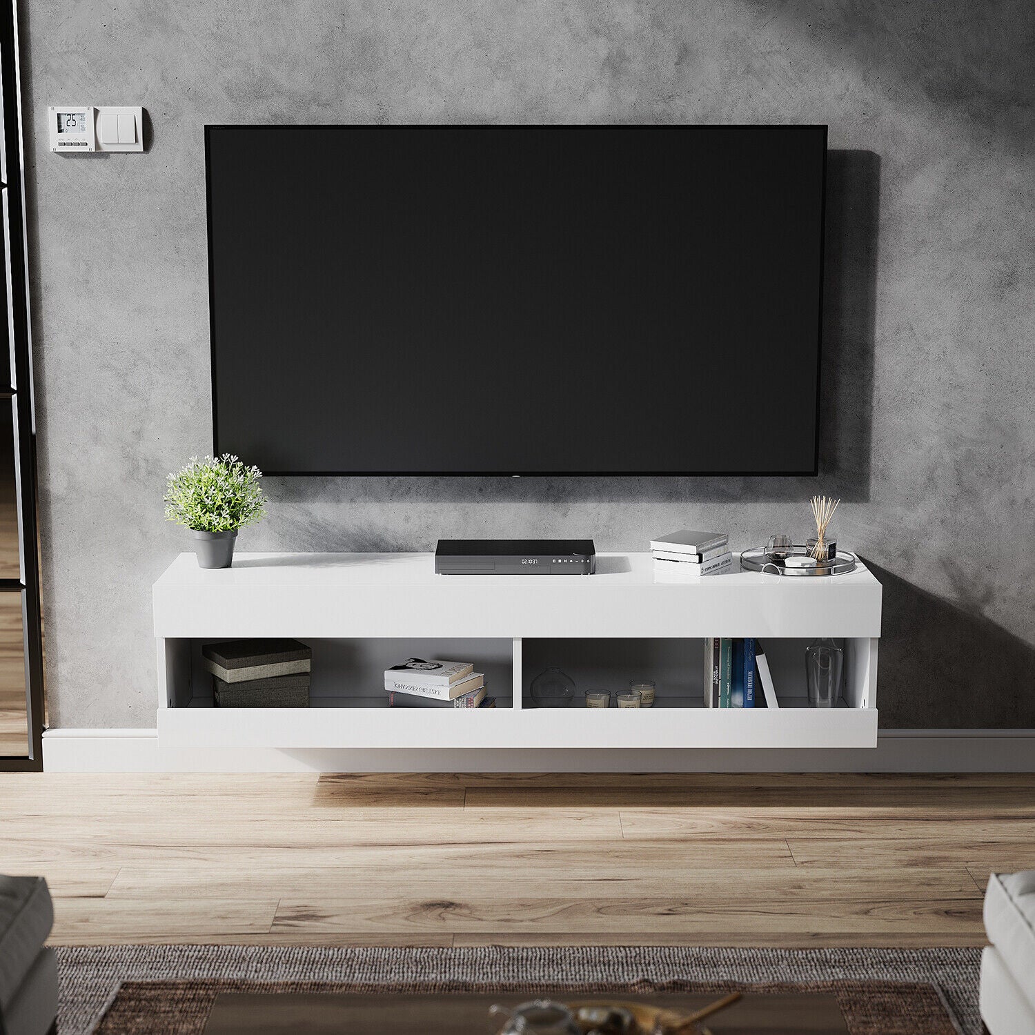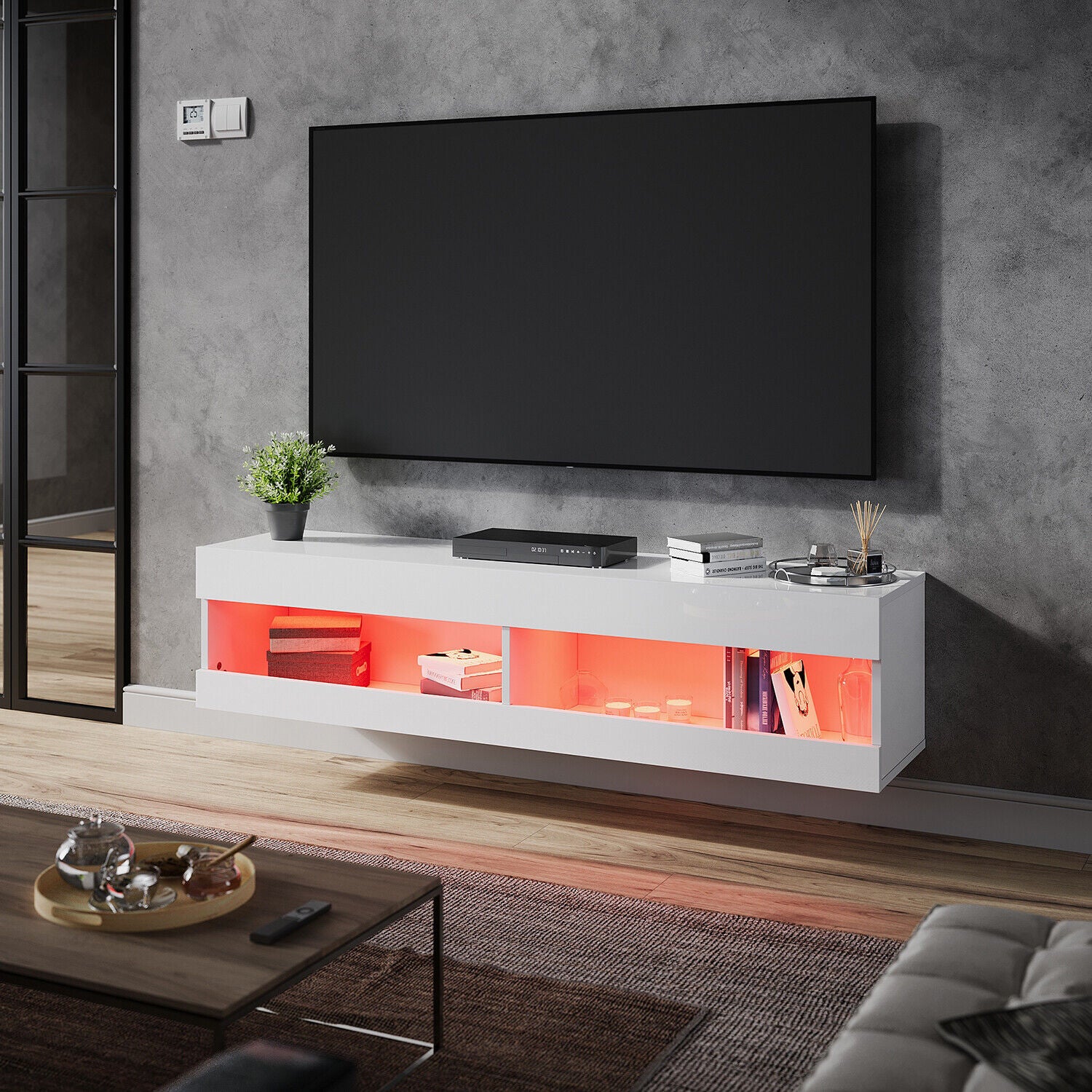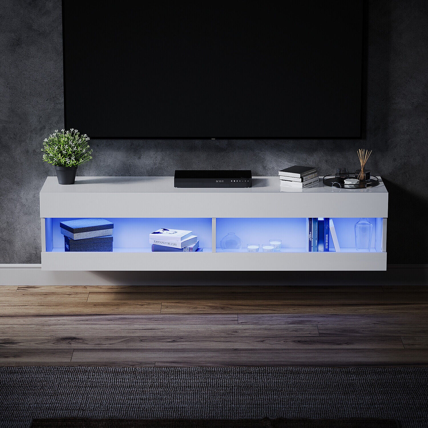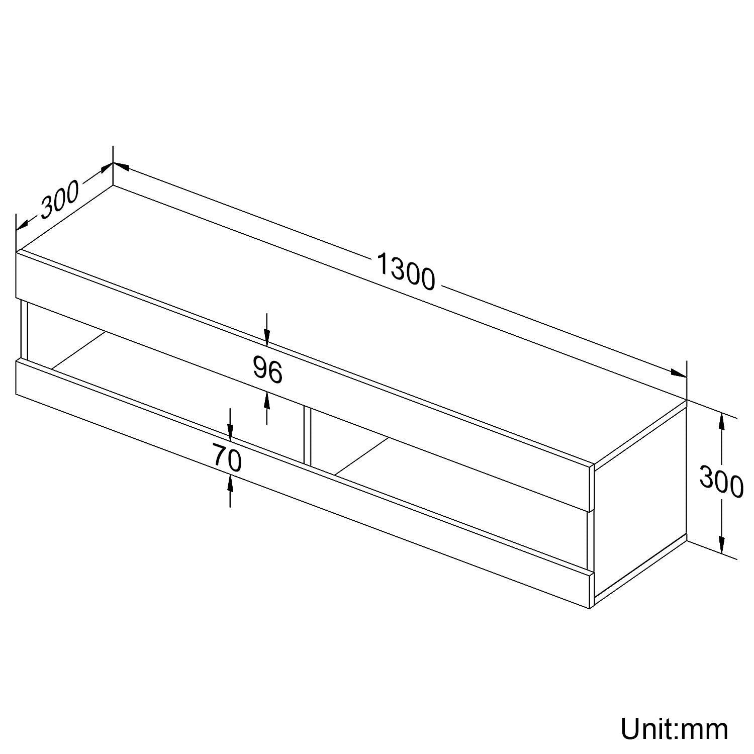 130cm Wall Mounted TV Unit Cabinet Floating TV Stand High Gloss With LED Lights