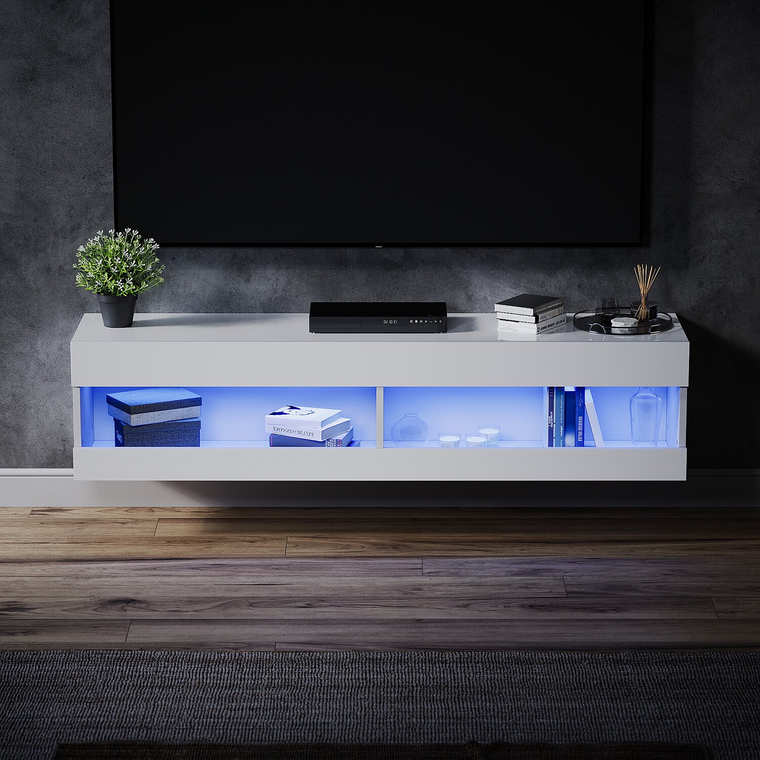 130cm Wall Mounted TV Unit Cabinet Floating TV Stand High Gloss With LED Lights