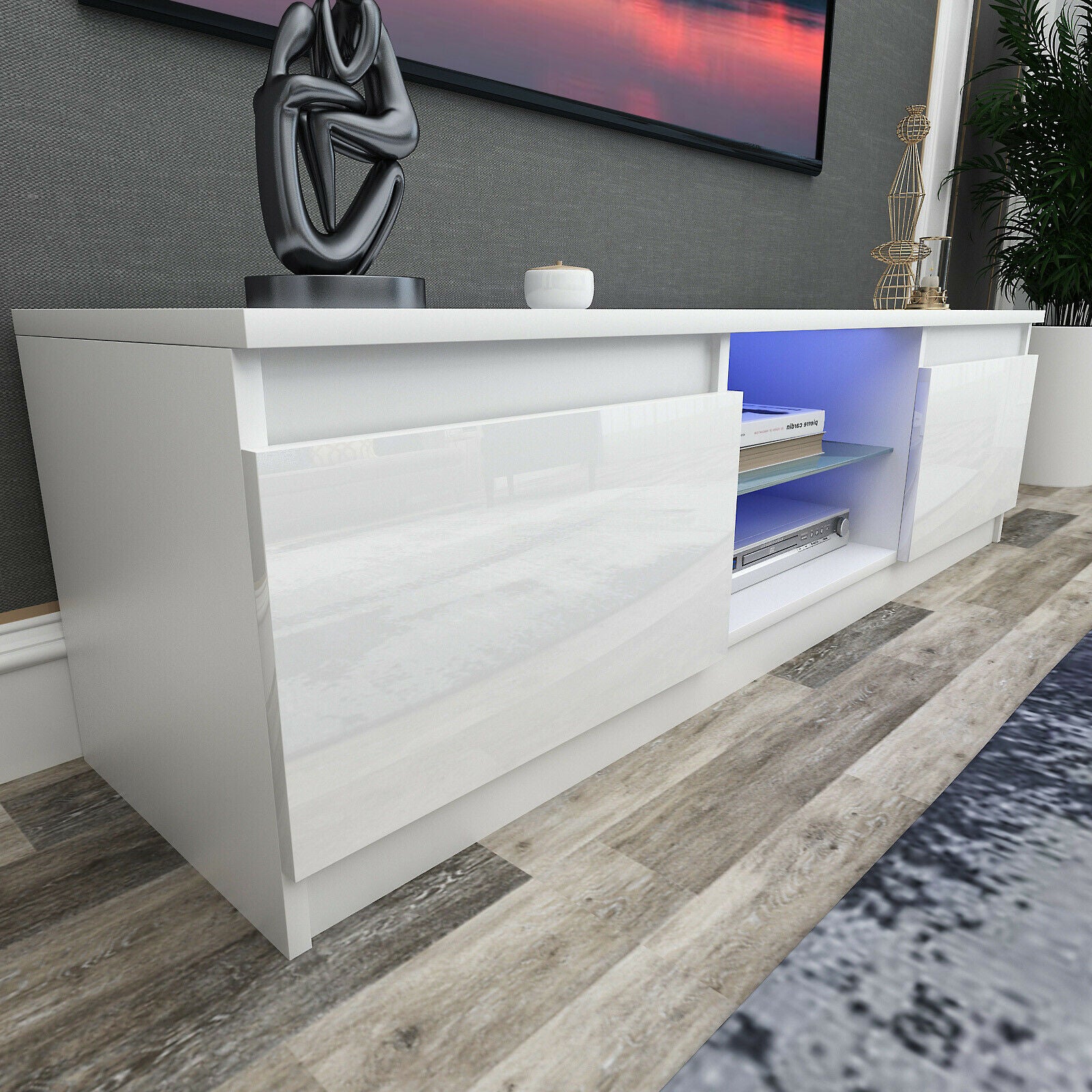 130CM Width White Modern TV Stand High Gloss Door Matt Cabinet Unit LED Light