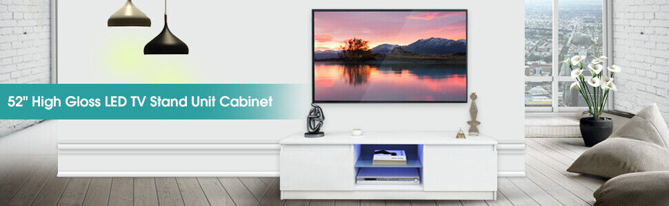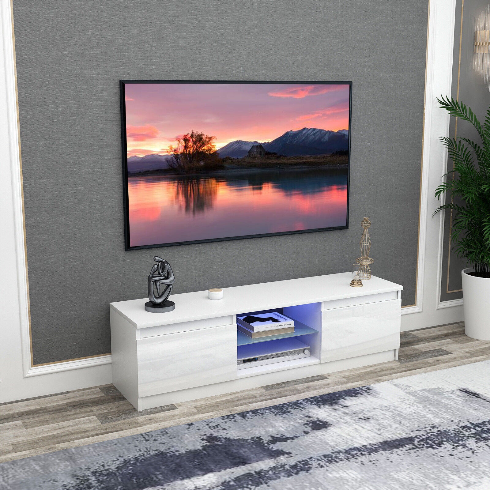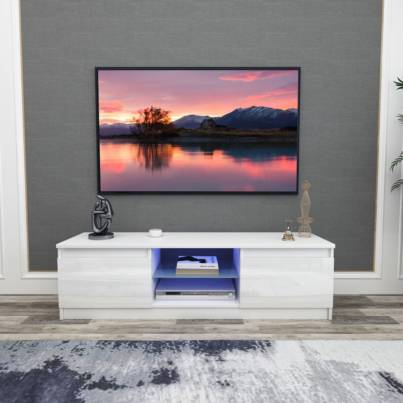 130CM Width White Modern TV Stand High Gloss Door Matt Cabinet Unit LED Light