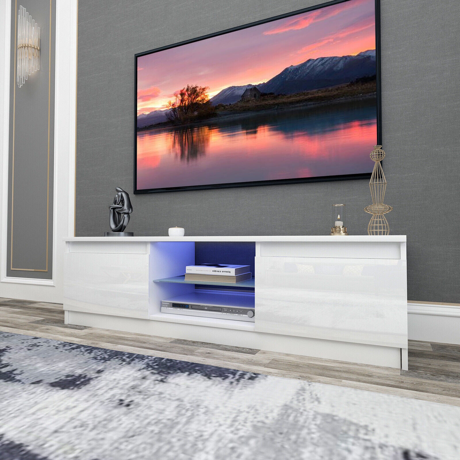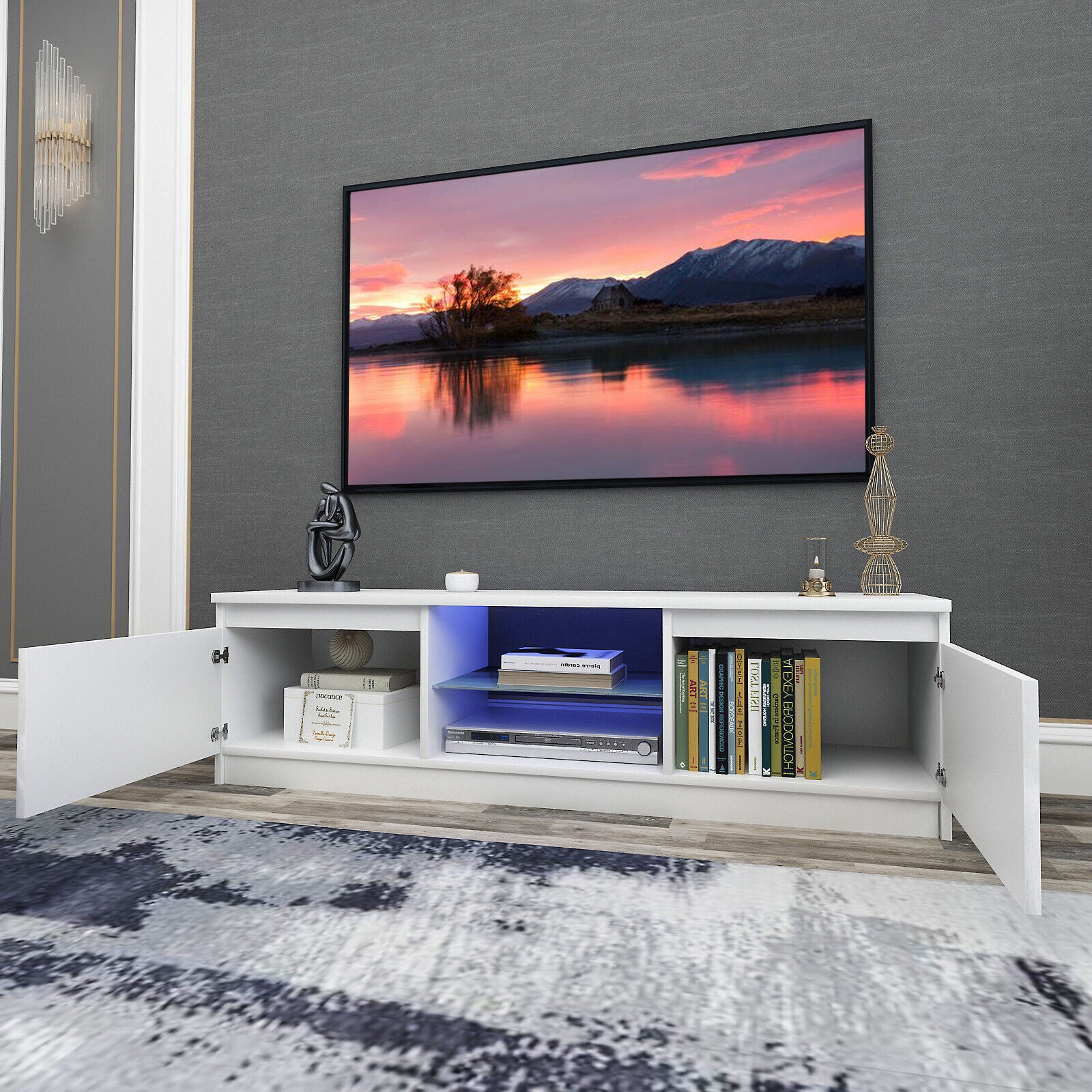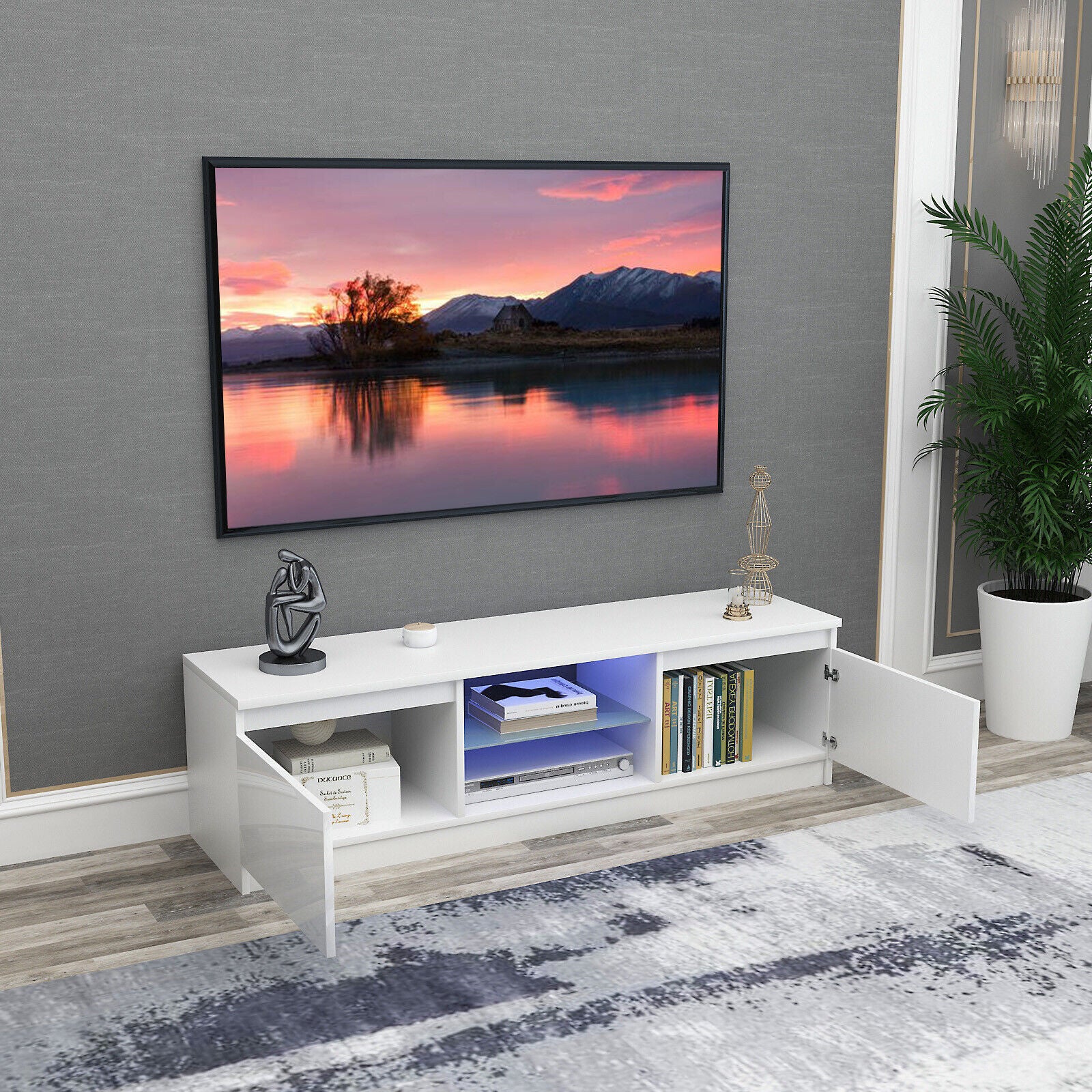 130CM Width White Modern TV Stand High Gloss Door Matt Cabinet Unit LED Light
