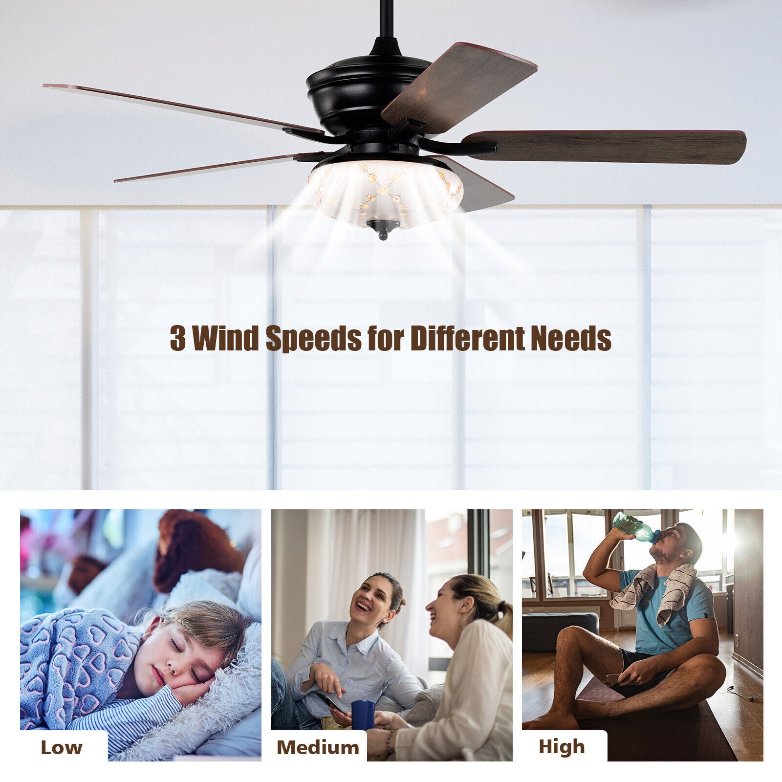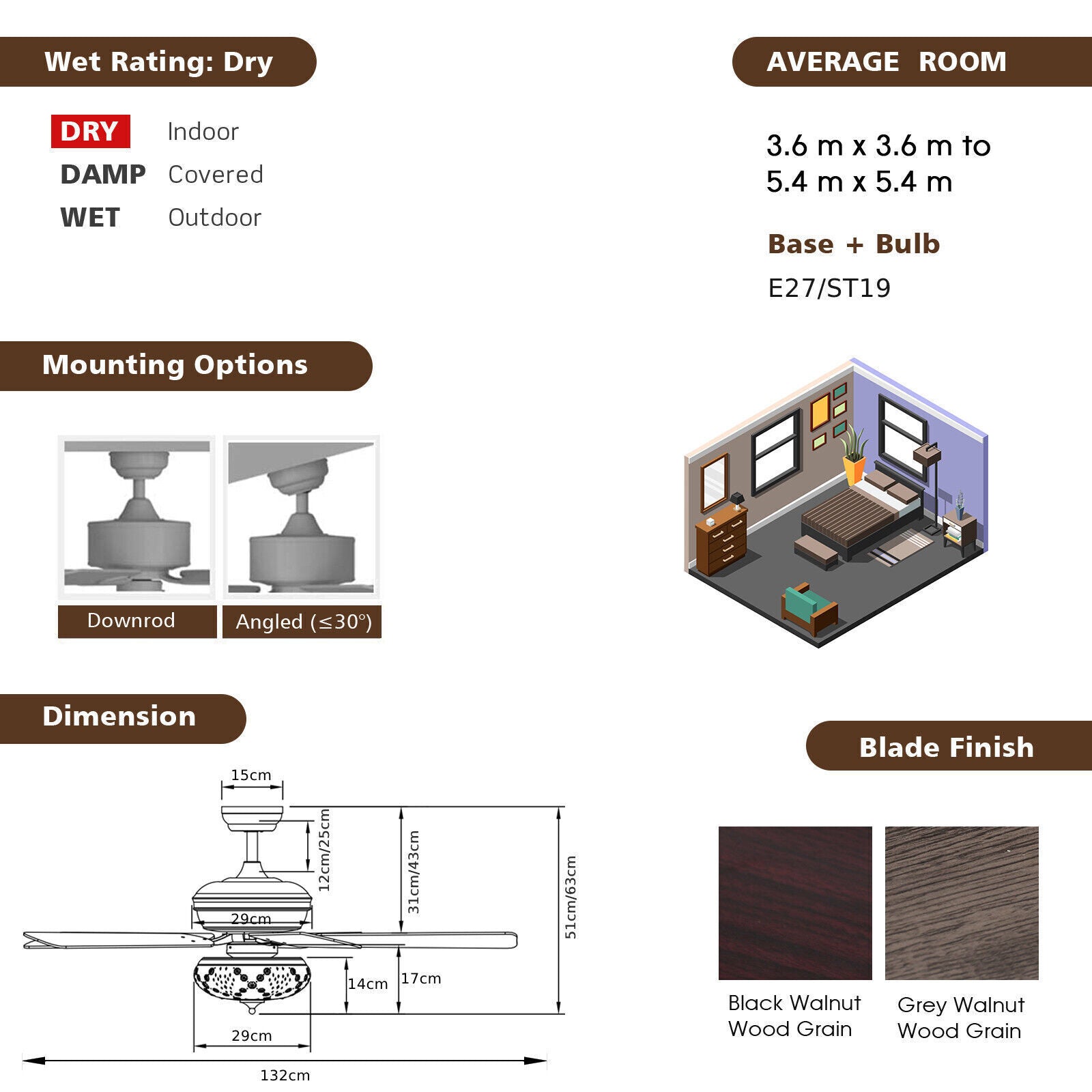 132cm Ceiling Fan Indoor Bedroom Kitchen Retro Ceiling Fan with Remote Control