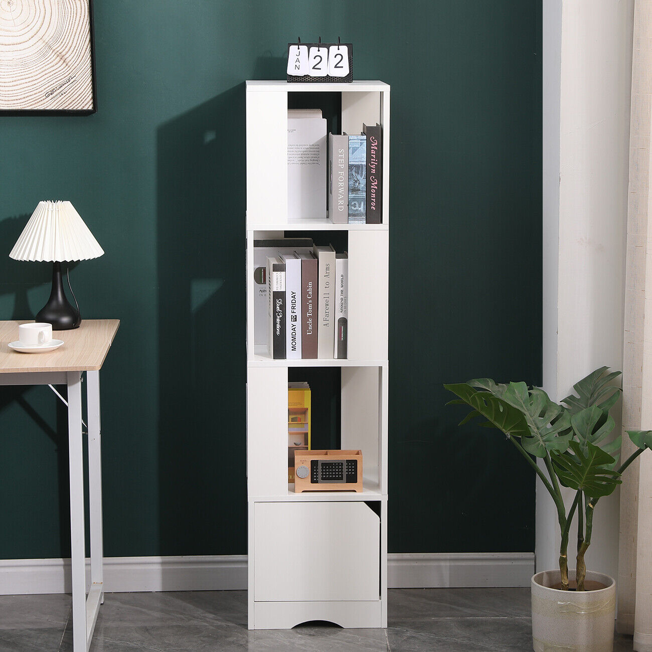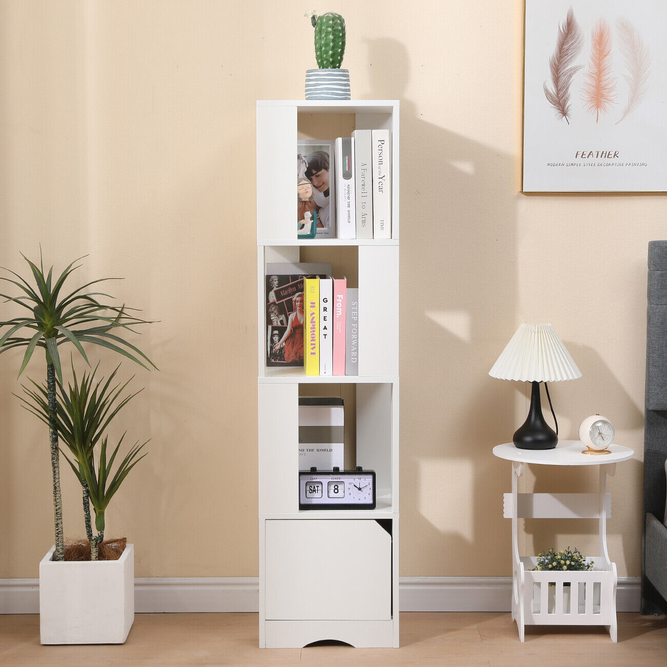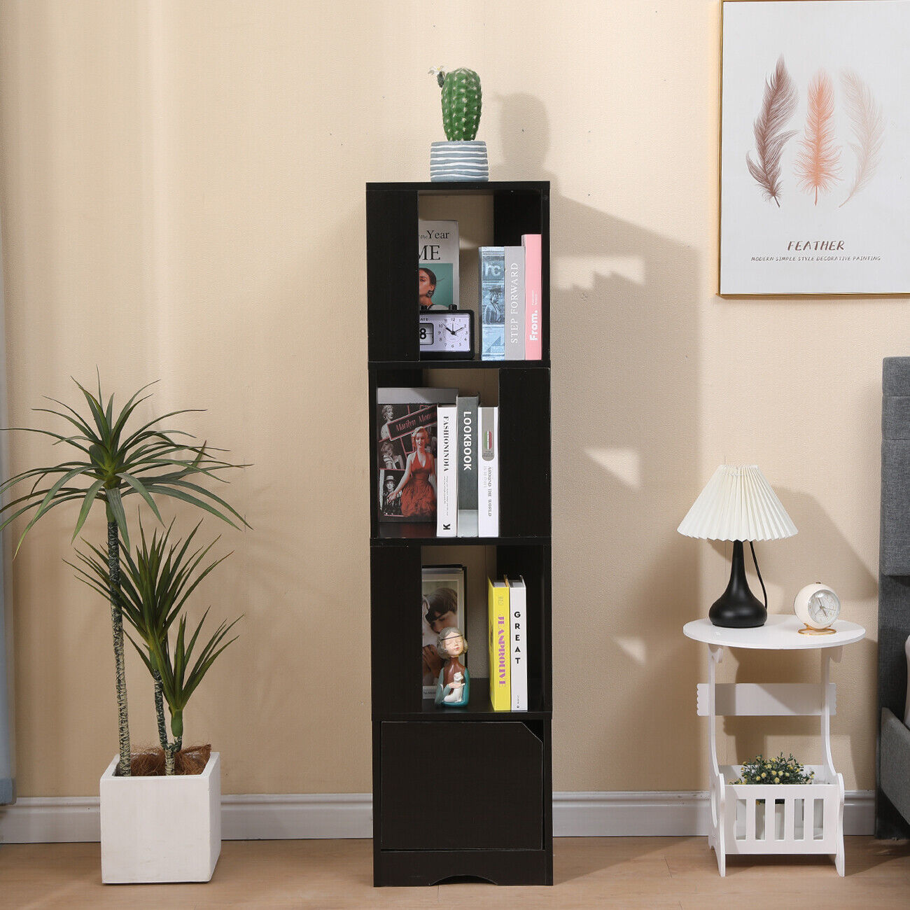 136cm Slim 4-Tier Bookcase Corner Display Cabinet Storage Shelf Cupboard Tall