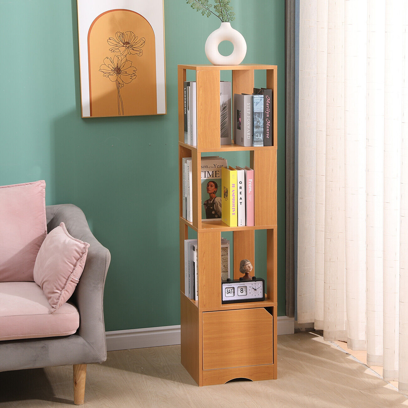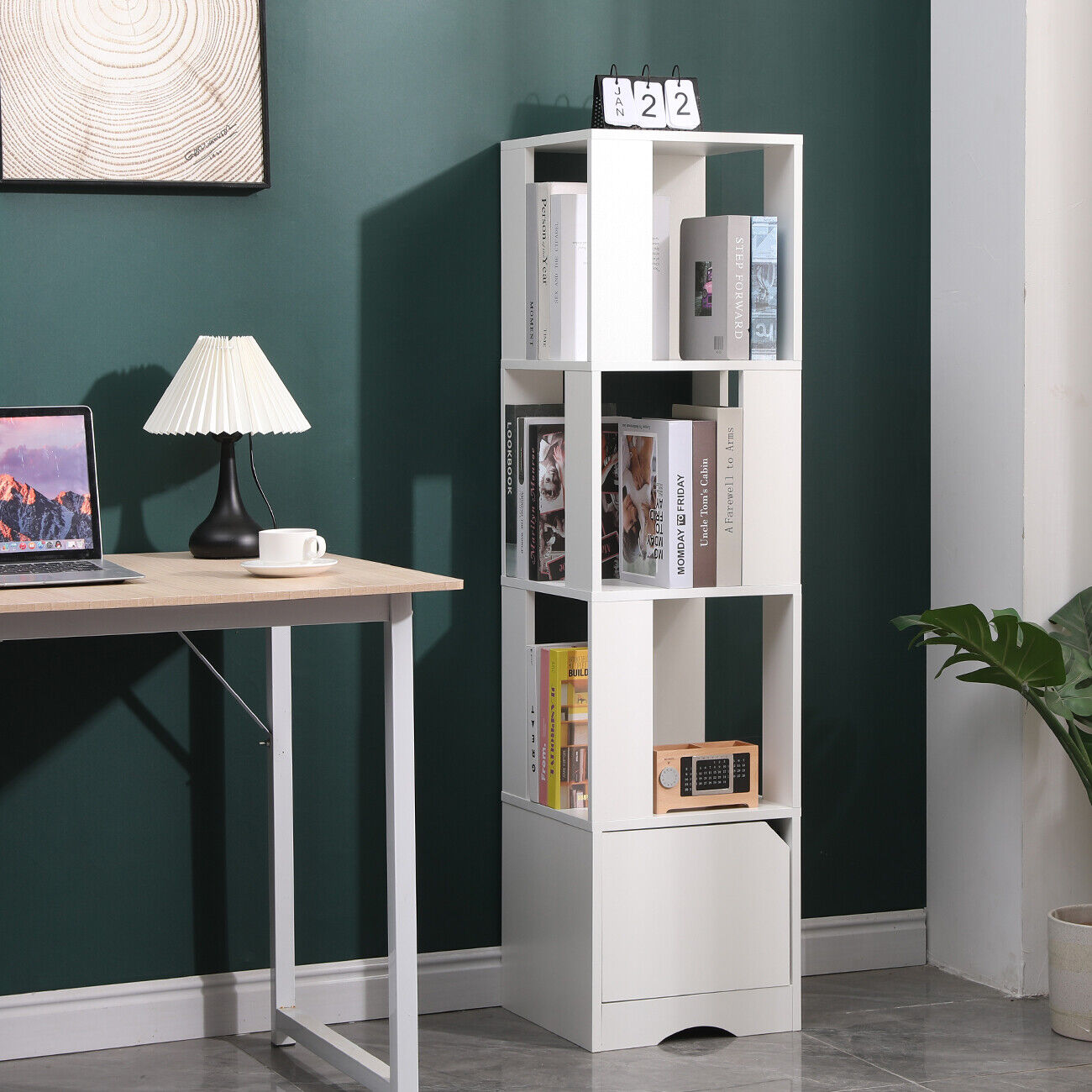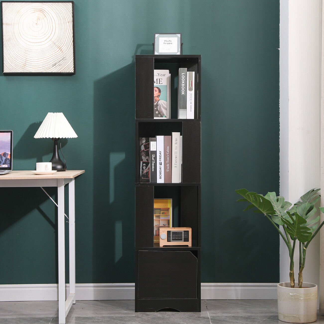 136cm Slim 4-Tier Bookcase Corner Display Cabinet Storage Shelf Cupboard Tall