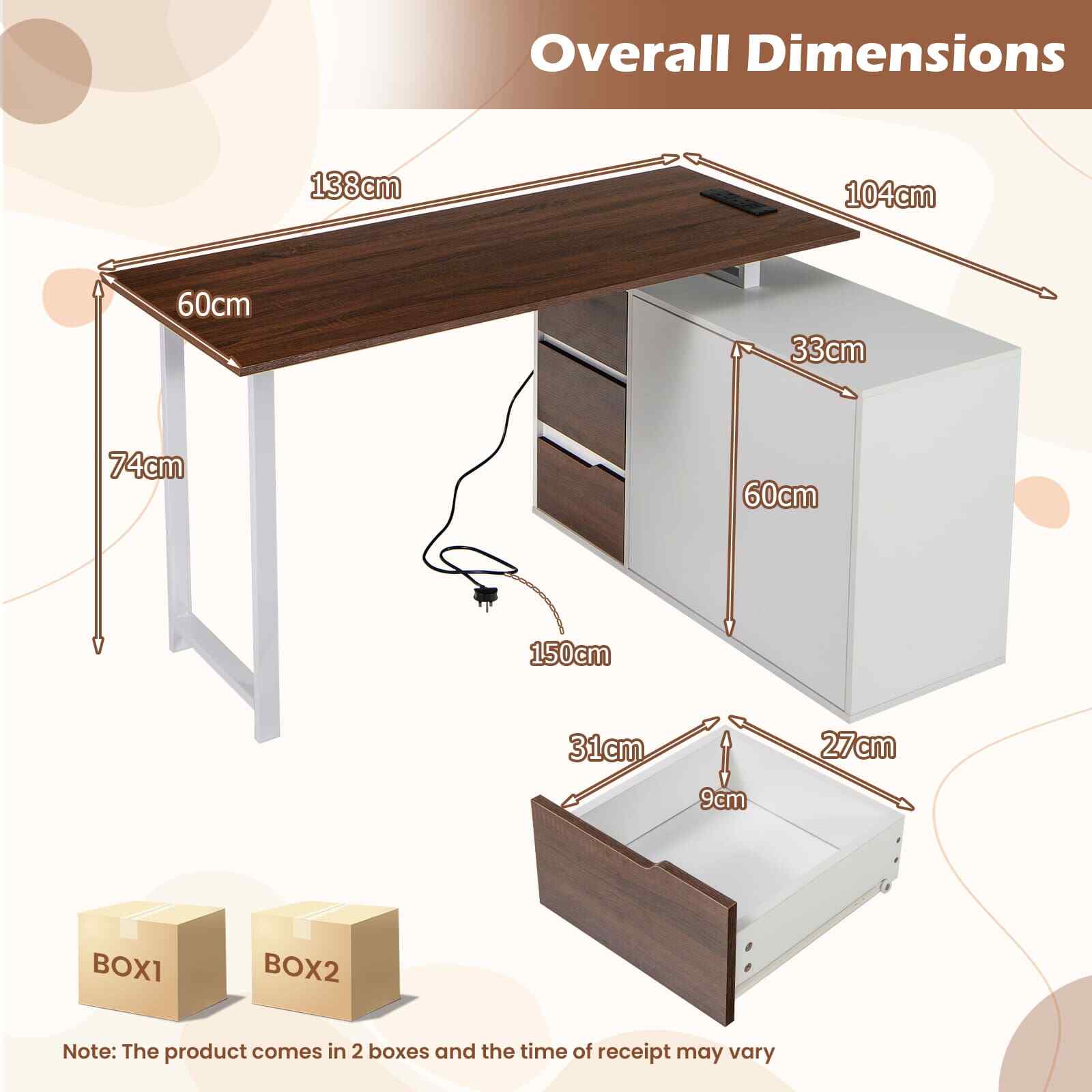 138 cm Reversible Corner Computer Desk Home Office Computer Workstation