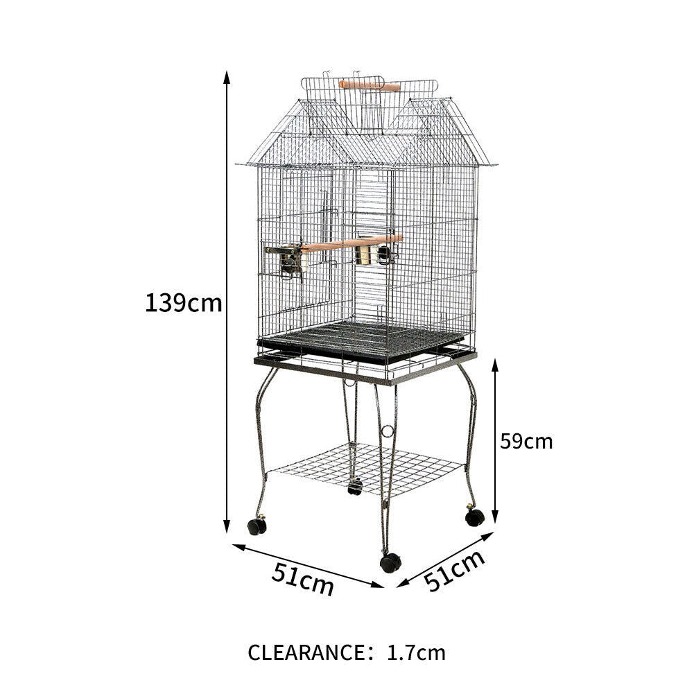 139cm Large Rolling Parrot Cage Open Playtop Bird Cage for Small Bird Parakeet