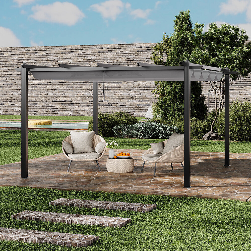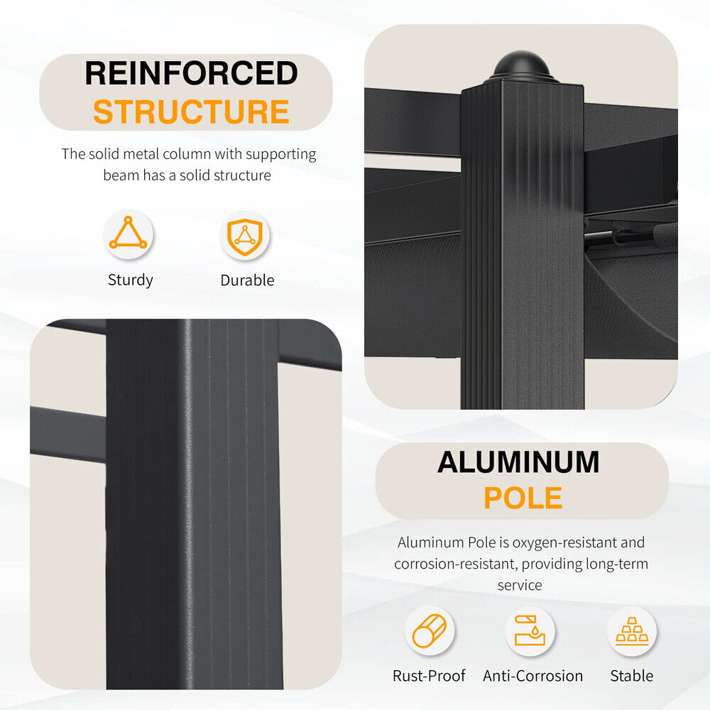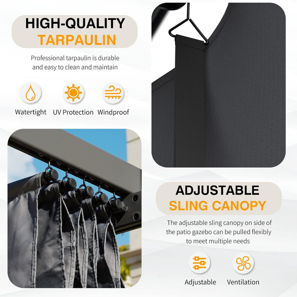 13FT Aluminum Pergola Awning Gazebo Outdoor Canopy Furniture Barbecue Shelter