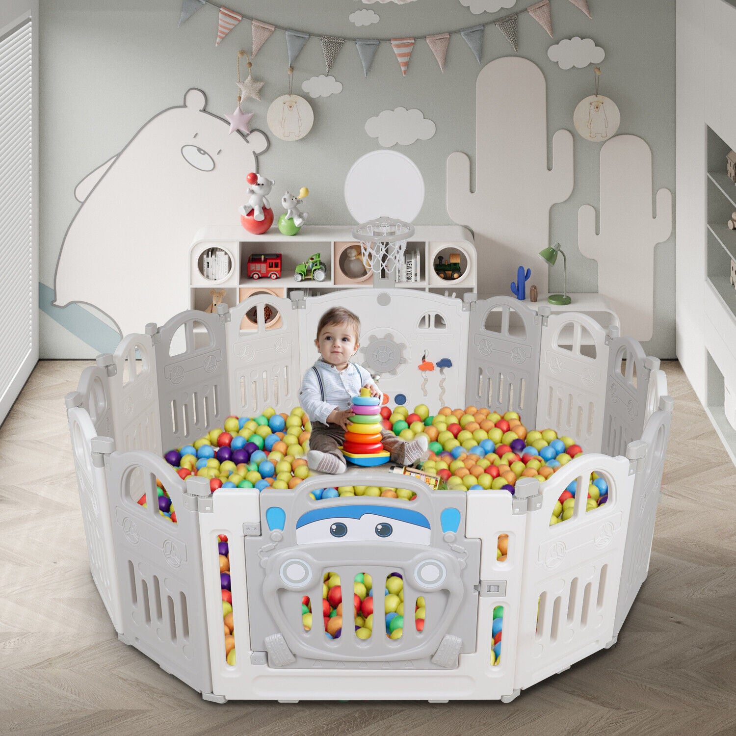 14/16Panels Baby Playpen Foldable Kids Safety Activity Center Plastic Yard Fence