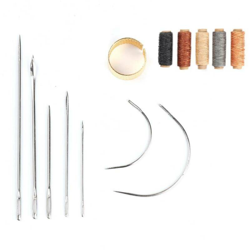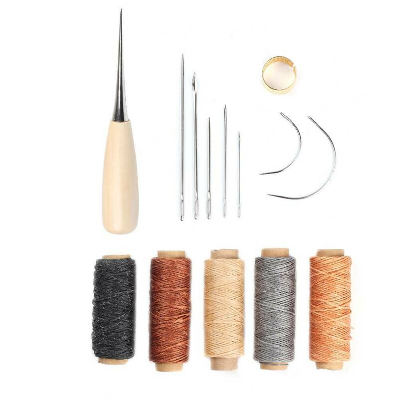 14 Leather Craft Punch Hand Stitching Carving Sewing Tool Thread Awl Thimble Kit