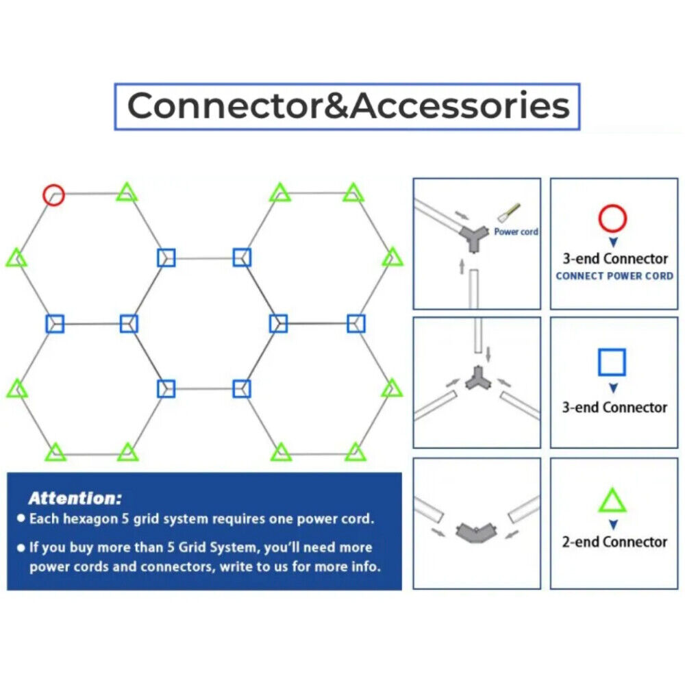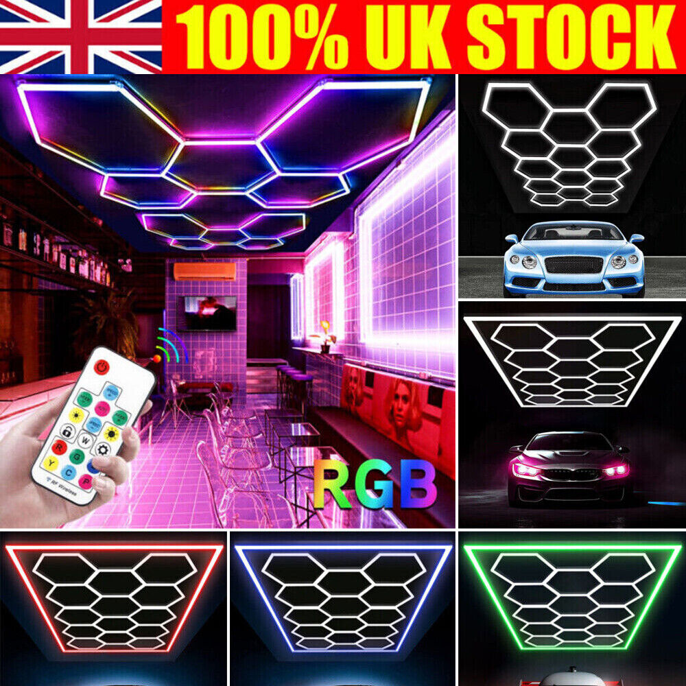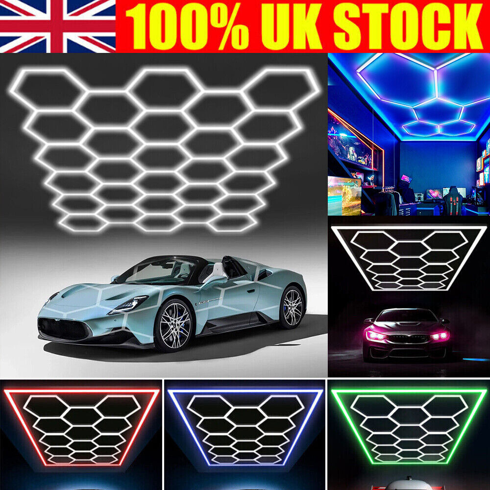 14 x Hexagon LED Lighting Car Detail Home Garage Workshop Retail Barber Car Van