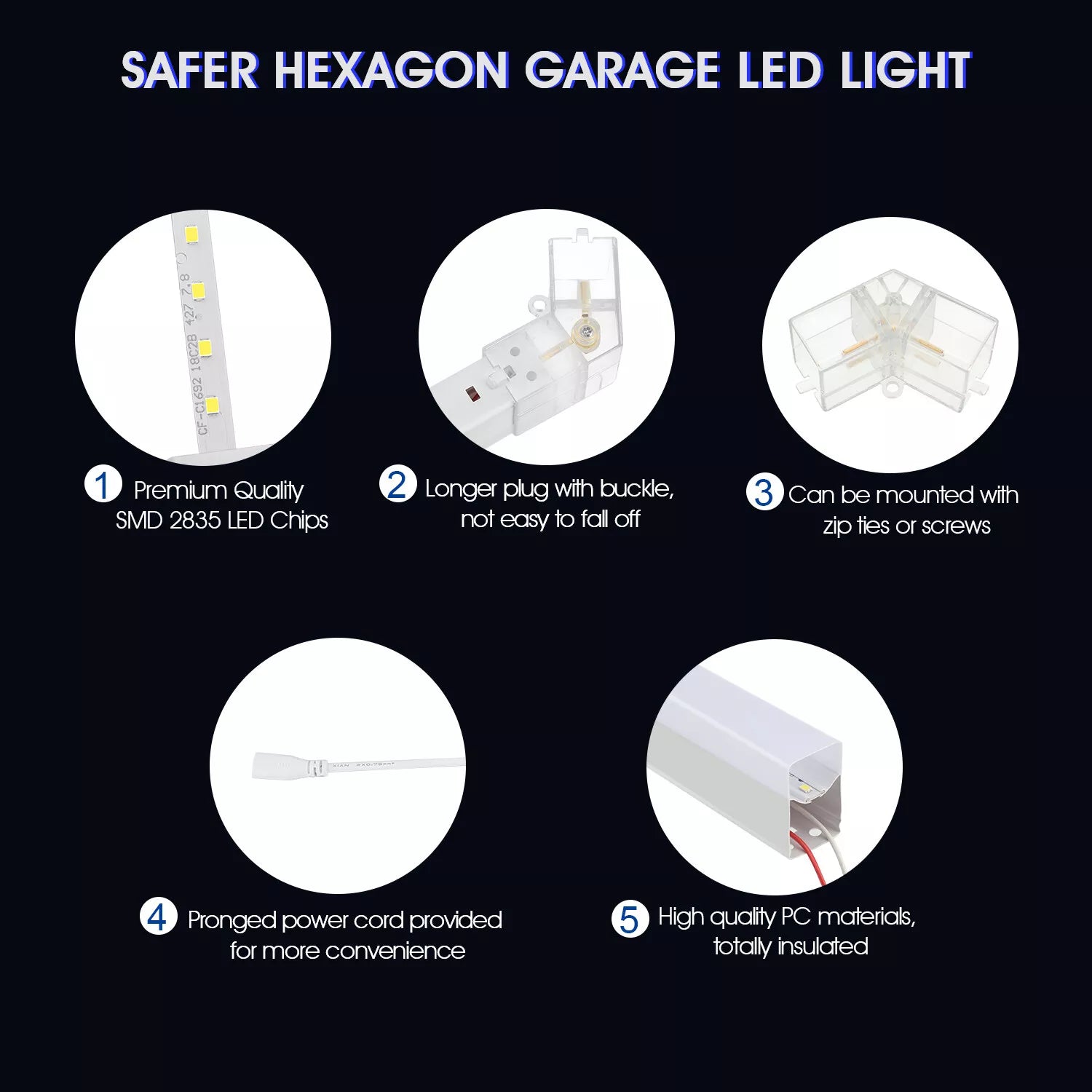 【Crafted for Excellence】: Immerse yourself in the safety of integrated housing and hidden wiring, guarding against electrical leakage. The hexagon garage tube's body, fashioned from premium aluminum alloy materials, guarantees insulation and heightened safety. With LM-110 LED chips, this plug-and-play masterpiece ensures outstanding light transmittance, saving 70% more energy than conventional lamps, all while delivering the perfect natural white light.