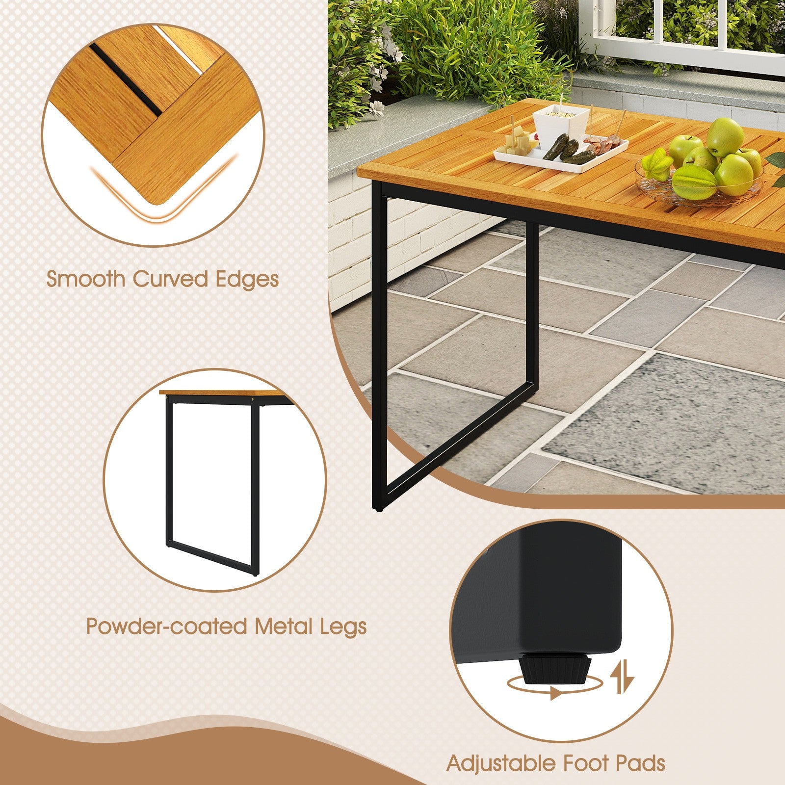 140 x 70cm Rectangle Patio Table with Slatted Tabletop-Natural