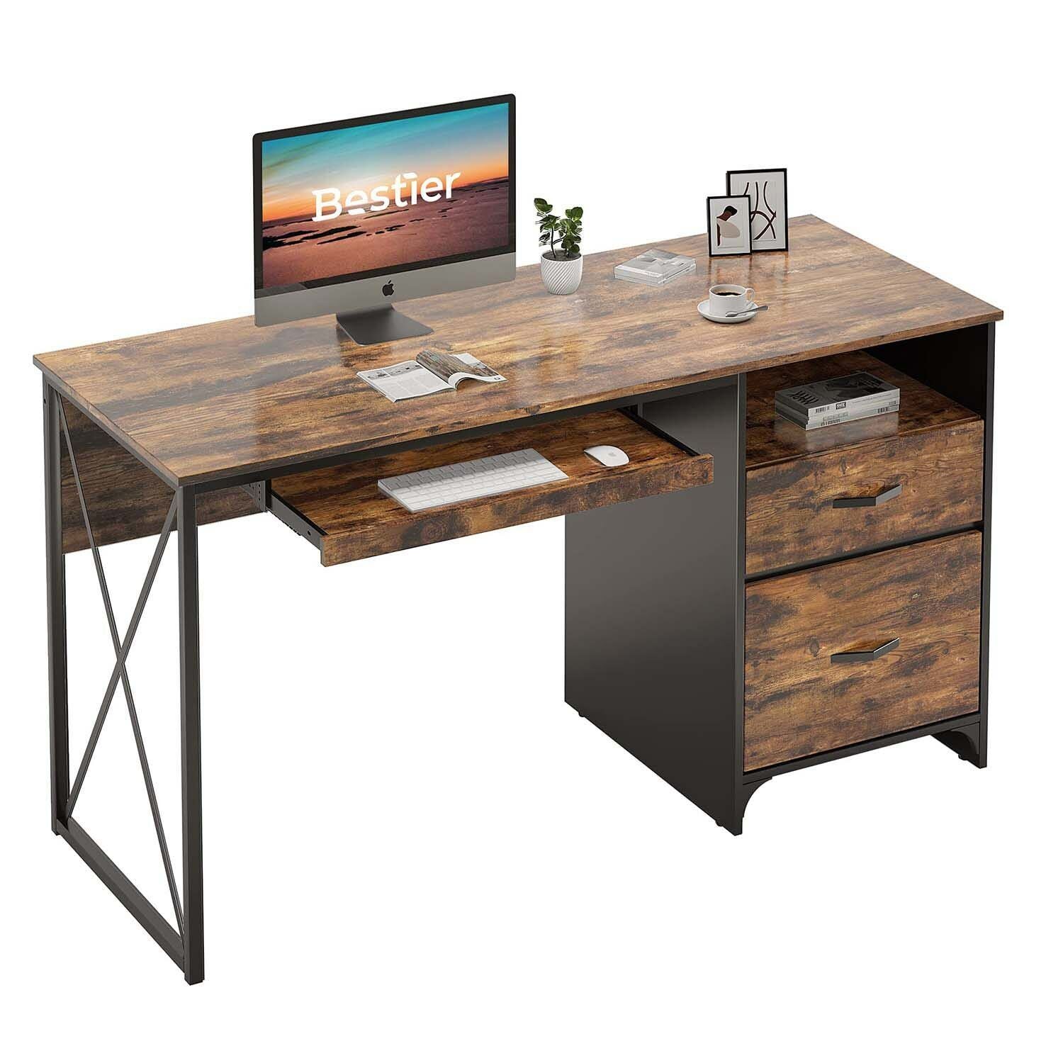 140cm Computer Desk with Keyboard Tray Drawers Laptop Home Office Writing Table