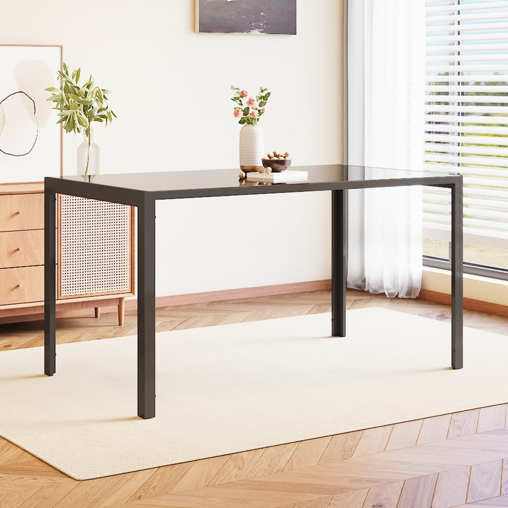 140cm Tempered Glass Dining Table With Black Metal Legs Dining Room Kitchen