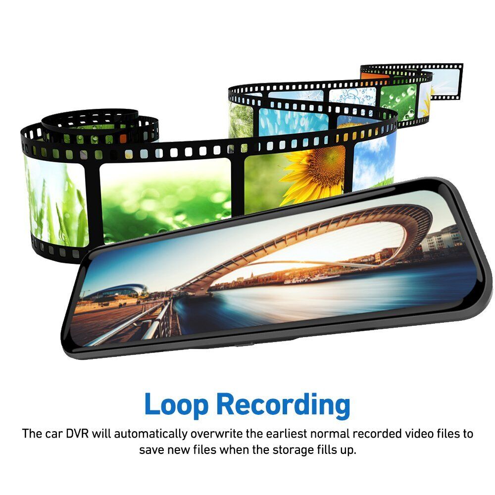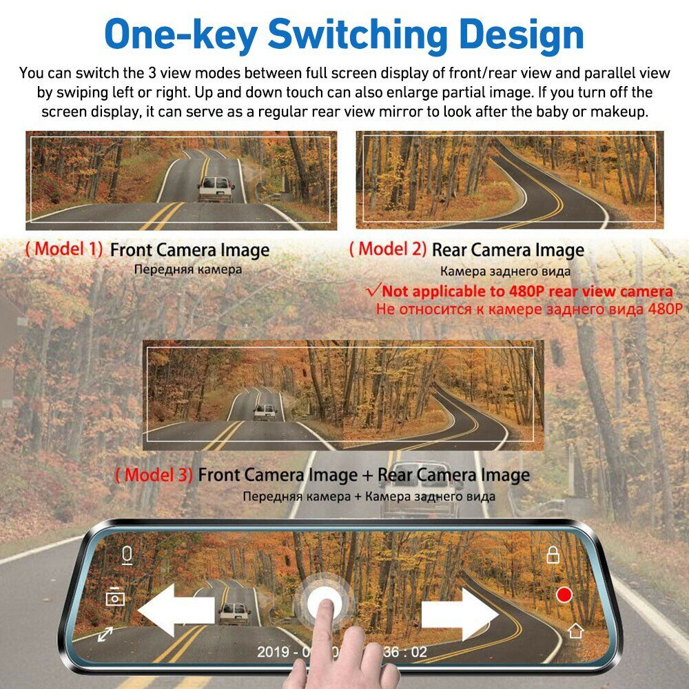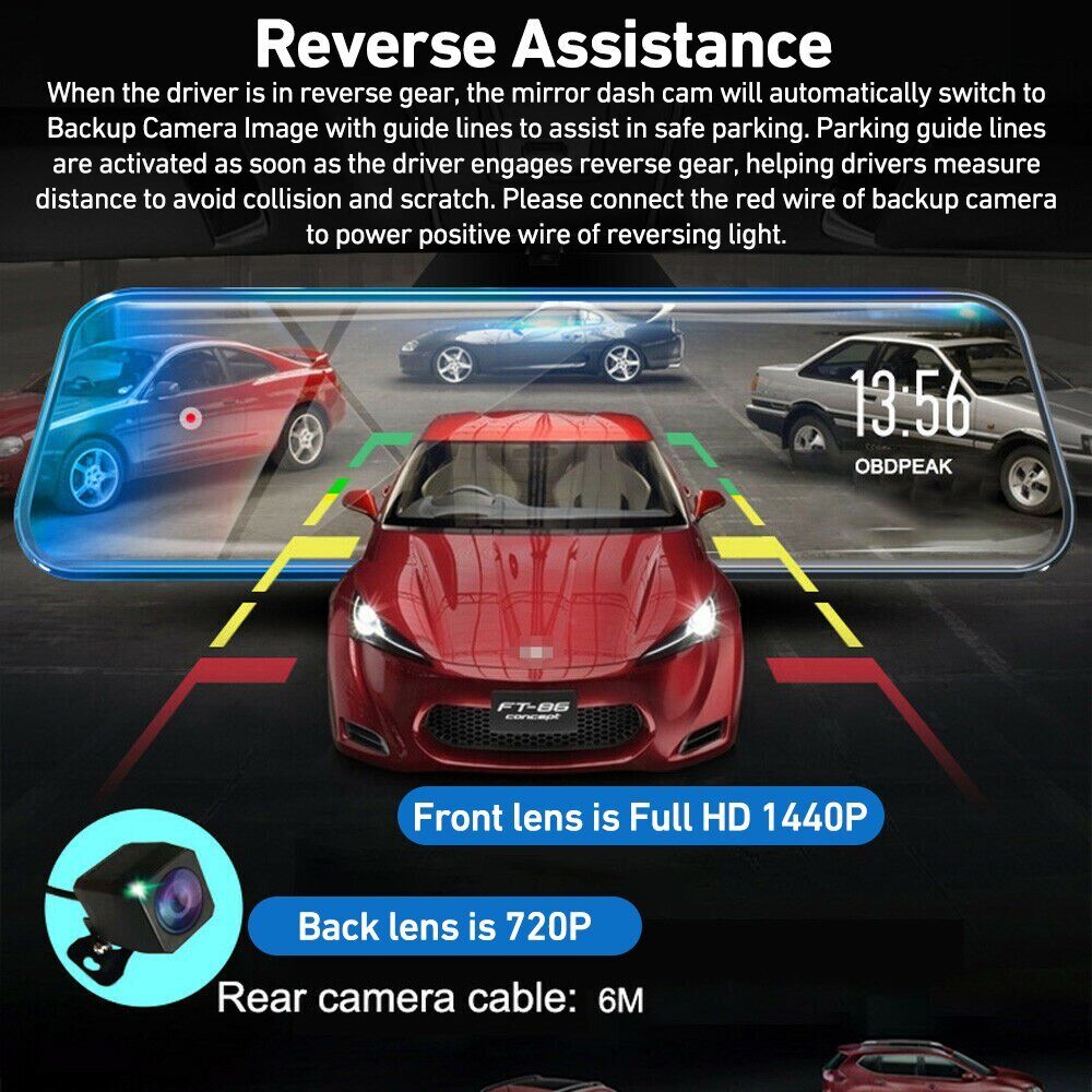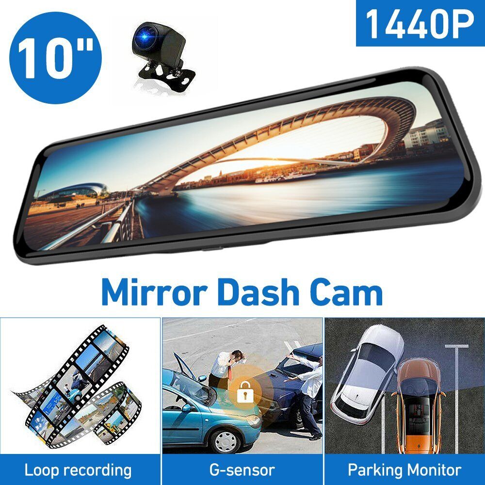 1440P Dual Lens Car DVR Dash Cam Video Camera Recorder Rearview Mirror 10"