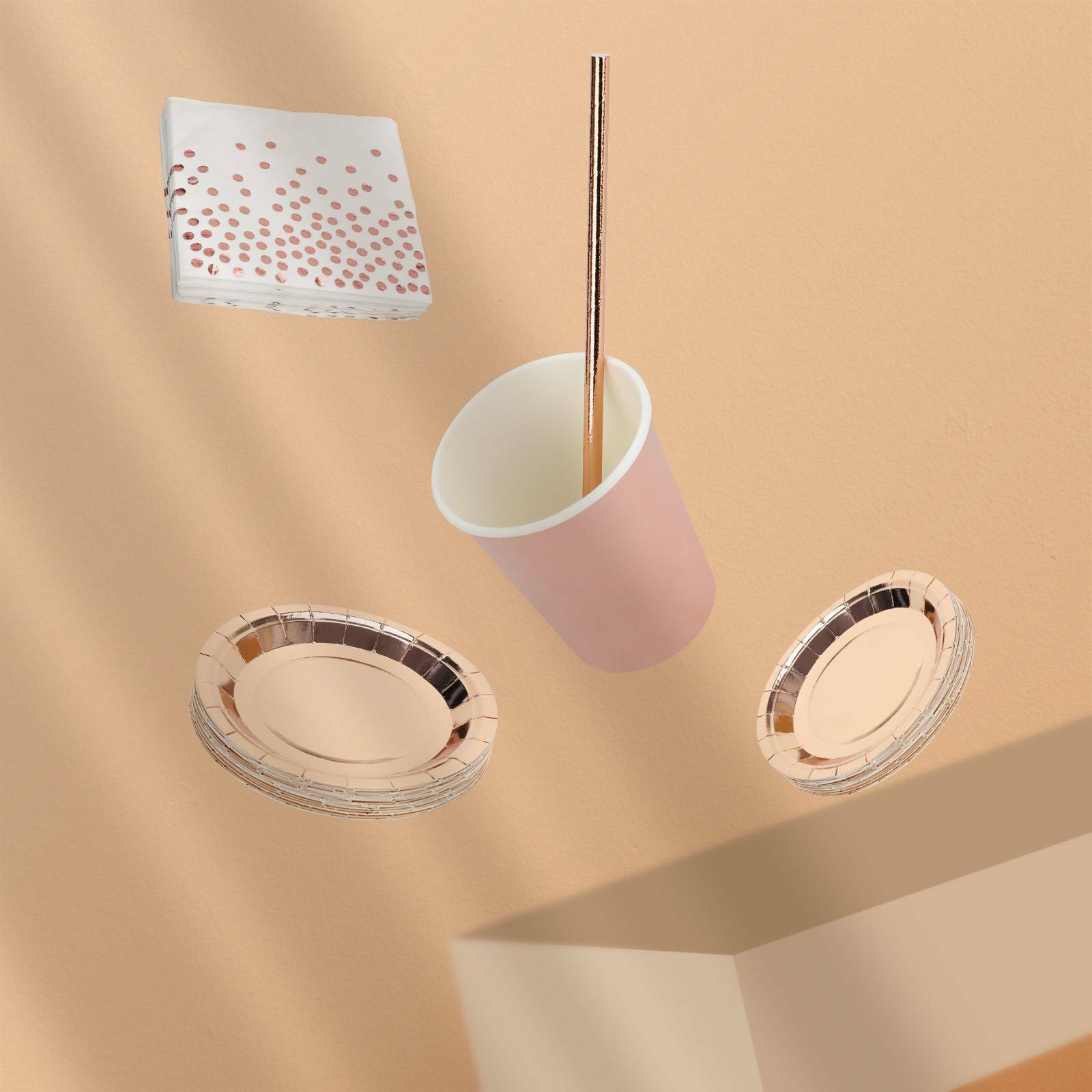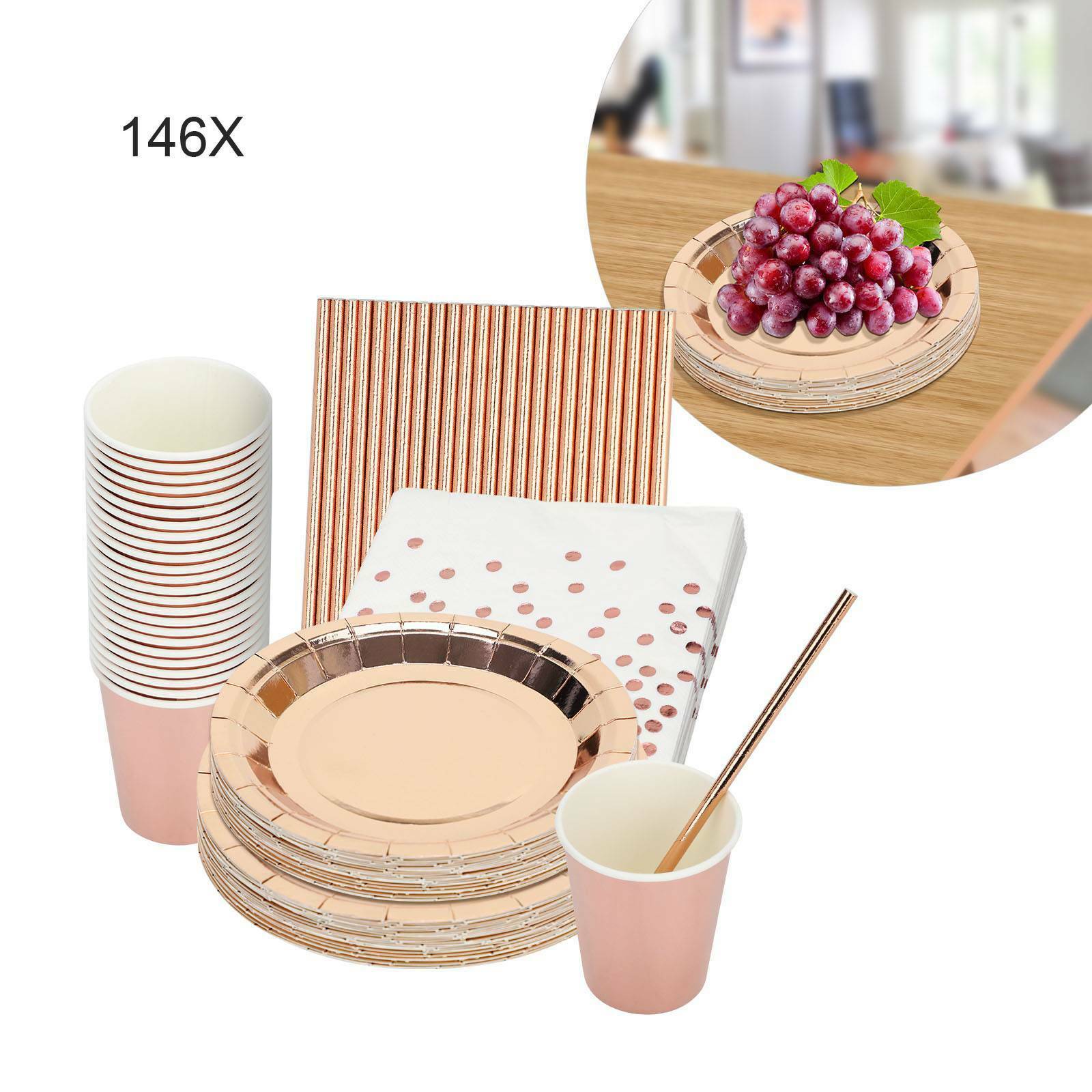 146PCS Rose Gold Foil Paper Plates Straws Cups Tableware Wedding Party Birthday