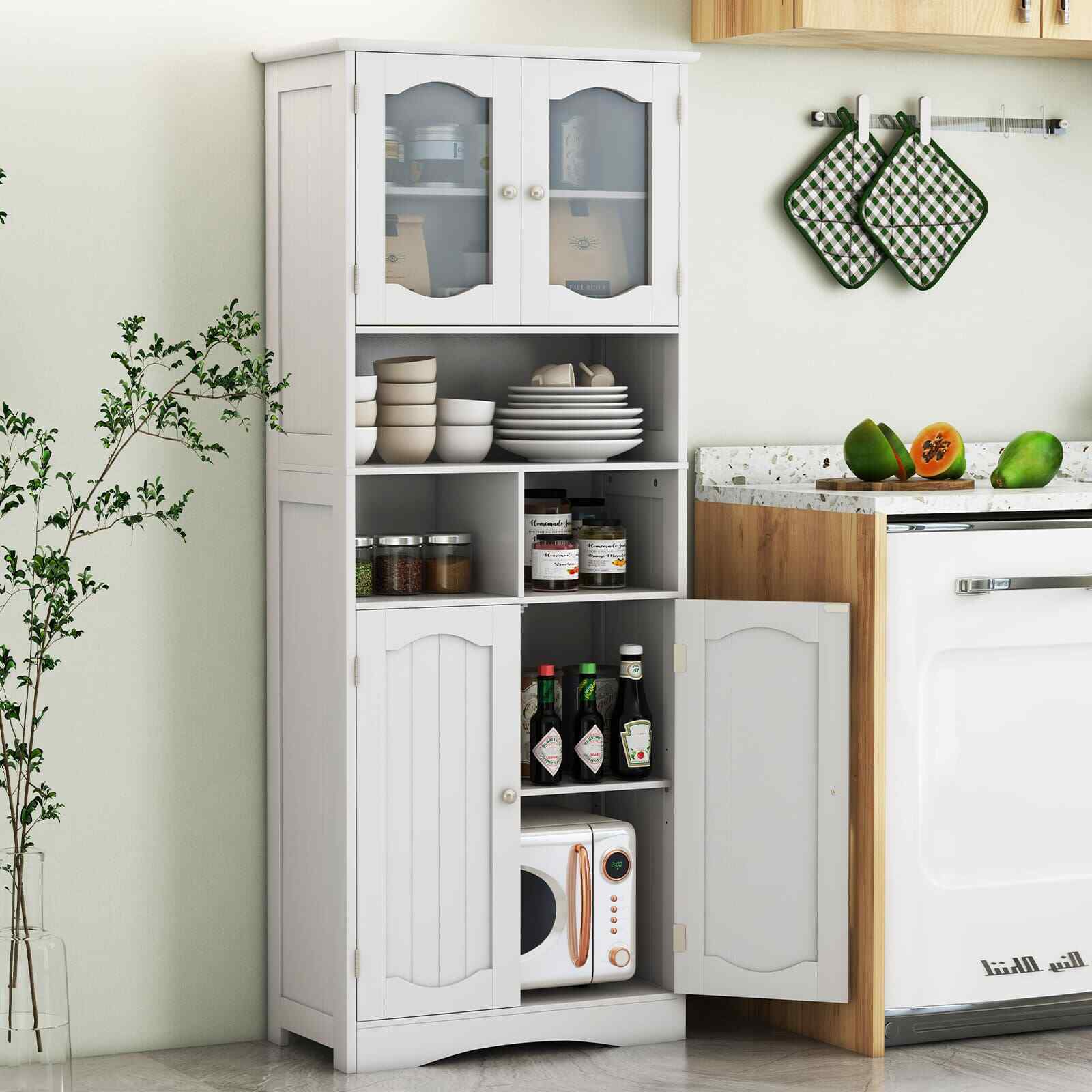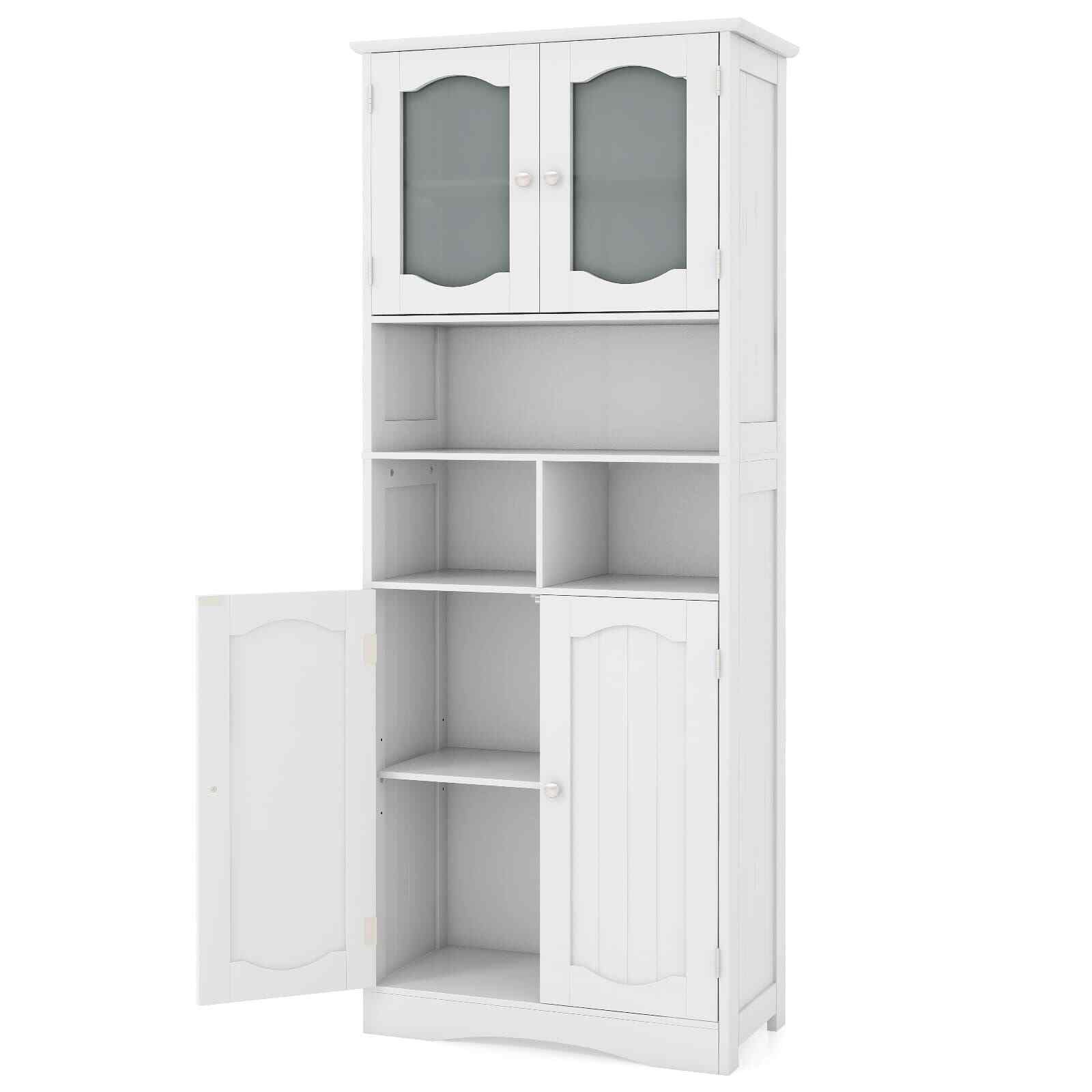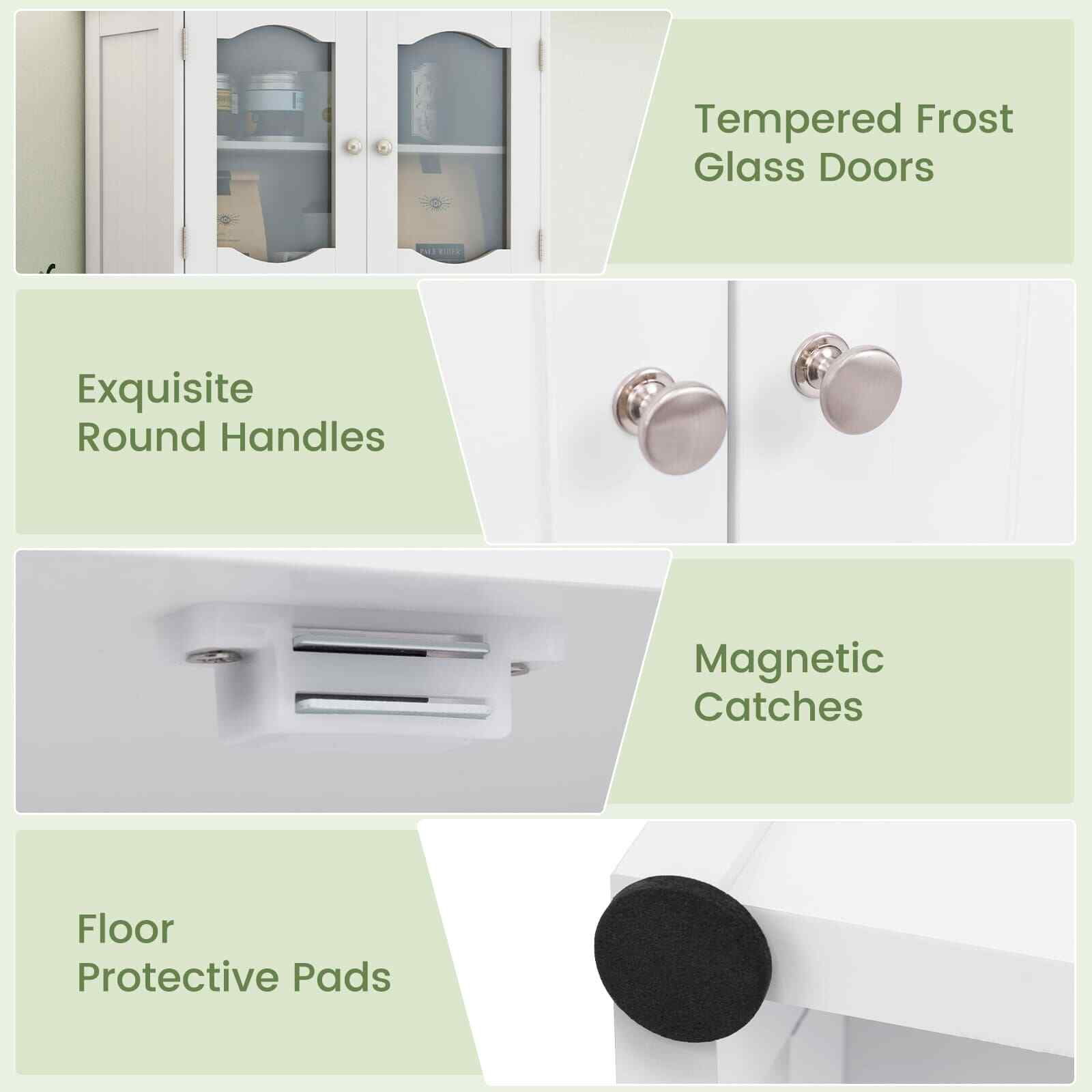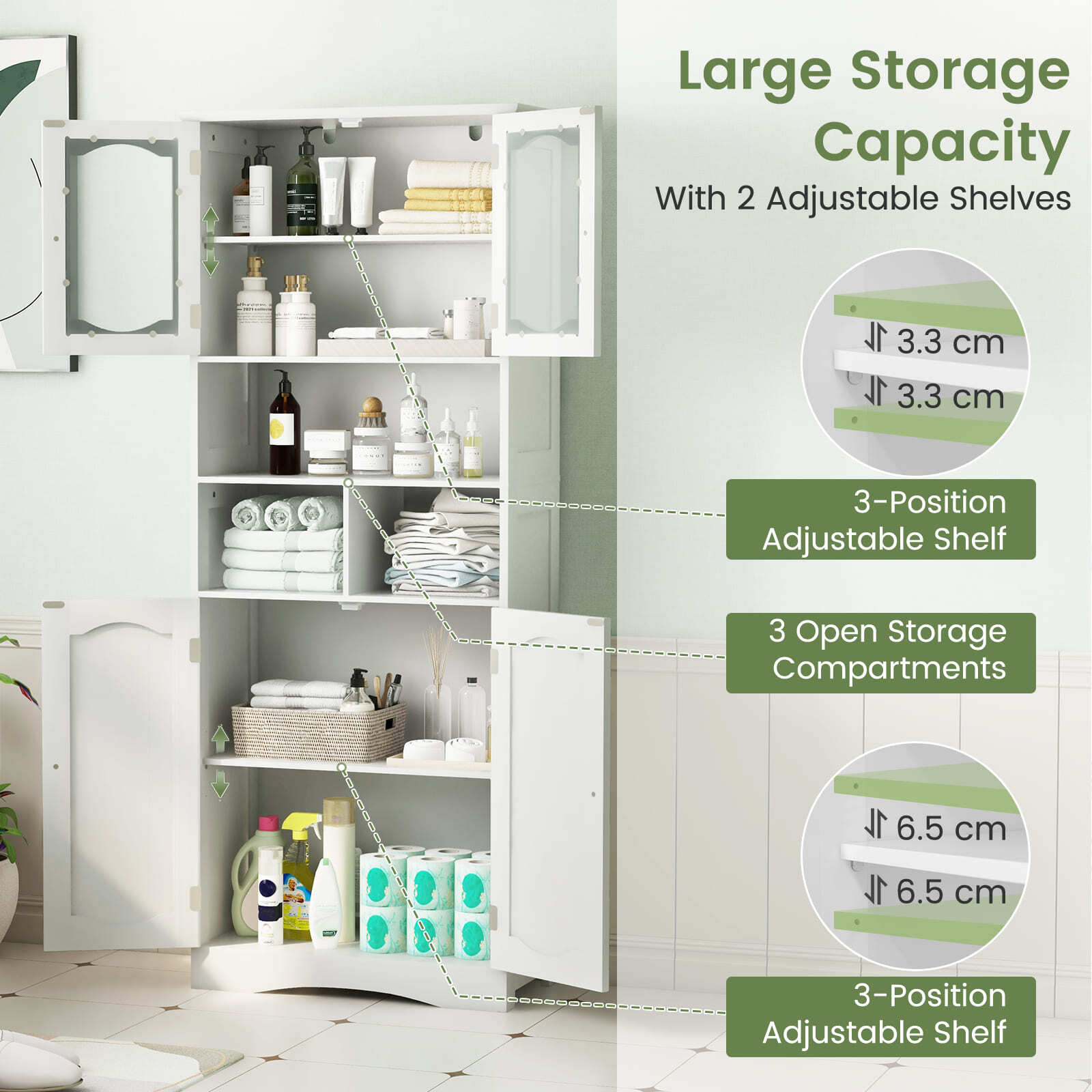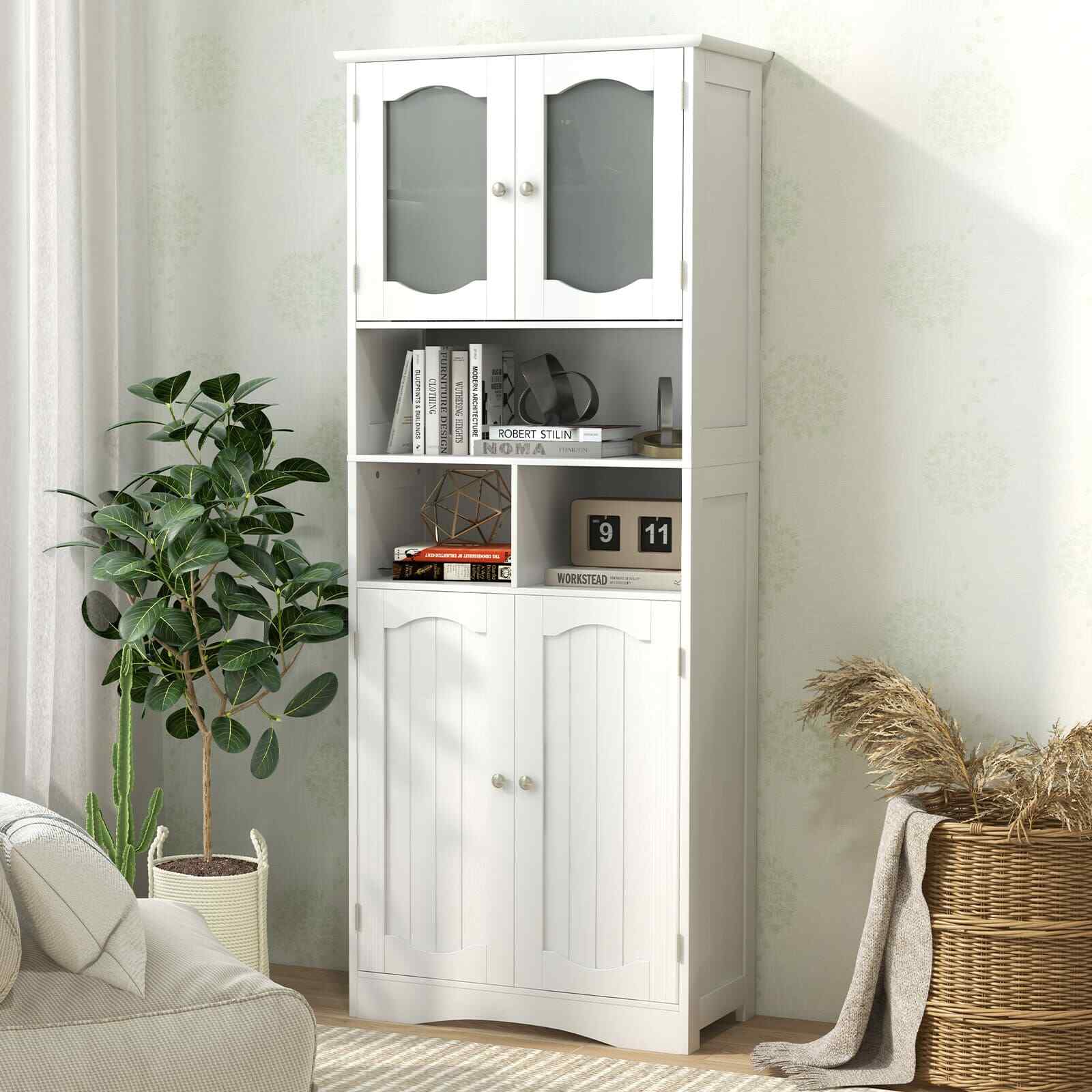 148cm Tall Bathroom Cabinet Freestanding Storage Cabinet with Glass Doors White
