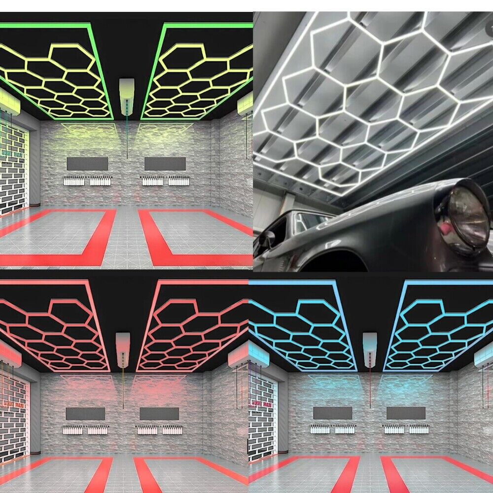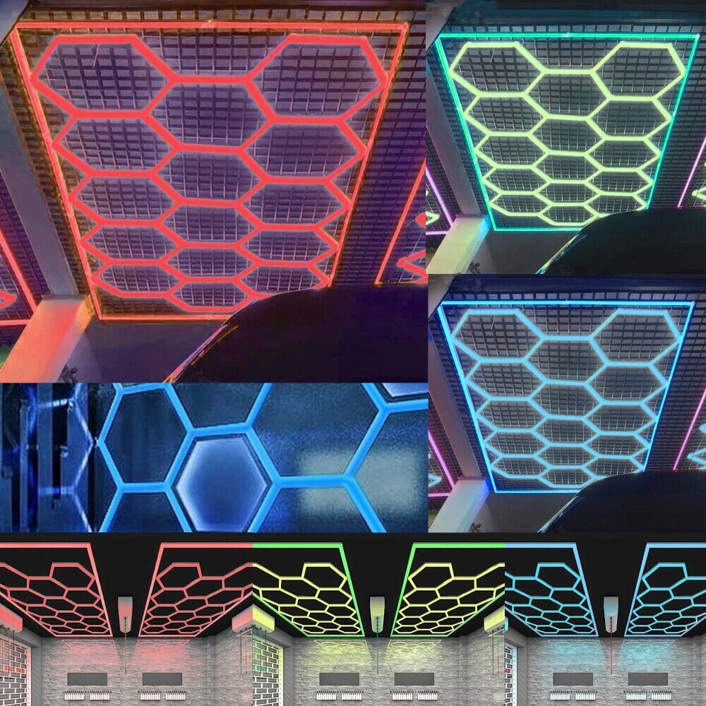 14Hex Hexagon RGB LED Lighting Car Detail Van Gym Home Garage Workshop Wall Lamp