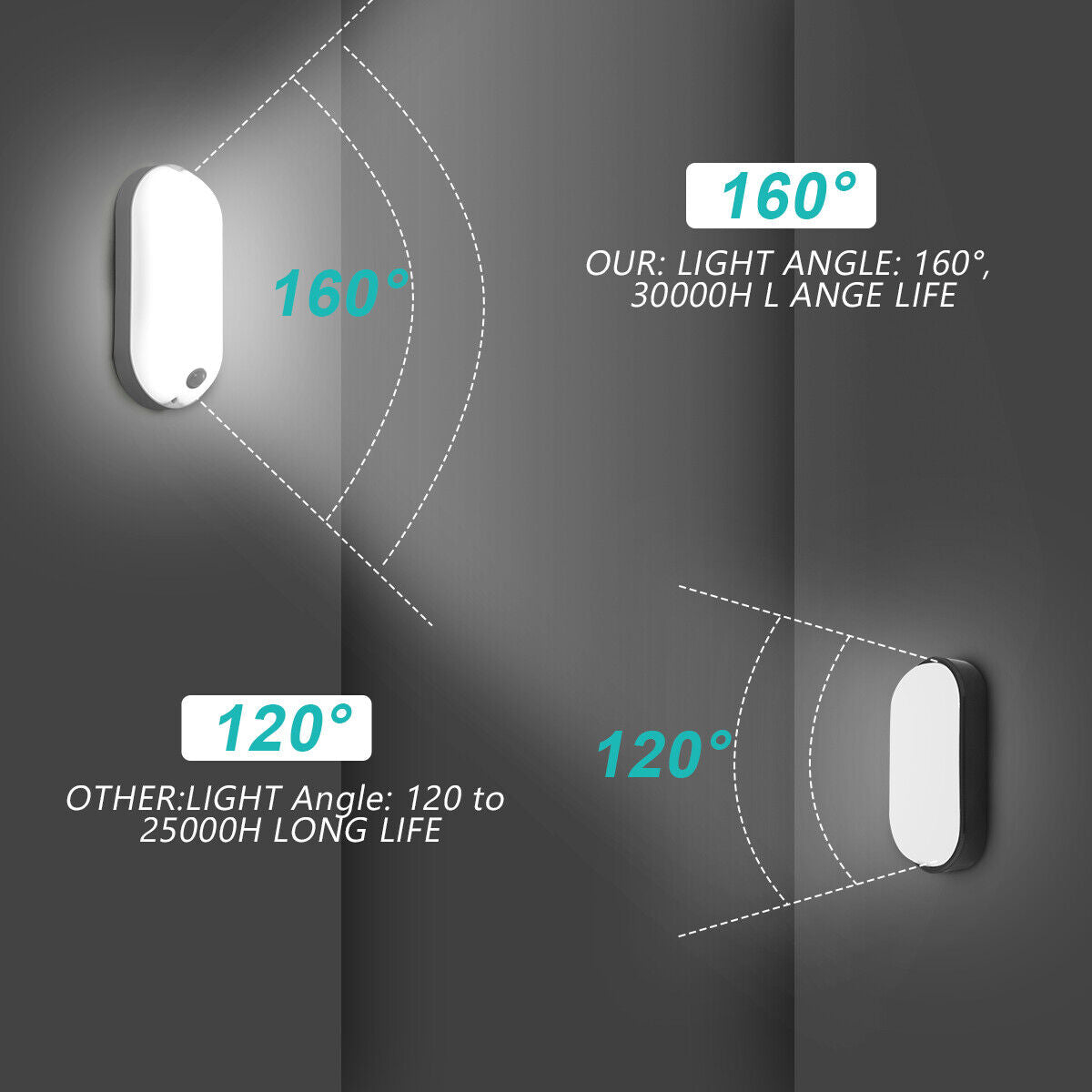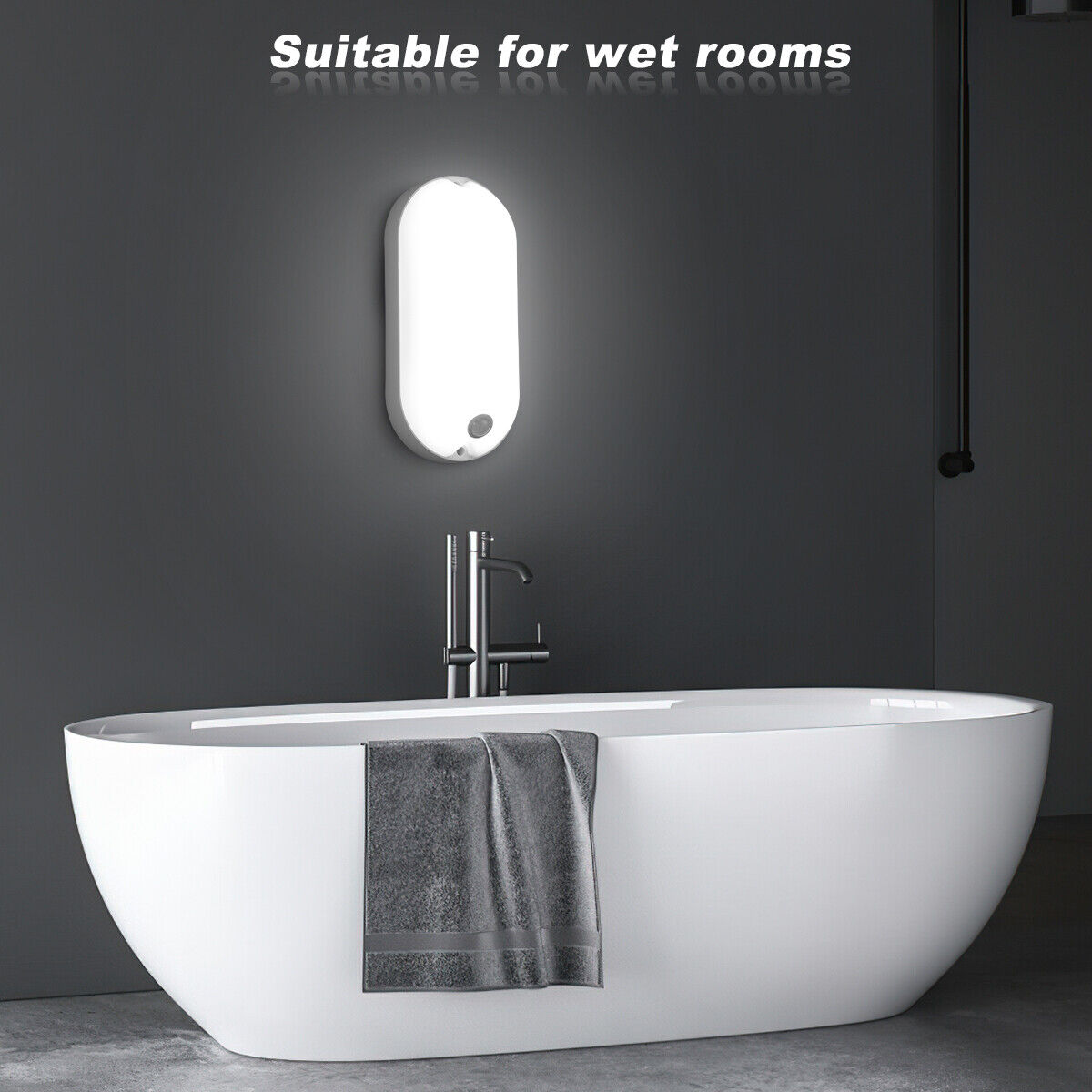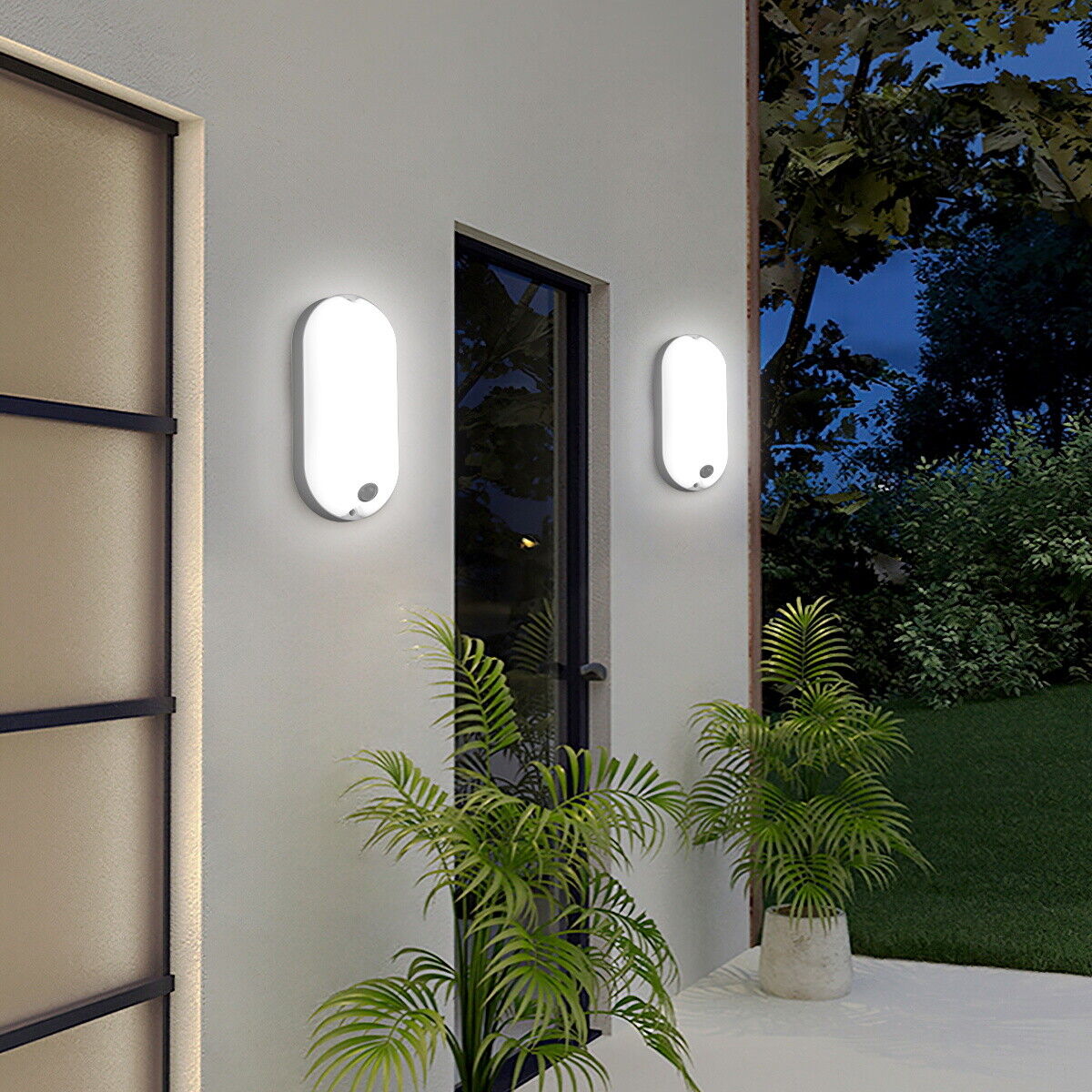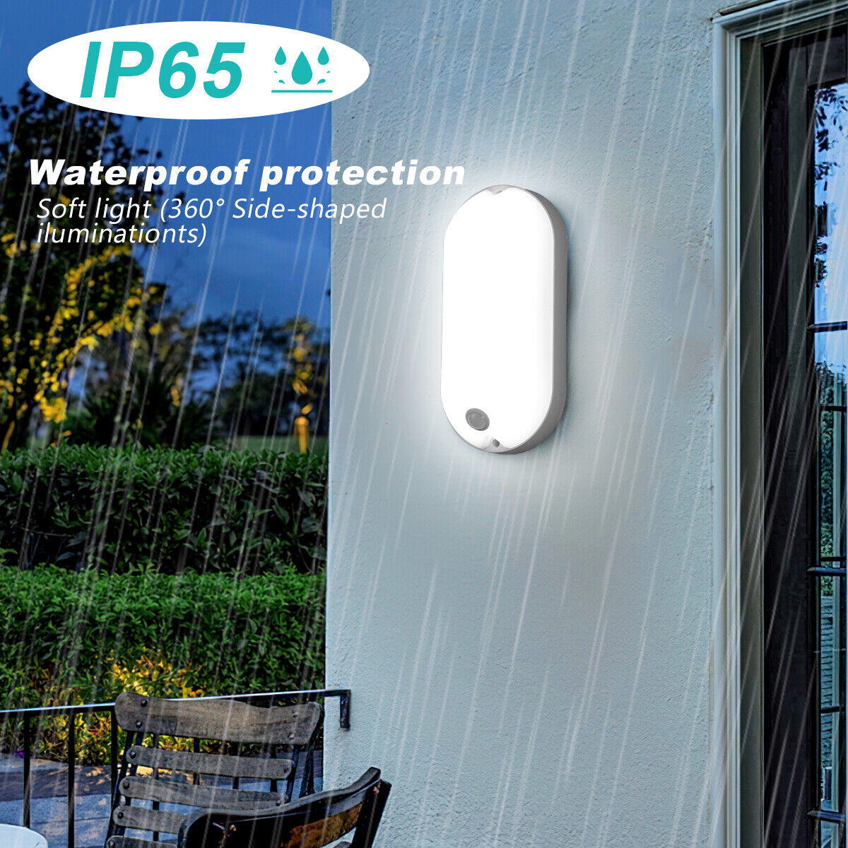 14W MOTION PIR Sensor Light Flush Wall Mounted Oval Bulkhead Light 6500K Outdoor