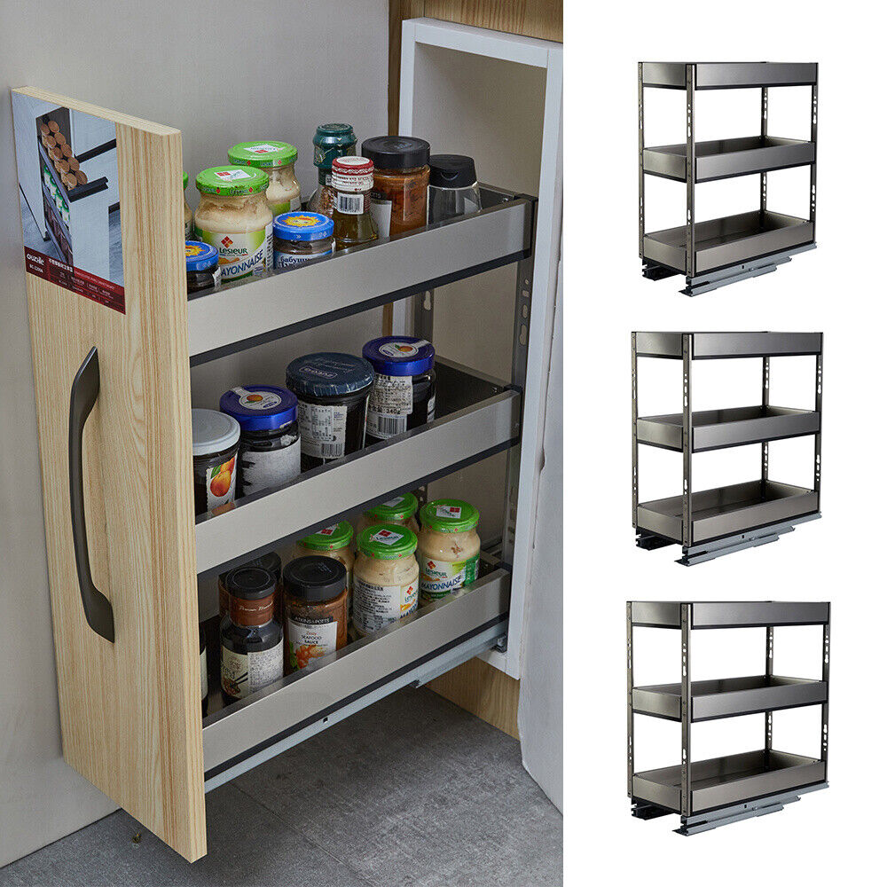 150-250mm Pull Out Steel Basket Kitchen Cabinet Larder Organizer Cupboard Drawer