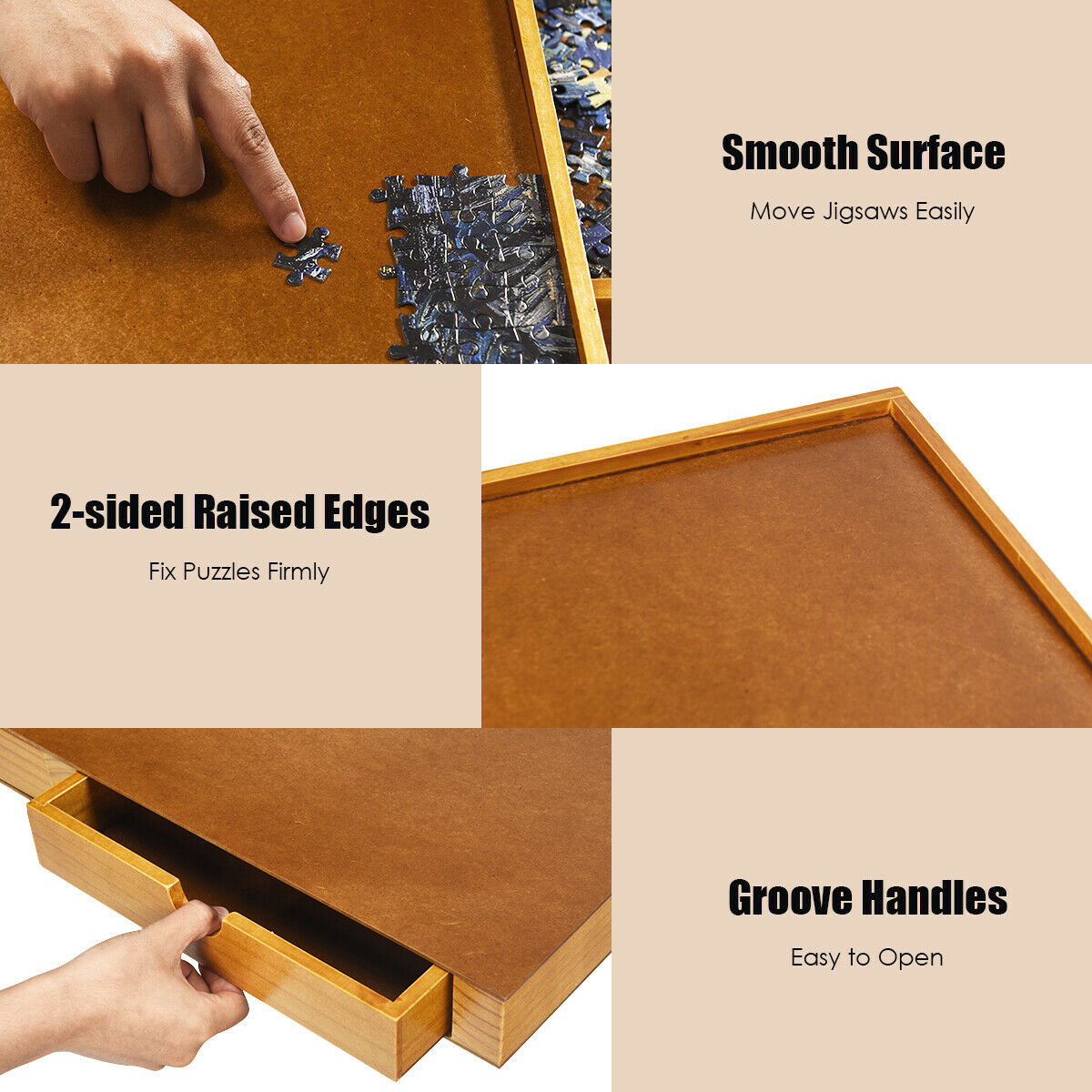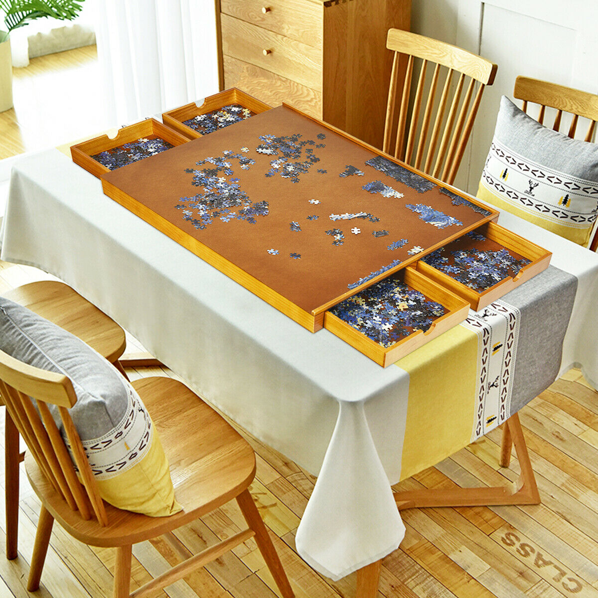 1500 Pcs Puzzle Board Wooden Jigsaw Storage Table Game Set W/ 4 Sliding Drawers
