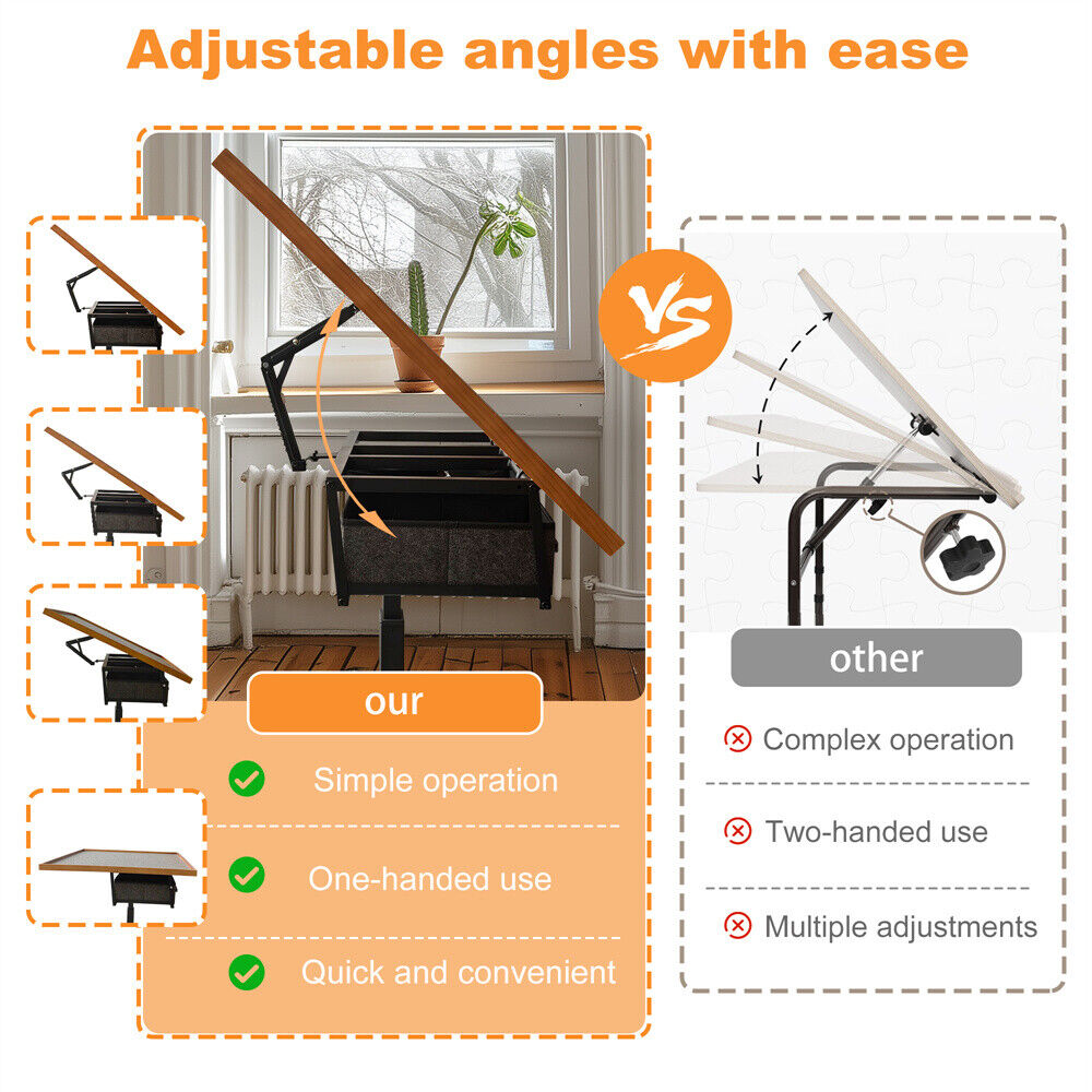 Adjustable Height, Tilting Angle, Rolling Wheels