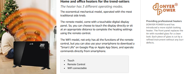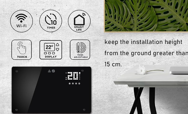 1500W Convector Heater, Ultra-thin Wall-mounted or Freestanding,