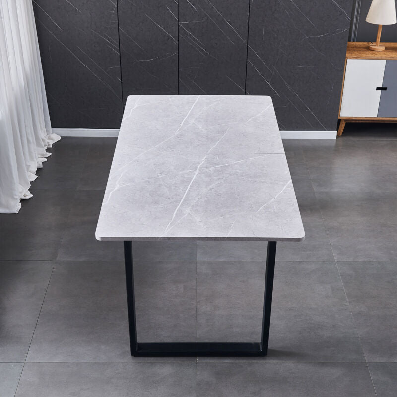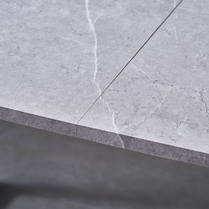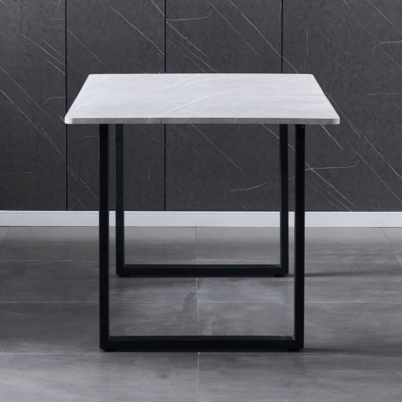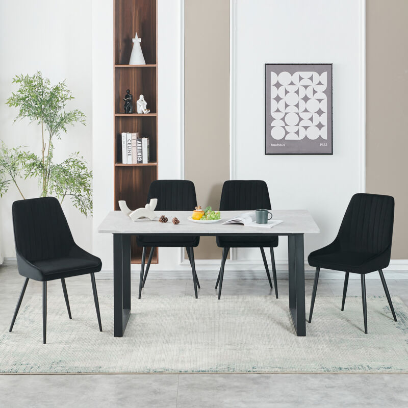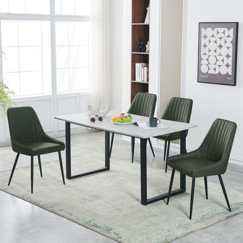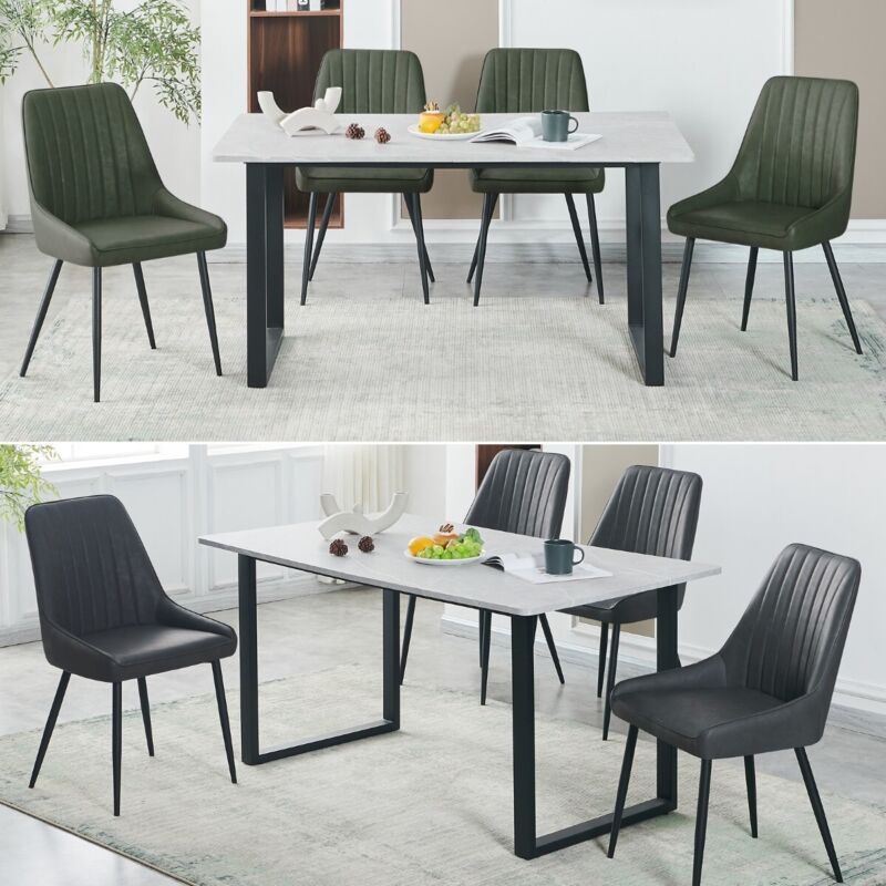 150cm Dining Table Set and 4 PU Leather Chairs Kitchen Marble Effect Grey Table