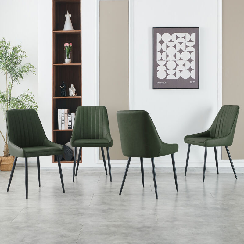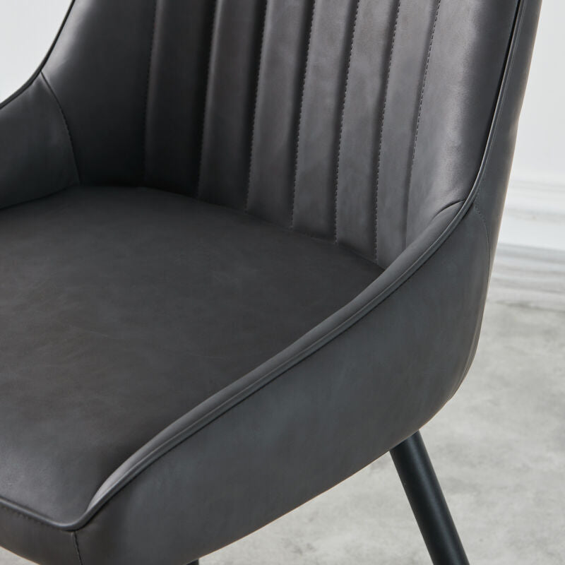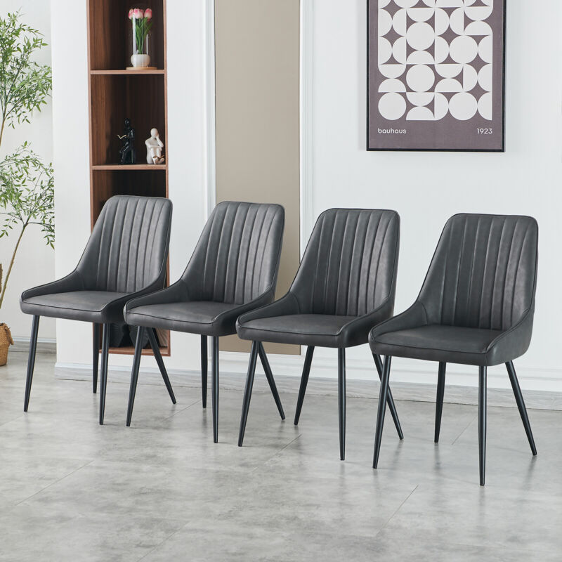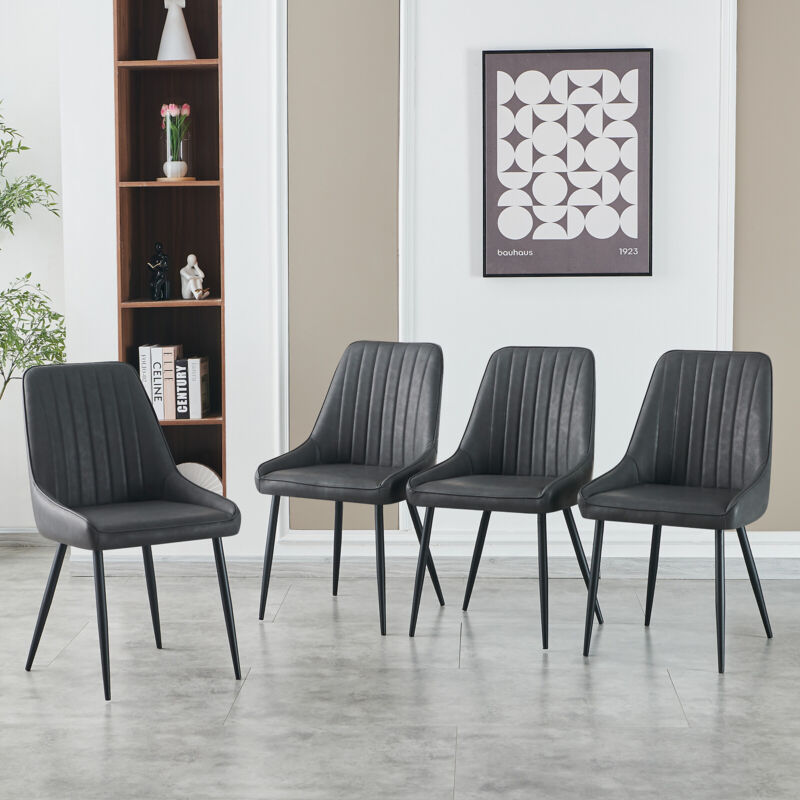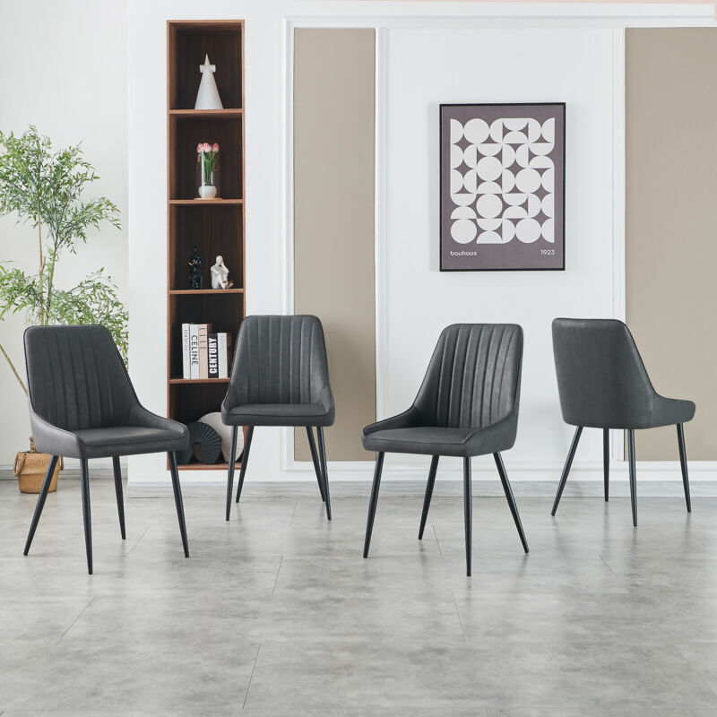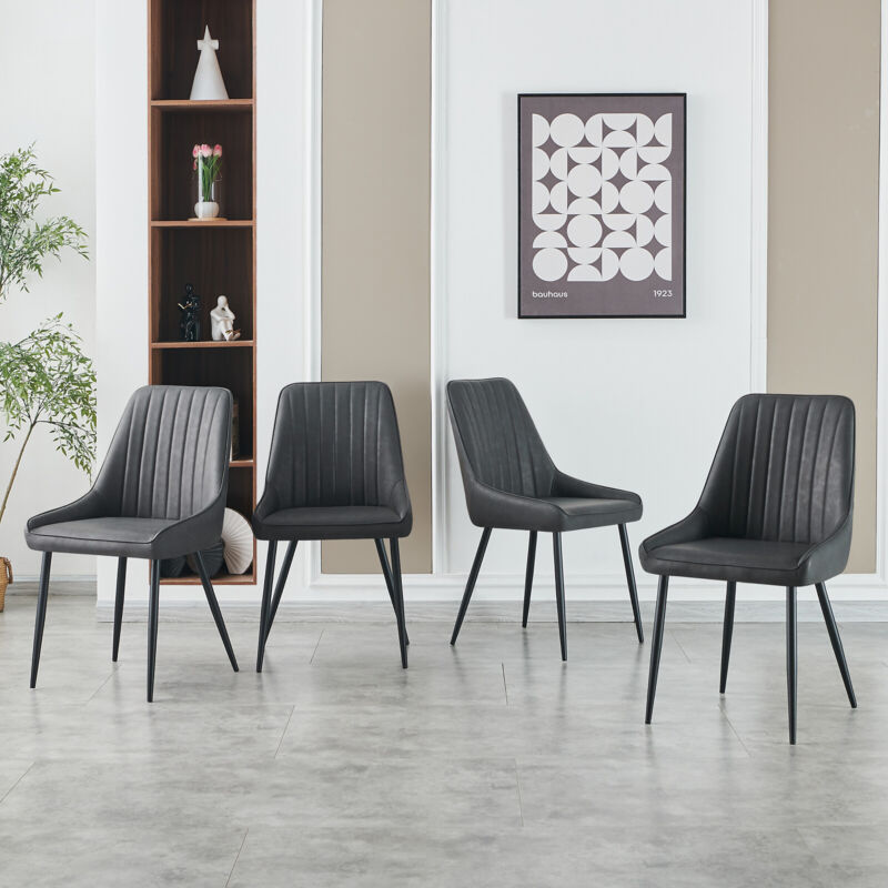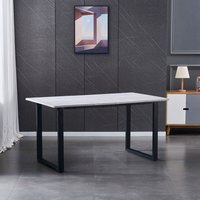 150cm Dining Table Set and 4 PU Leather Chairs Kitchen Marble Effect Grey Table
