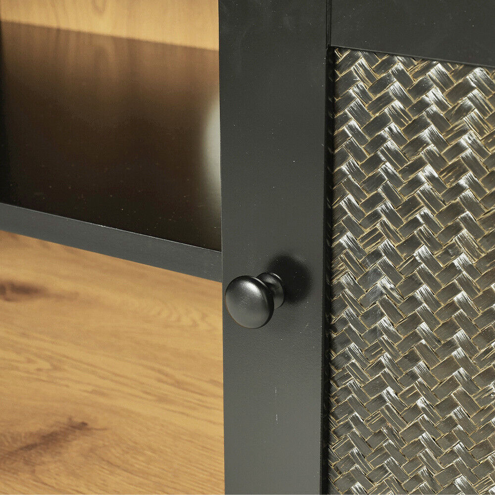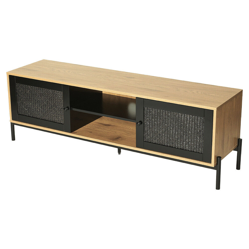 150cm Modern TV Unit Cabinet Storage TV Stand With 2 Rattan Doors Living Room