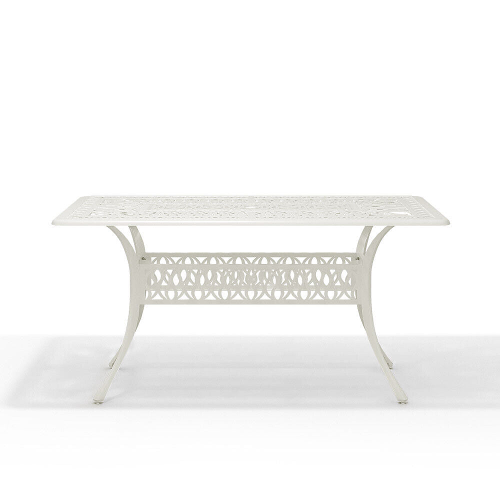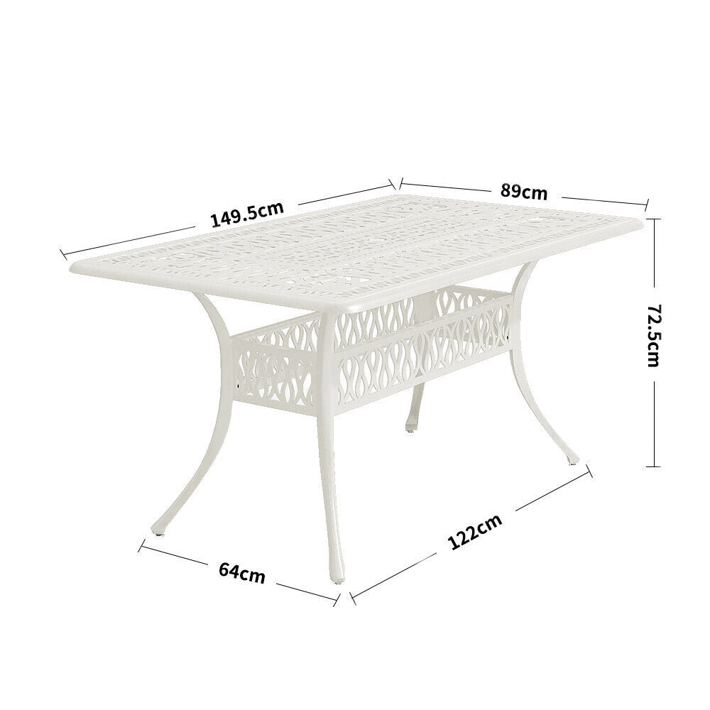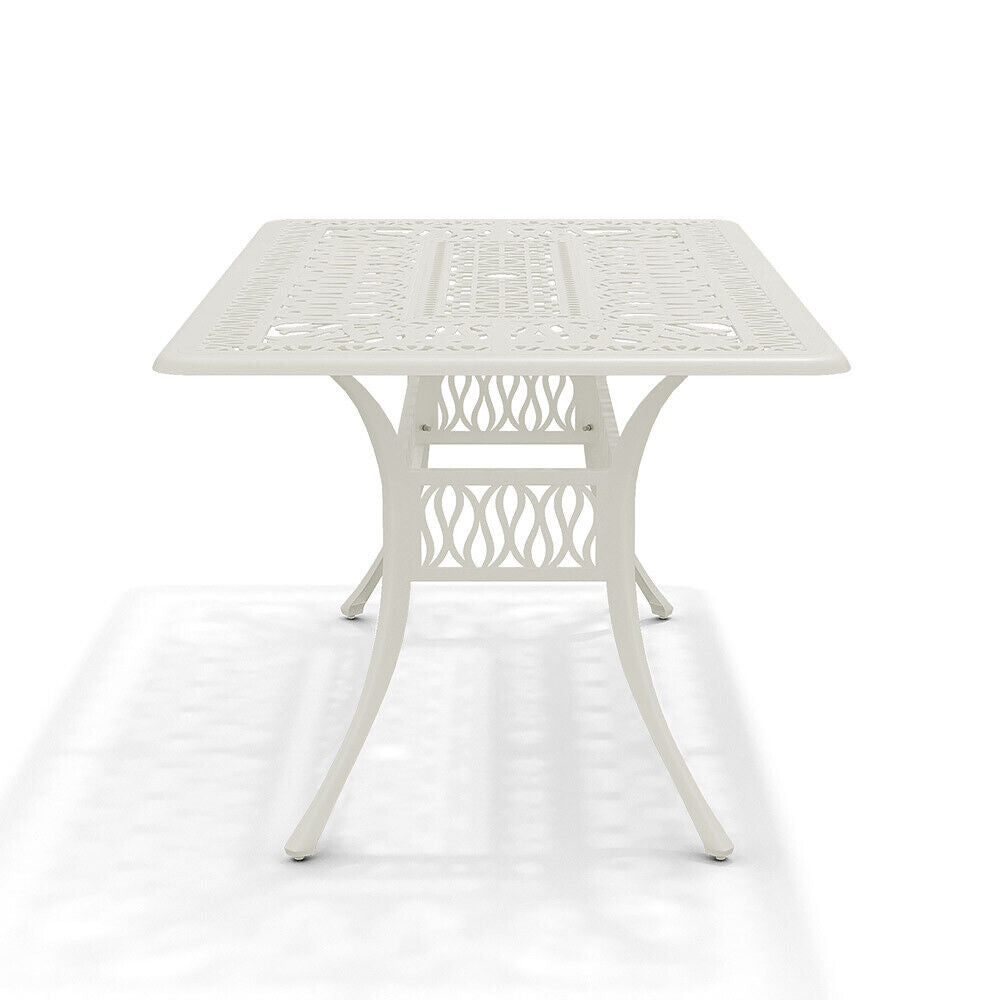 150cm Outdoor Cast Aluminum Table Patio Rectangle Dining Table w/ Umbrella Hole
