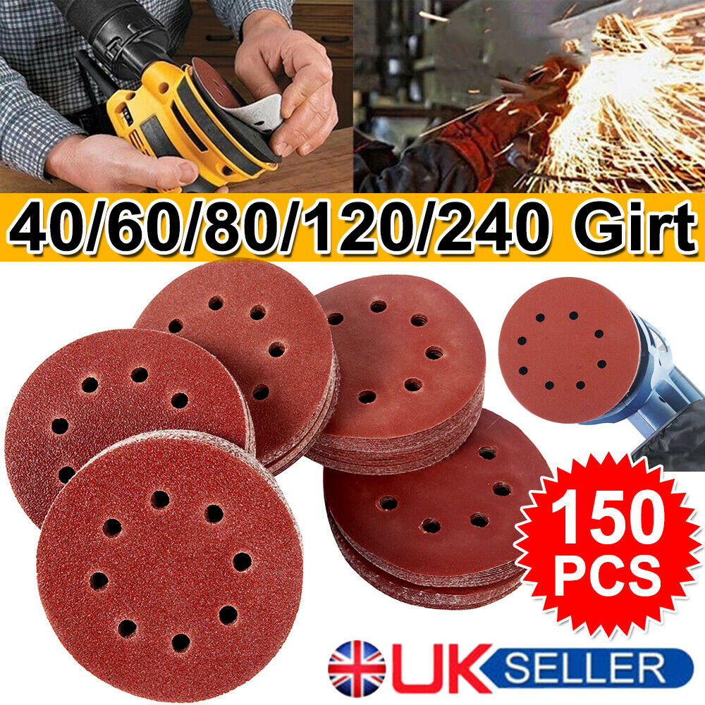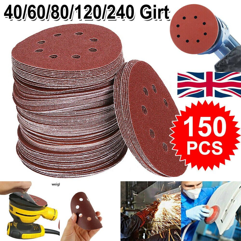 150pcs 125mm - 5" Sanding Discs 40 60 80 120 240 Grit Orbital Sander Pads Velc