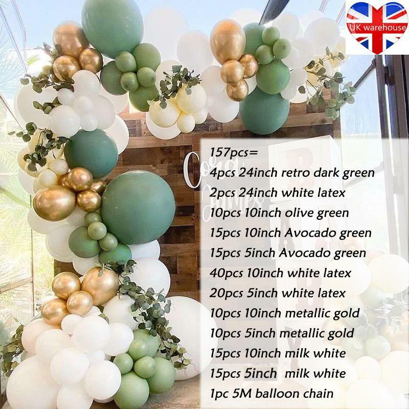 157 Avocado Green Balloons Garland Arch Kit Retro Green Gold Latex Party Decor