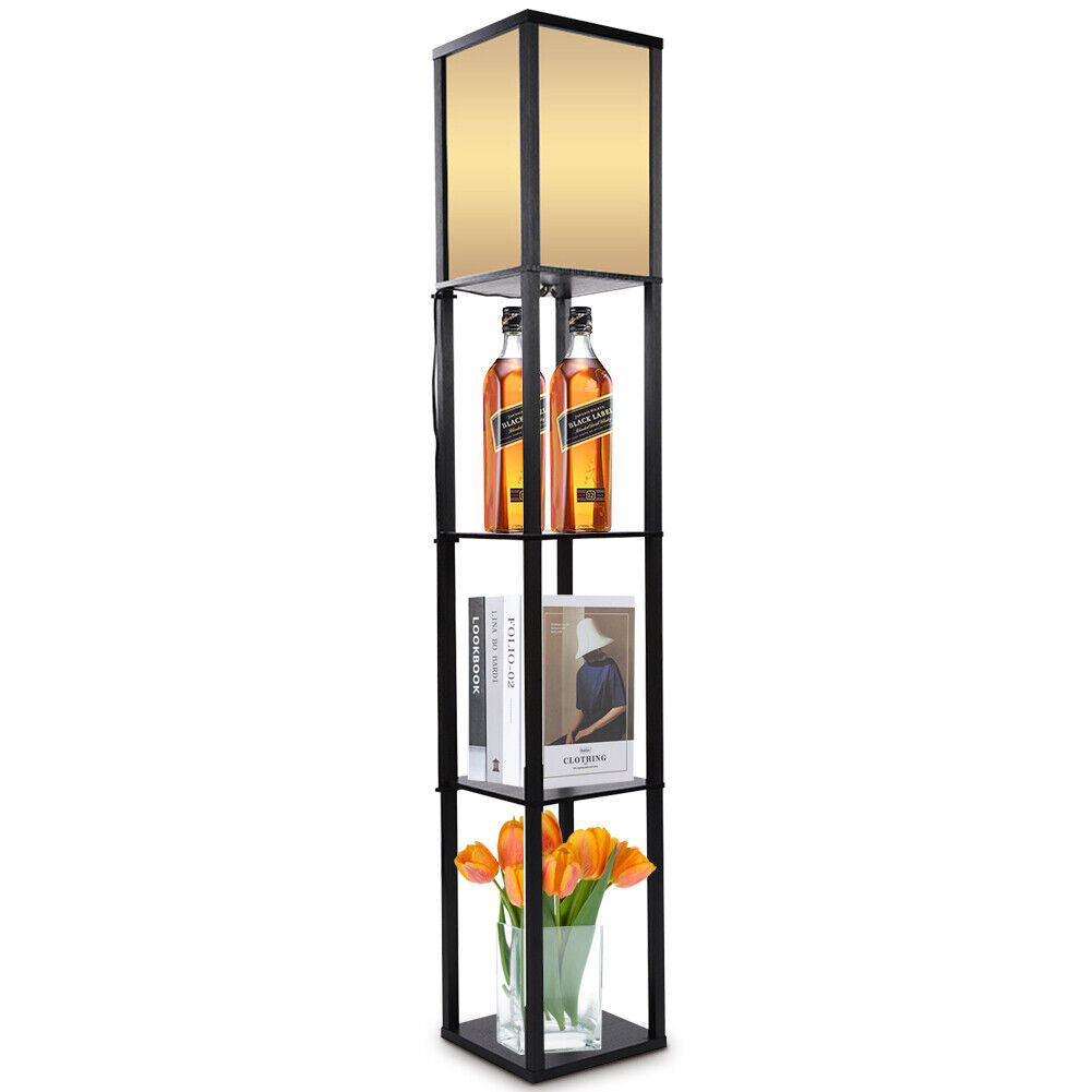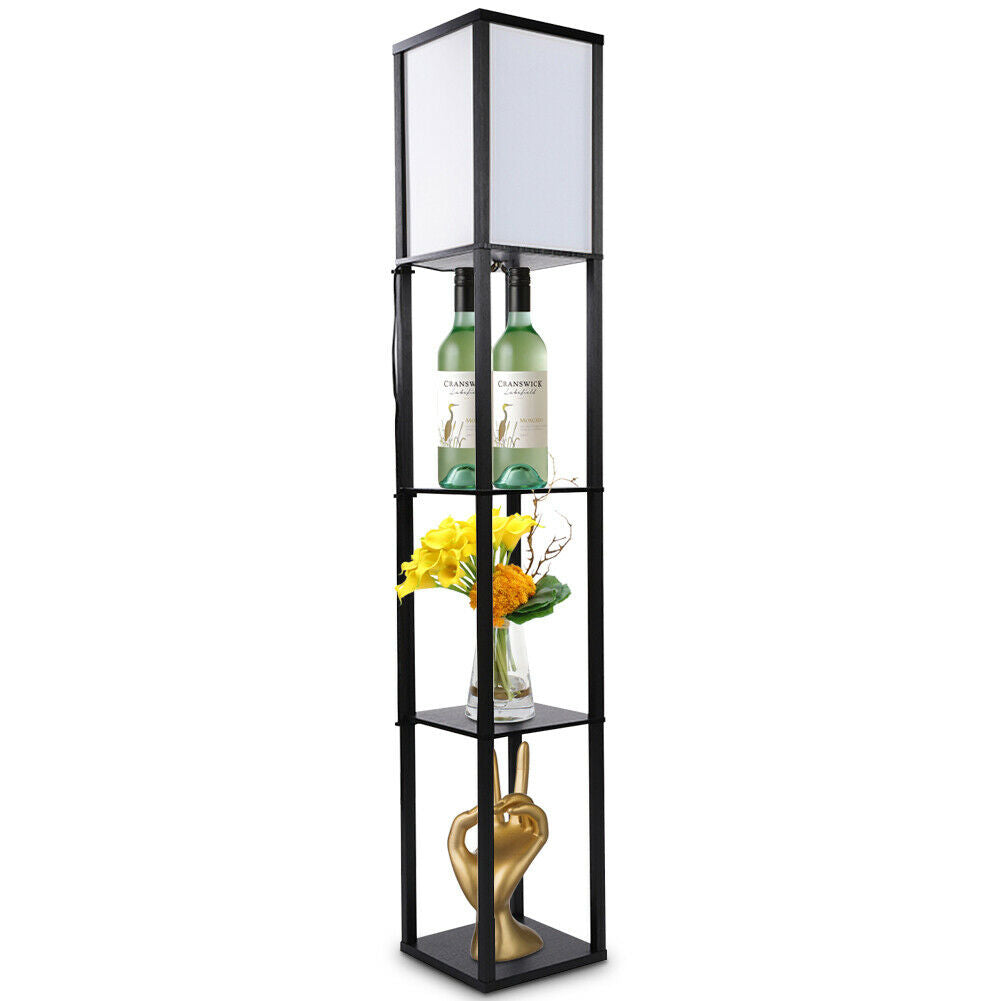 159 cm Height Floor Lamp Bedside Light Free Standing Holder Storage Shelf Wooden