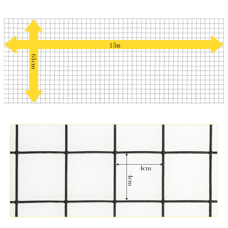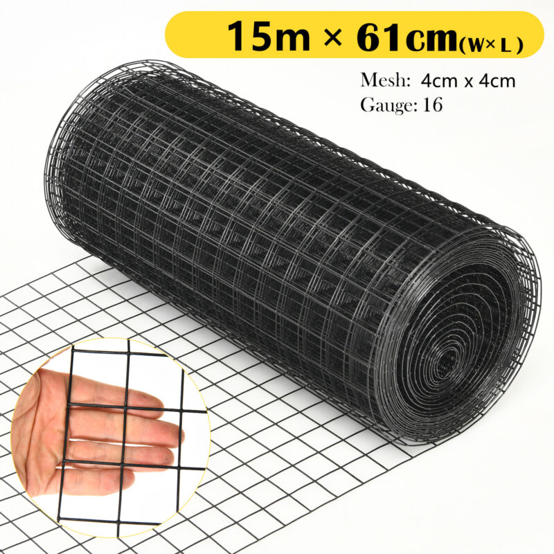 15M X 61CM Hardware Cloth 16 Gauge Black Vinyl Coated Welded Wire Mesh 4CM Grid