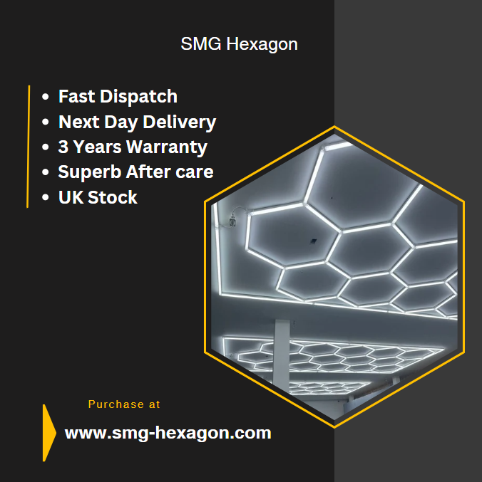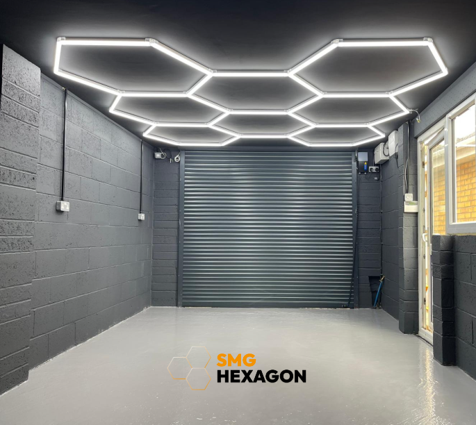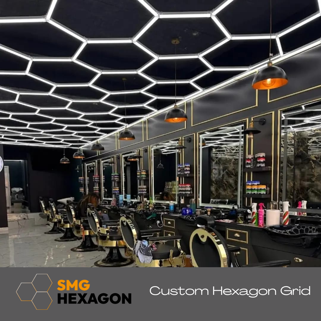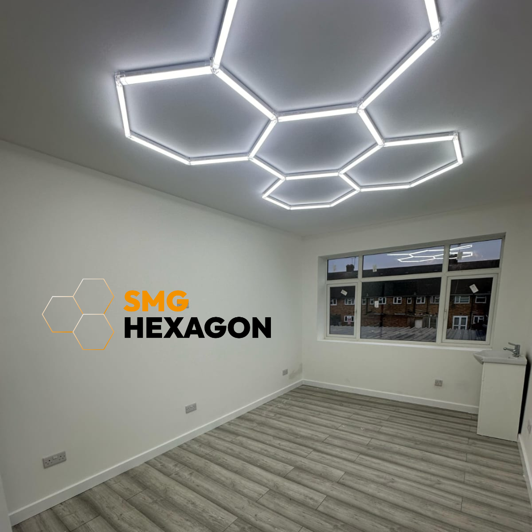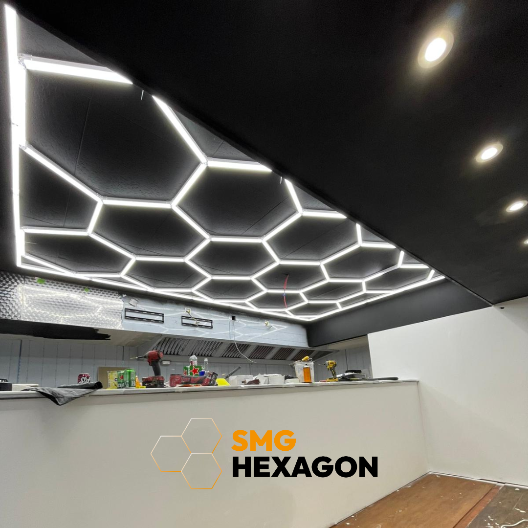 15pc Hexagon LED Lighting Grid & Blue Border Detail Garage Barber Shop Lights