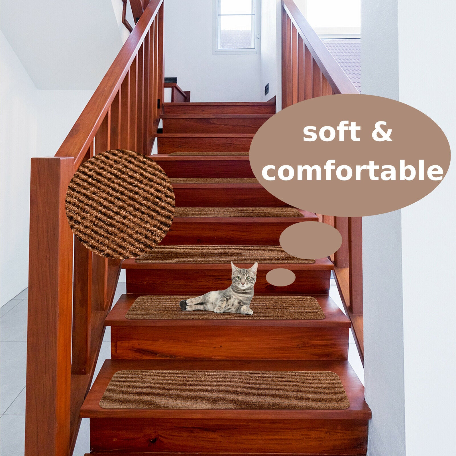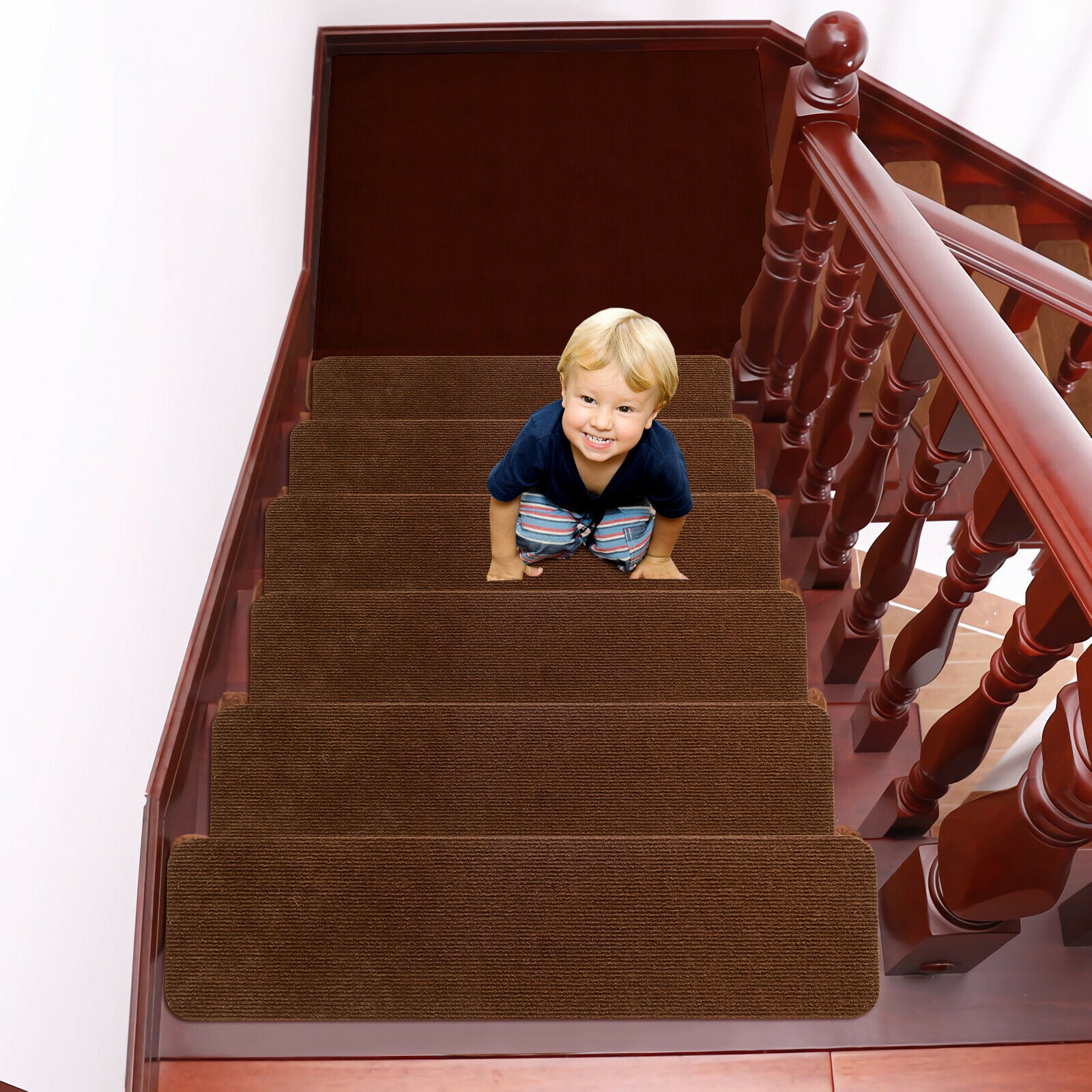 15PCS Carpet Stair Treads Non Slip Adhesive Carpet Kids Elder Pet Stair Pads Set