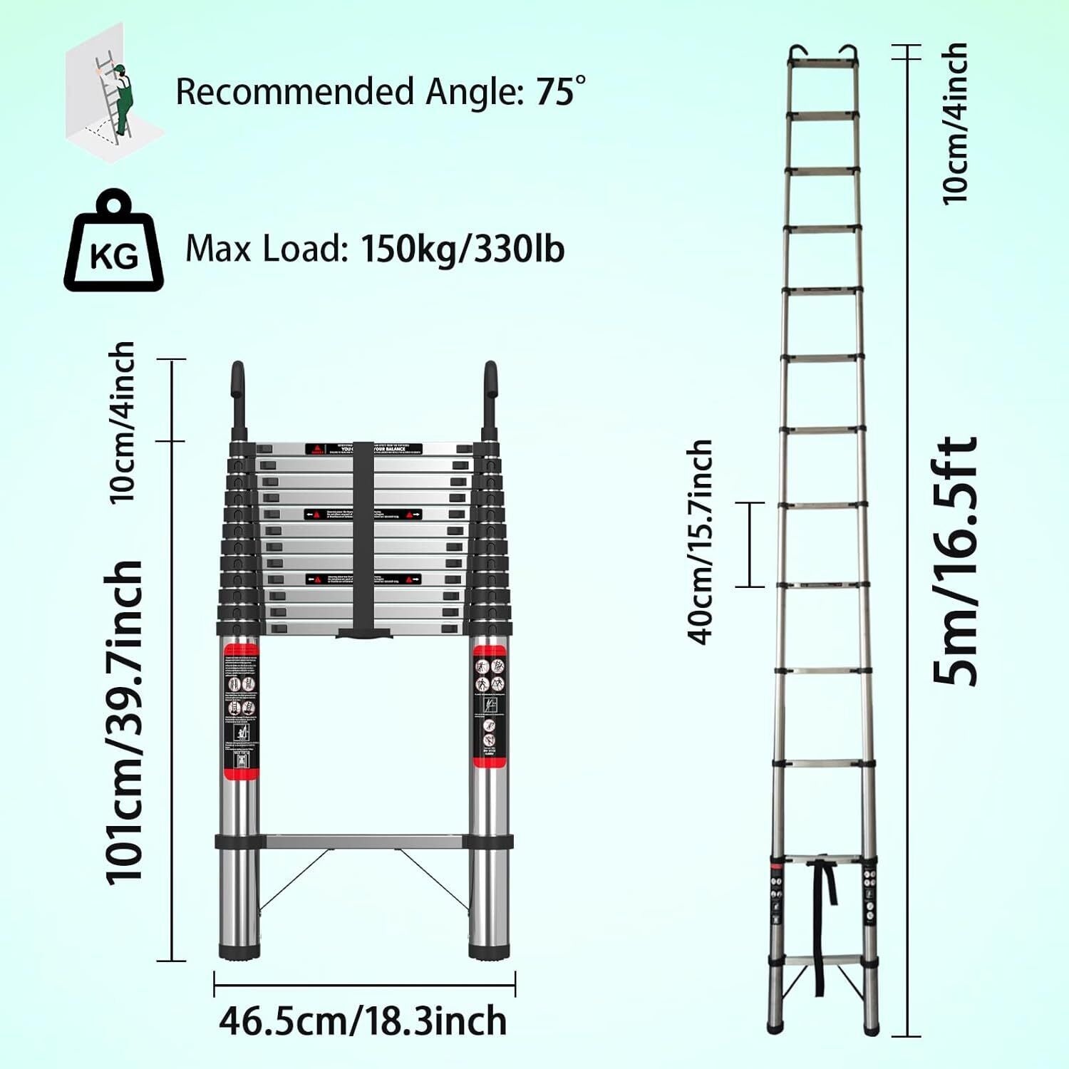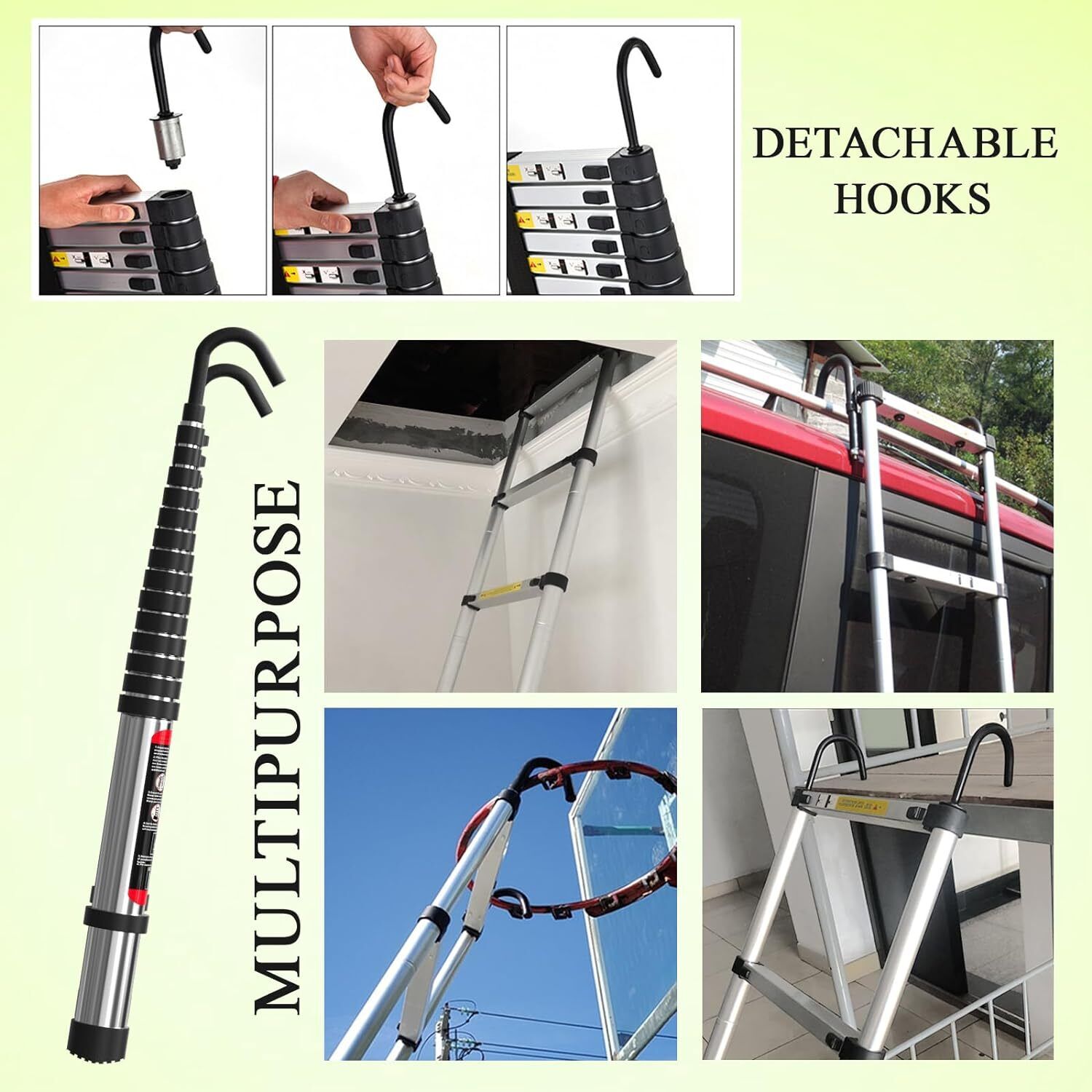 16.4FT 5M Telescoping Ladder Portable Compact Ladder with Hooks Multi Purpose uk