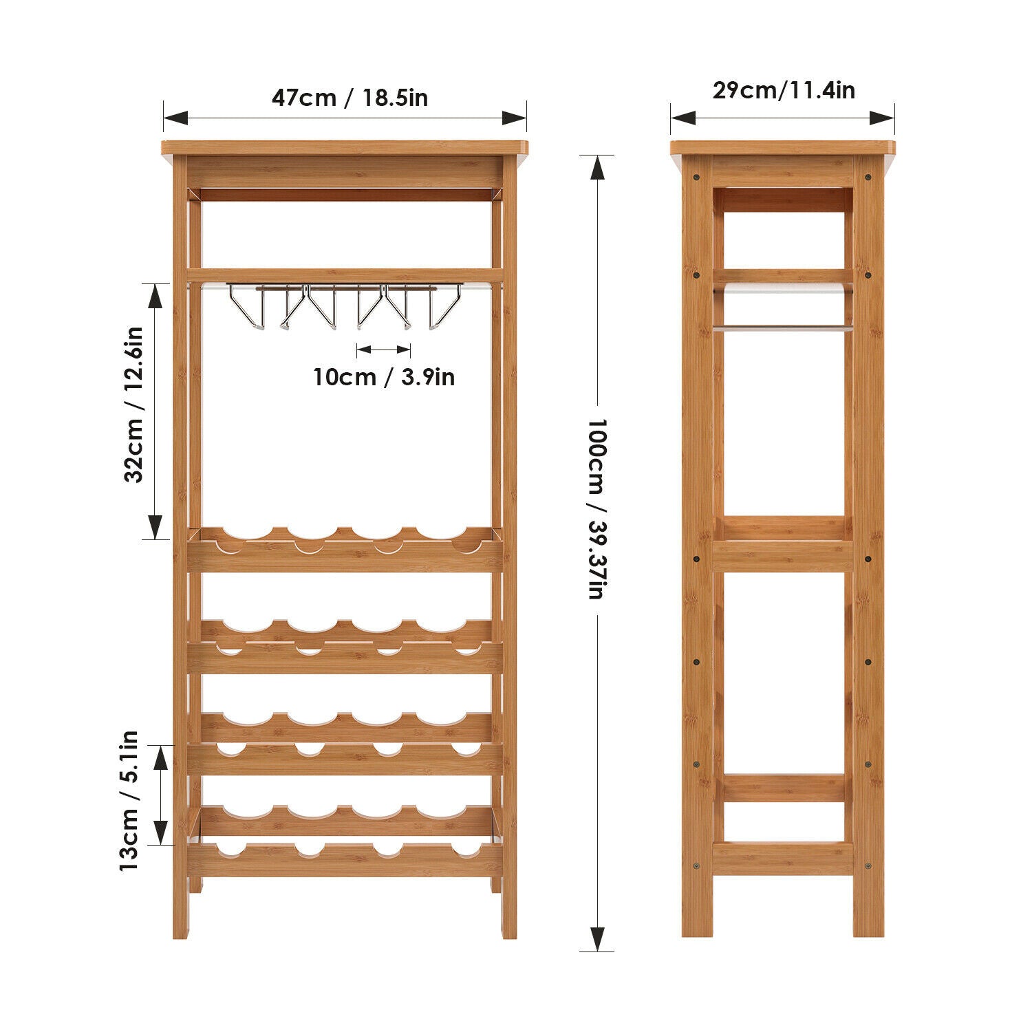 16 Bottles Wine Rack Storage Shelf with 9 Glass Holder Freestanding Wine Holder