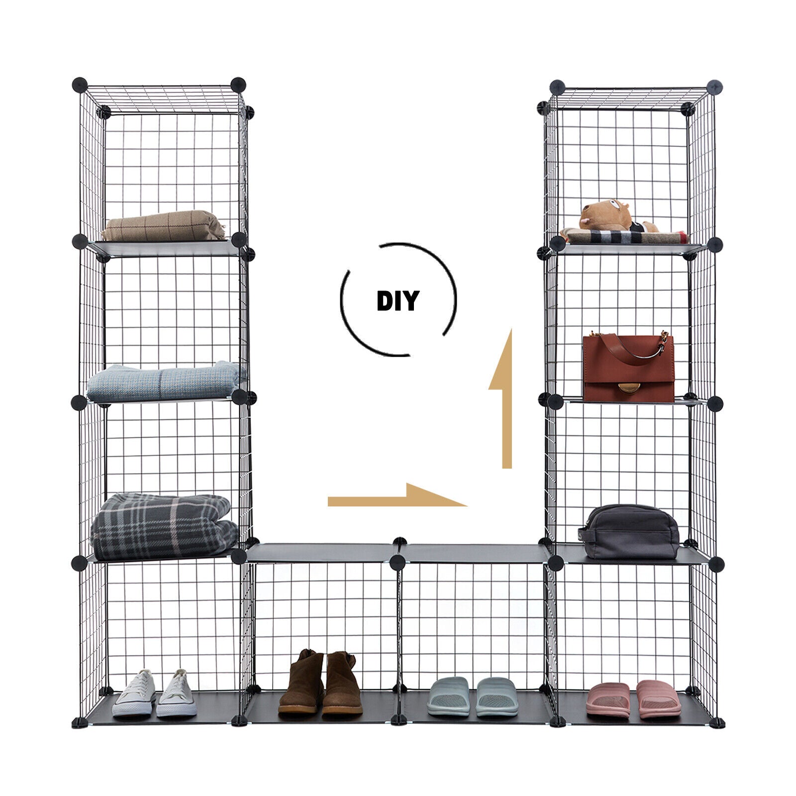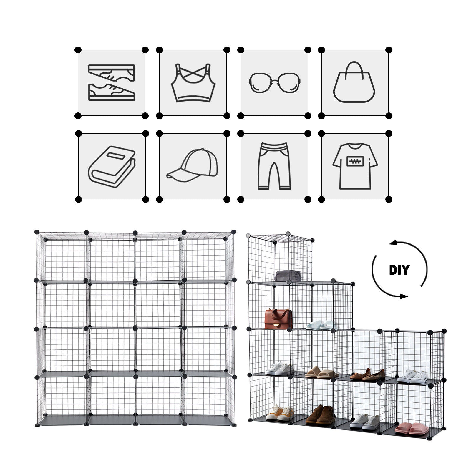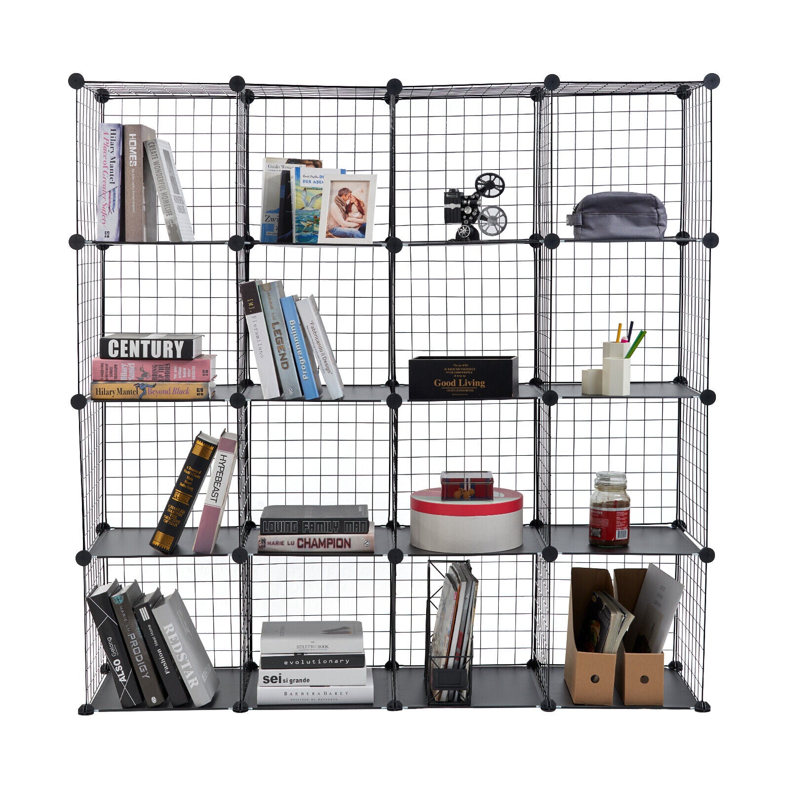 16 Cube Storage Shelves Rack Metal Wire Interlocking Display Stackable Cabinet
