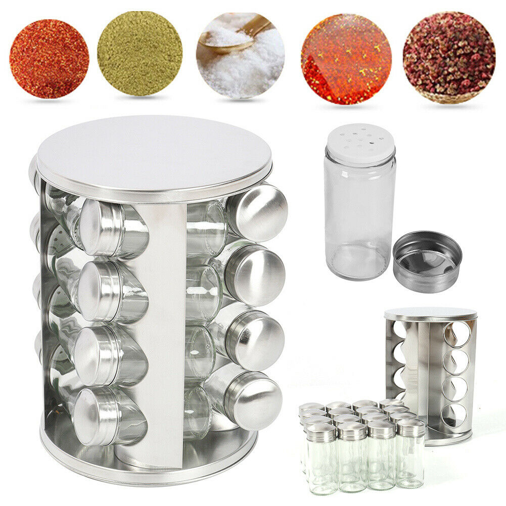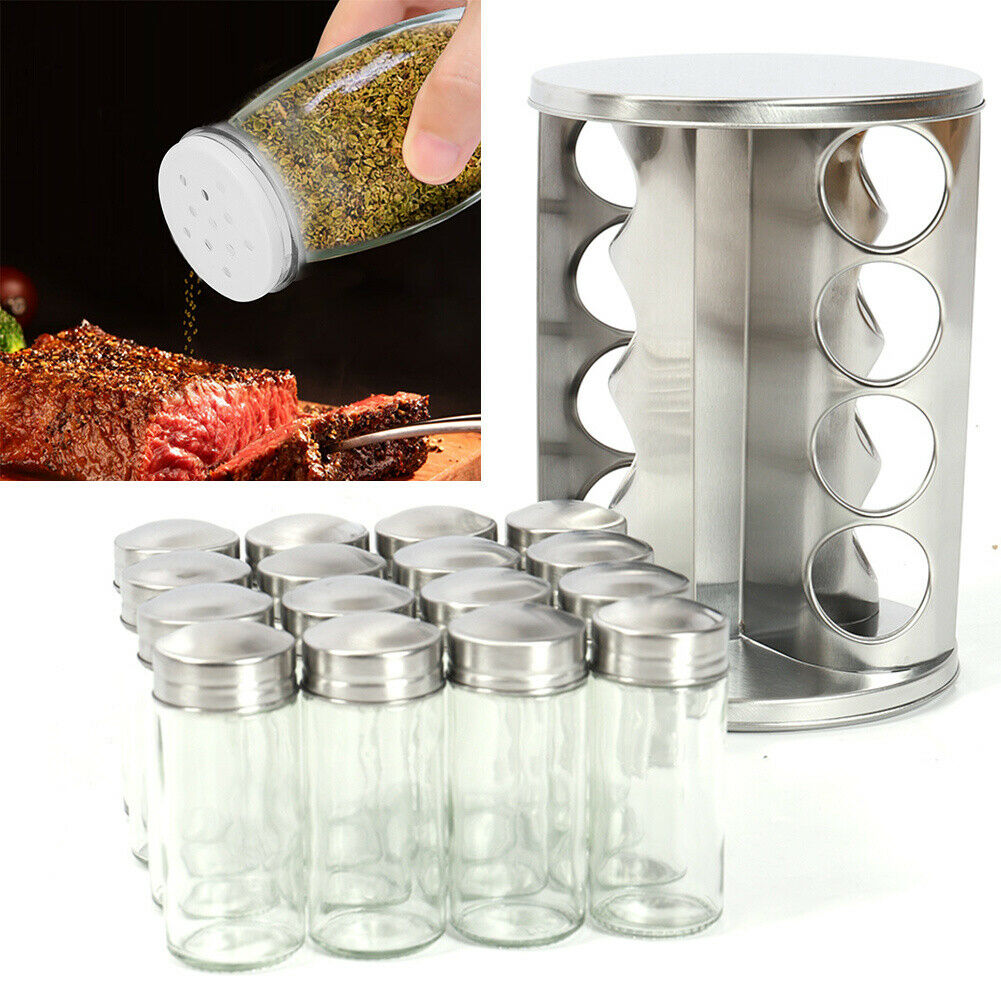 16-Jar Revolving Countertop Spice Rack Organizer Herb Spice Seasoning Tower Rack