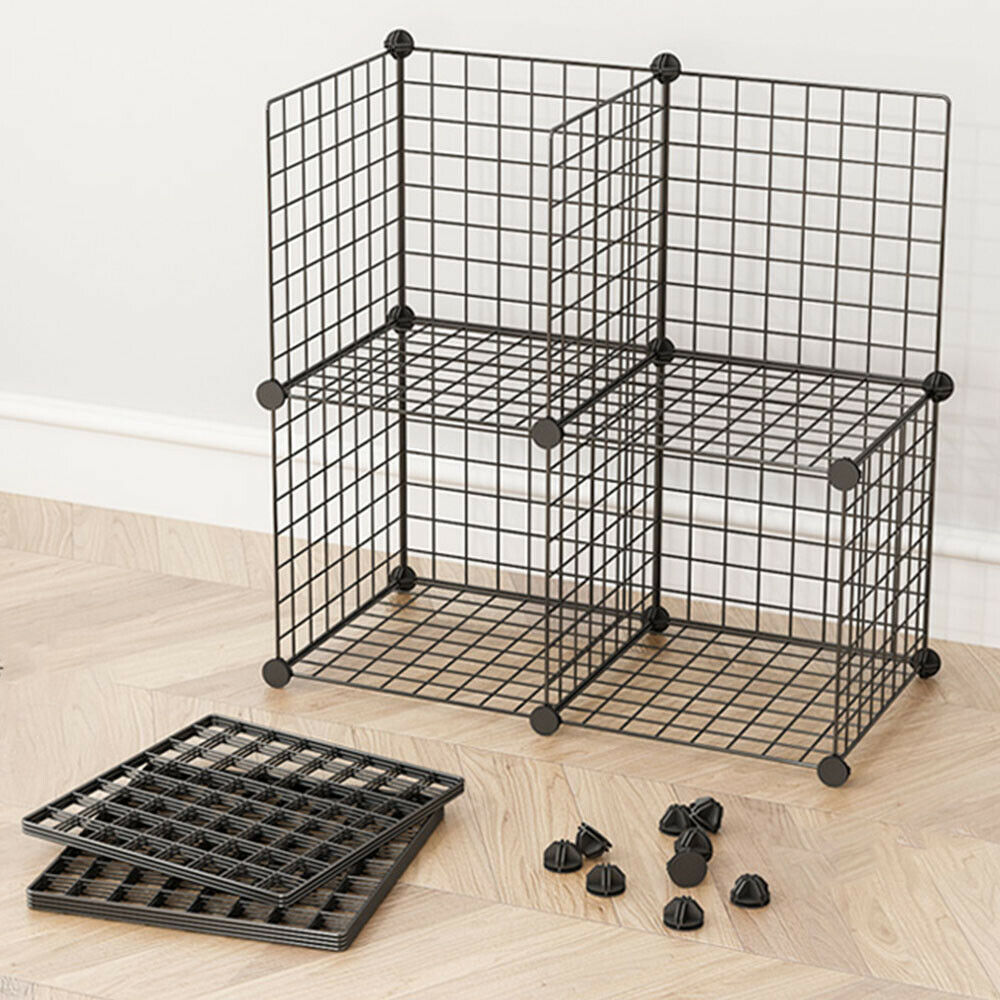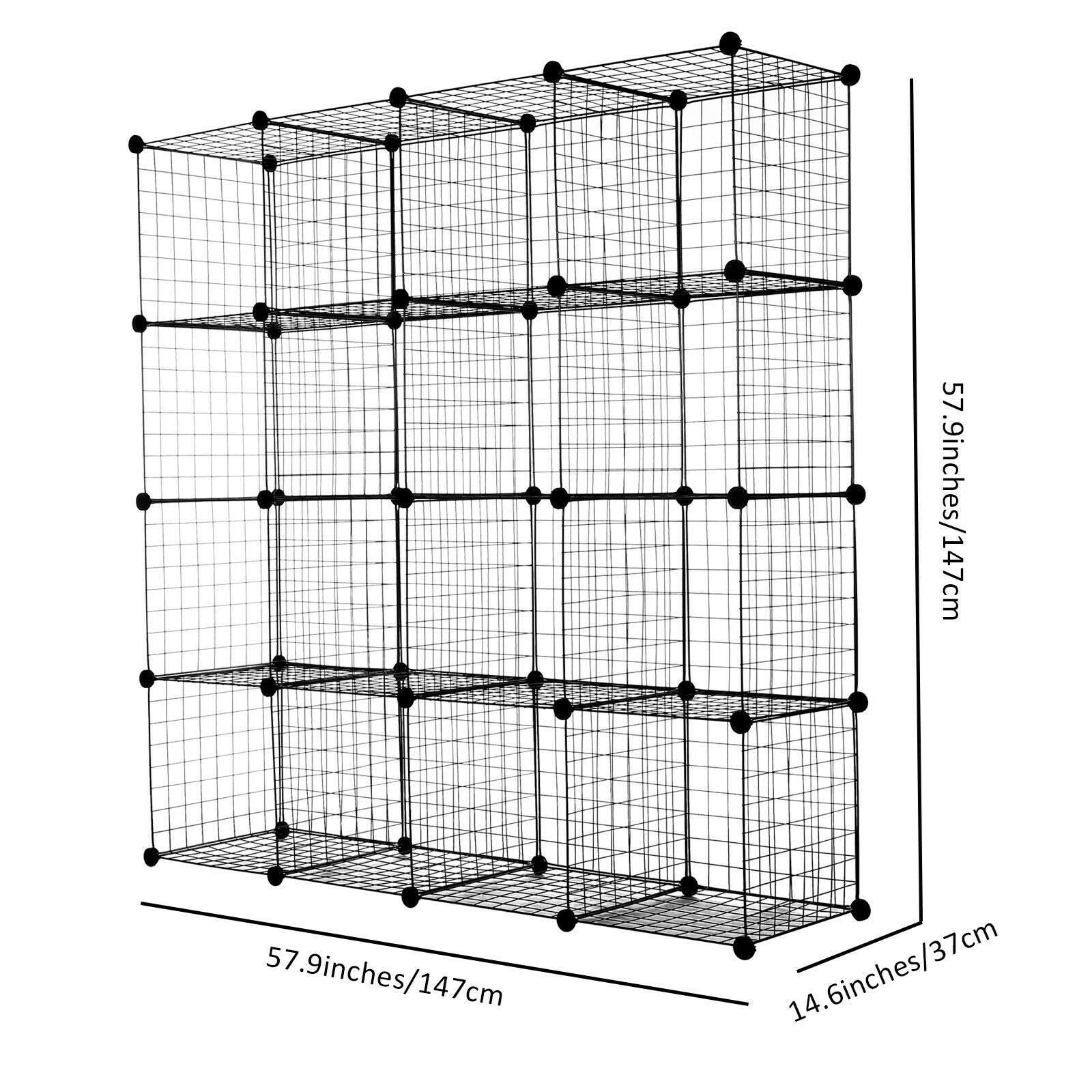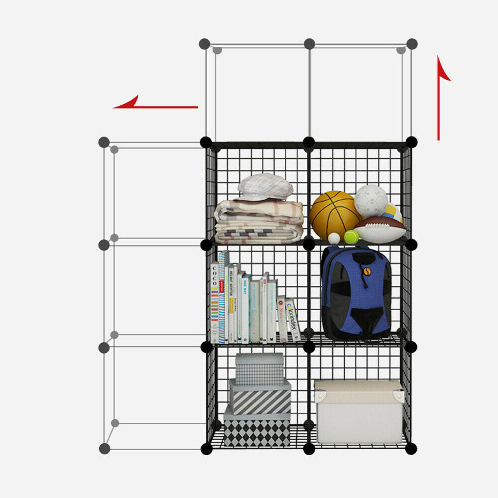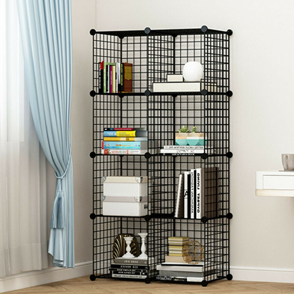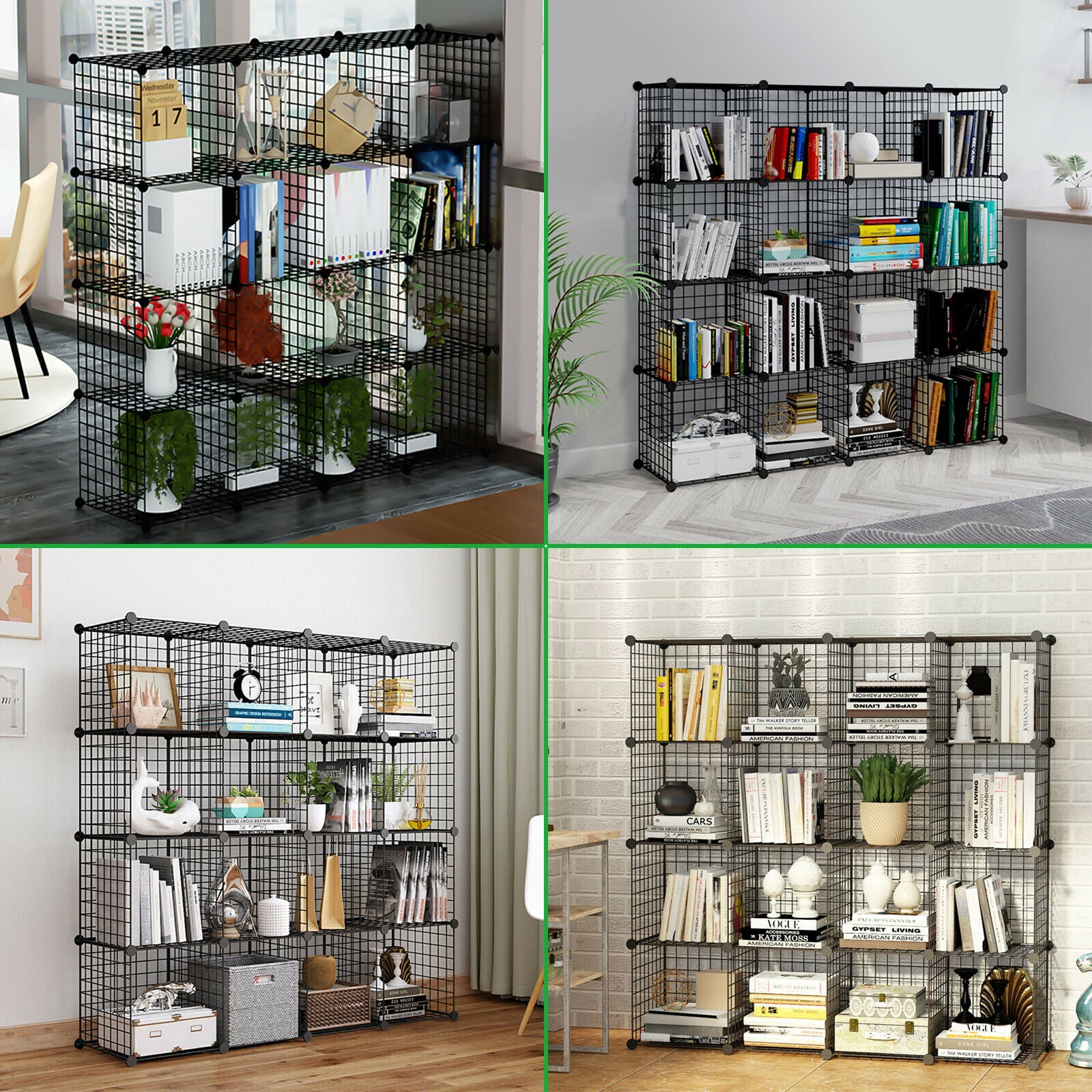 16 Metal Wire DIY Storage Cubes Bookcase Shelving Unit Wardrobe Display Black.