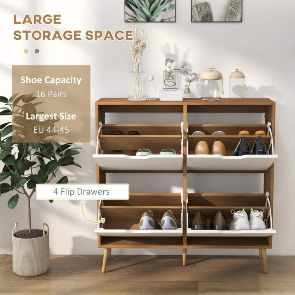 16 Pair - Shoe Cabinet Organiser with 4 Flip Drawers