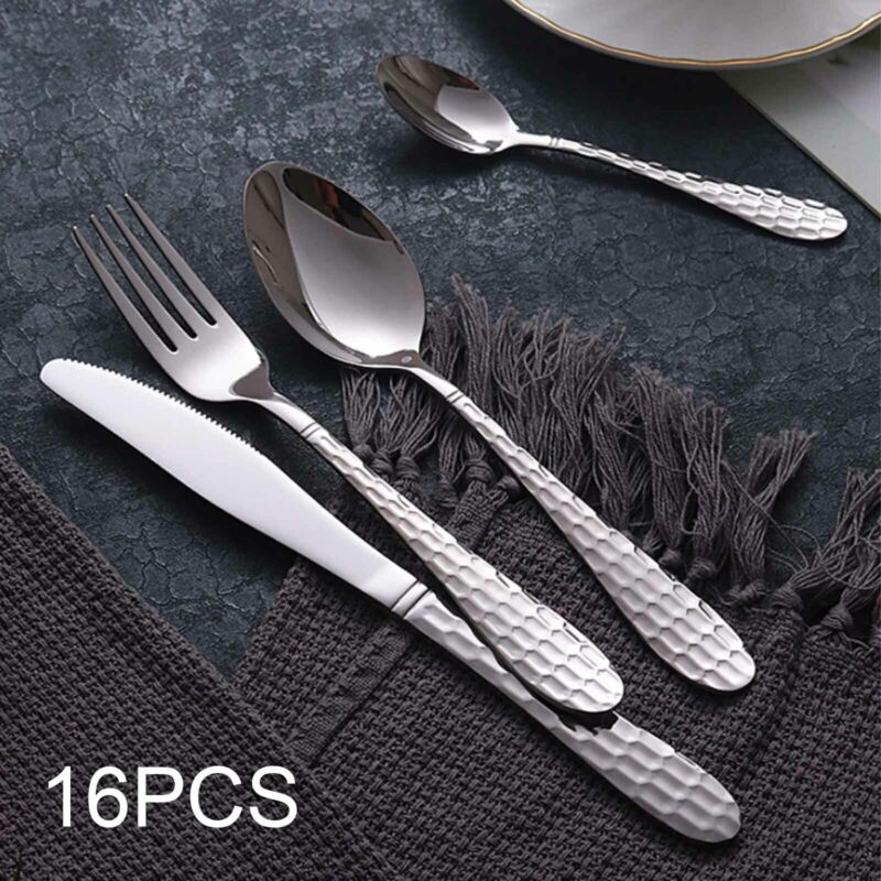 16-Piece Cutlery Set Flatware Stainless Steel Rounded Spoon Edge Dishwasher Safe