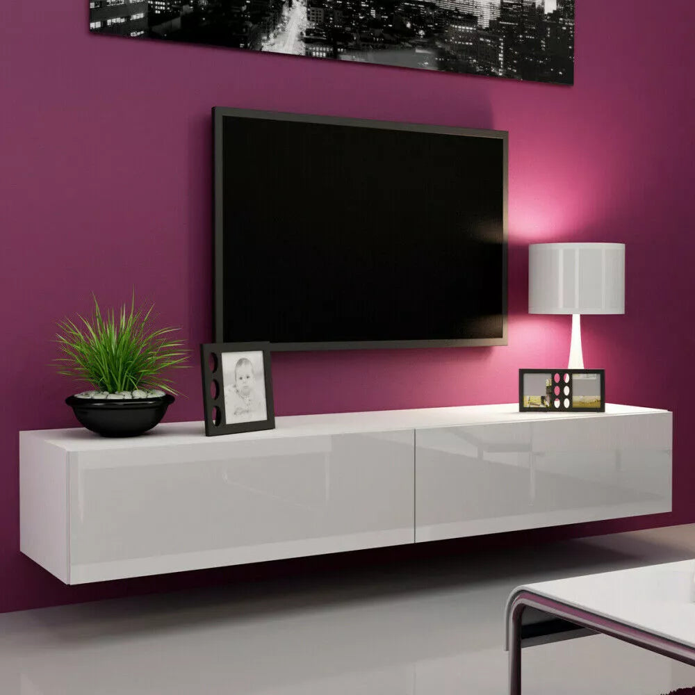 160/180cm White High Gloss Fronts TV Cabinet Stand Wall Mounted Floating Unit UK