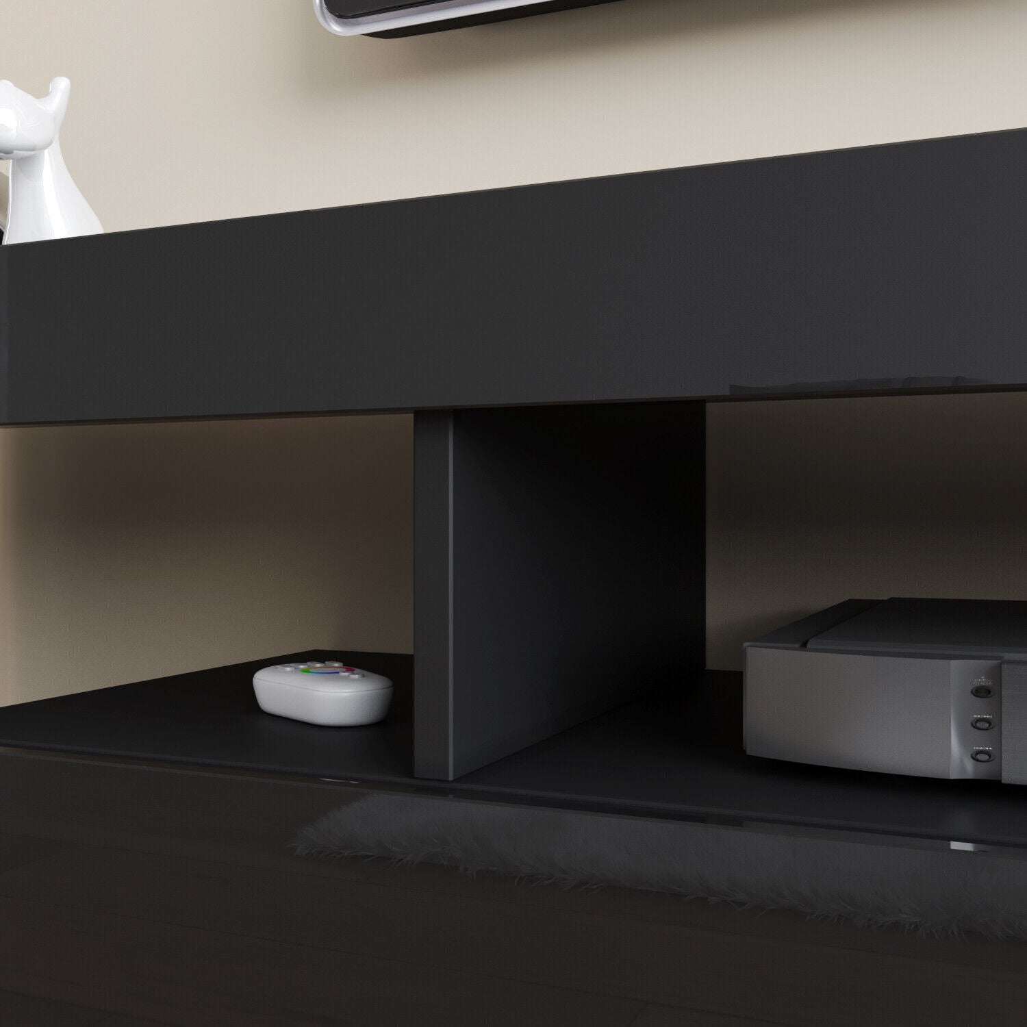 160cm Black TV Entertainment Unit LED Stand With Storage Drawers High Gloss Door